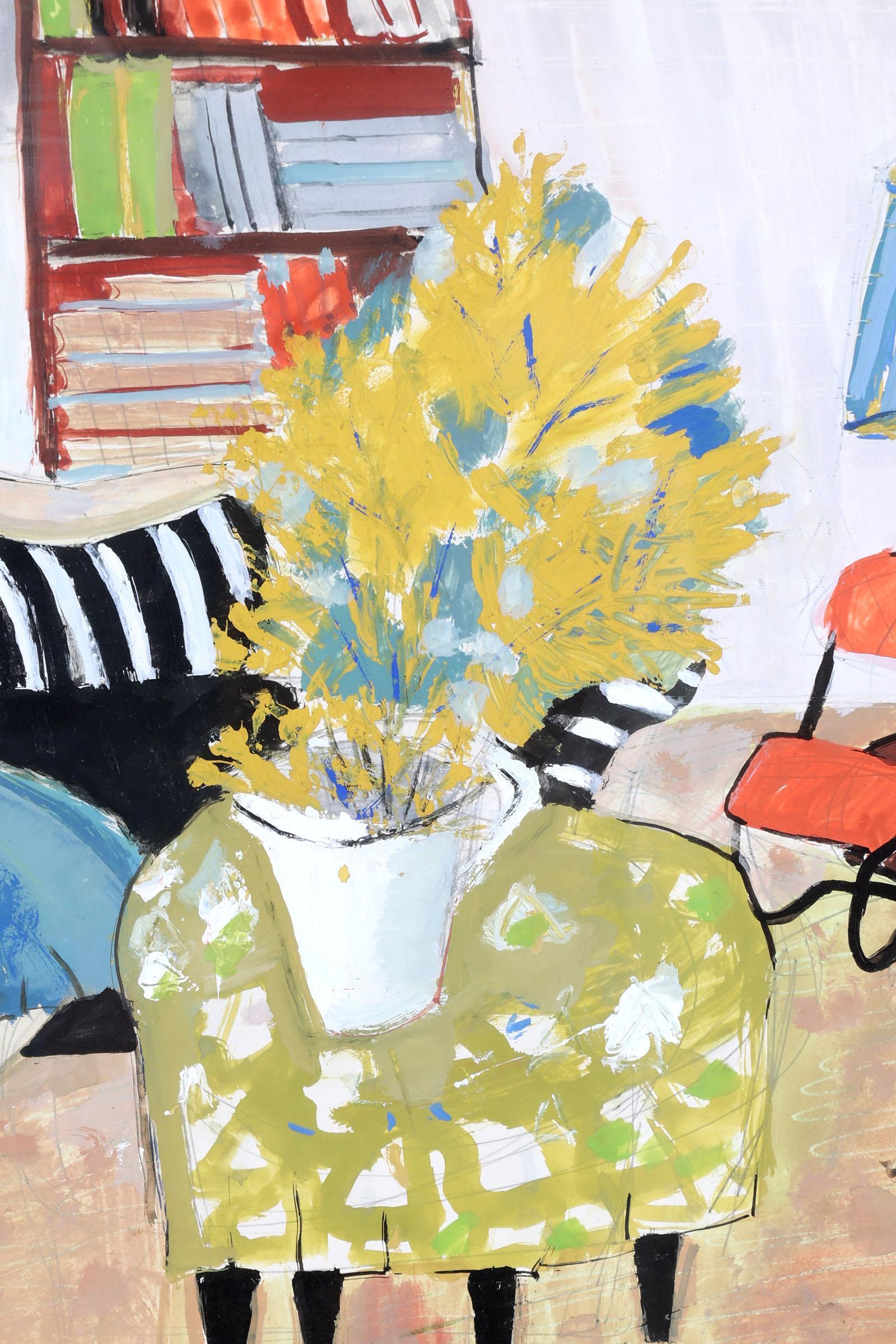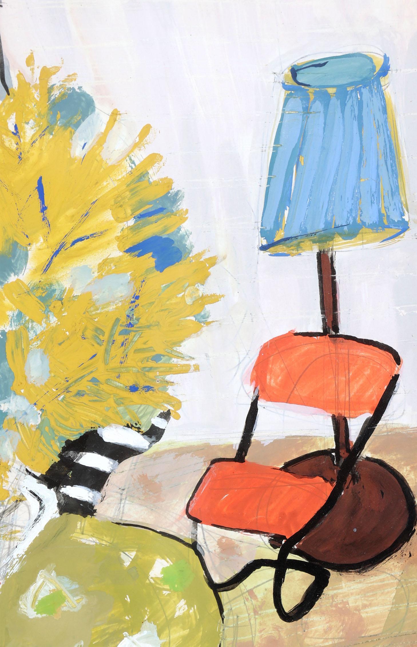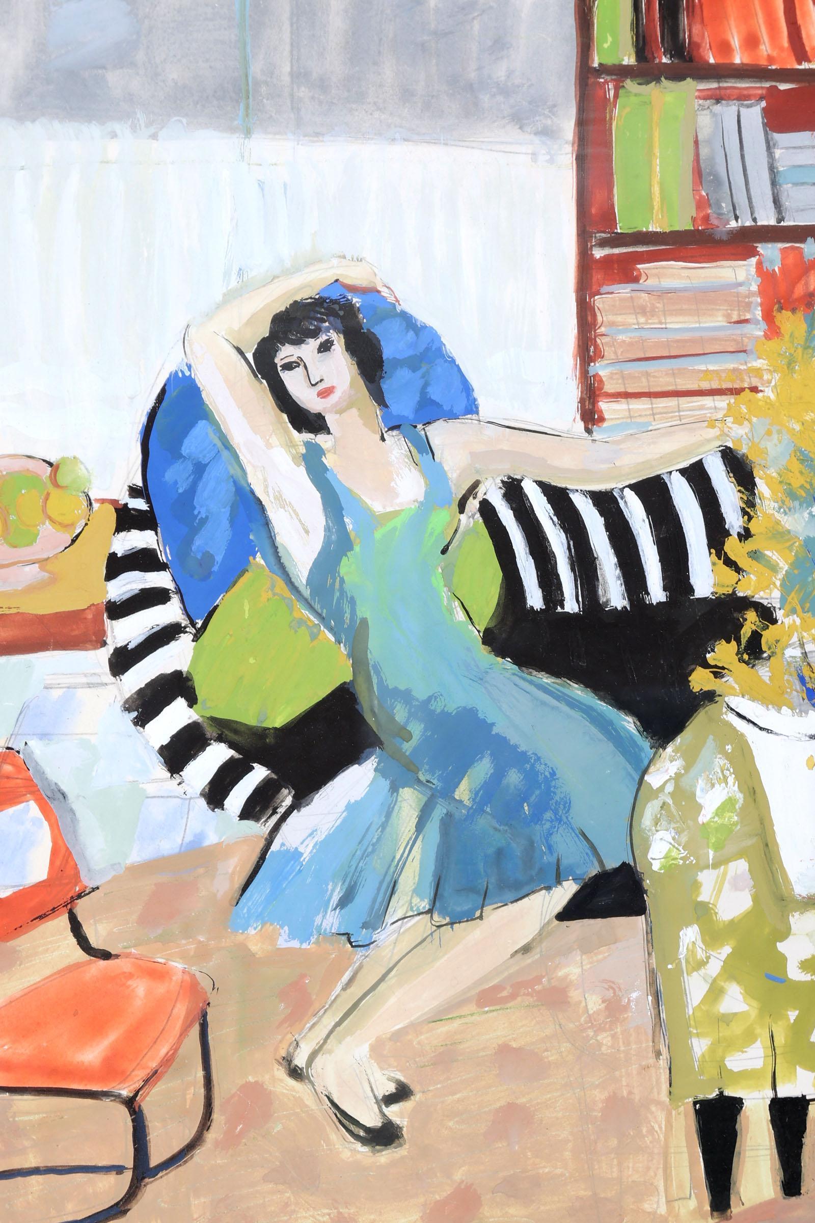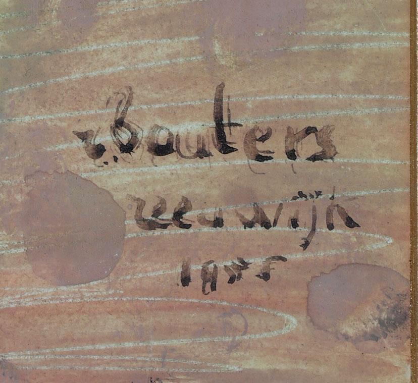 Bouters Reewijk, Interieur met dame, gouache, 47 x 36 cm.