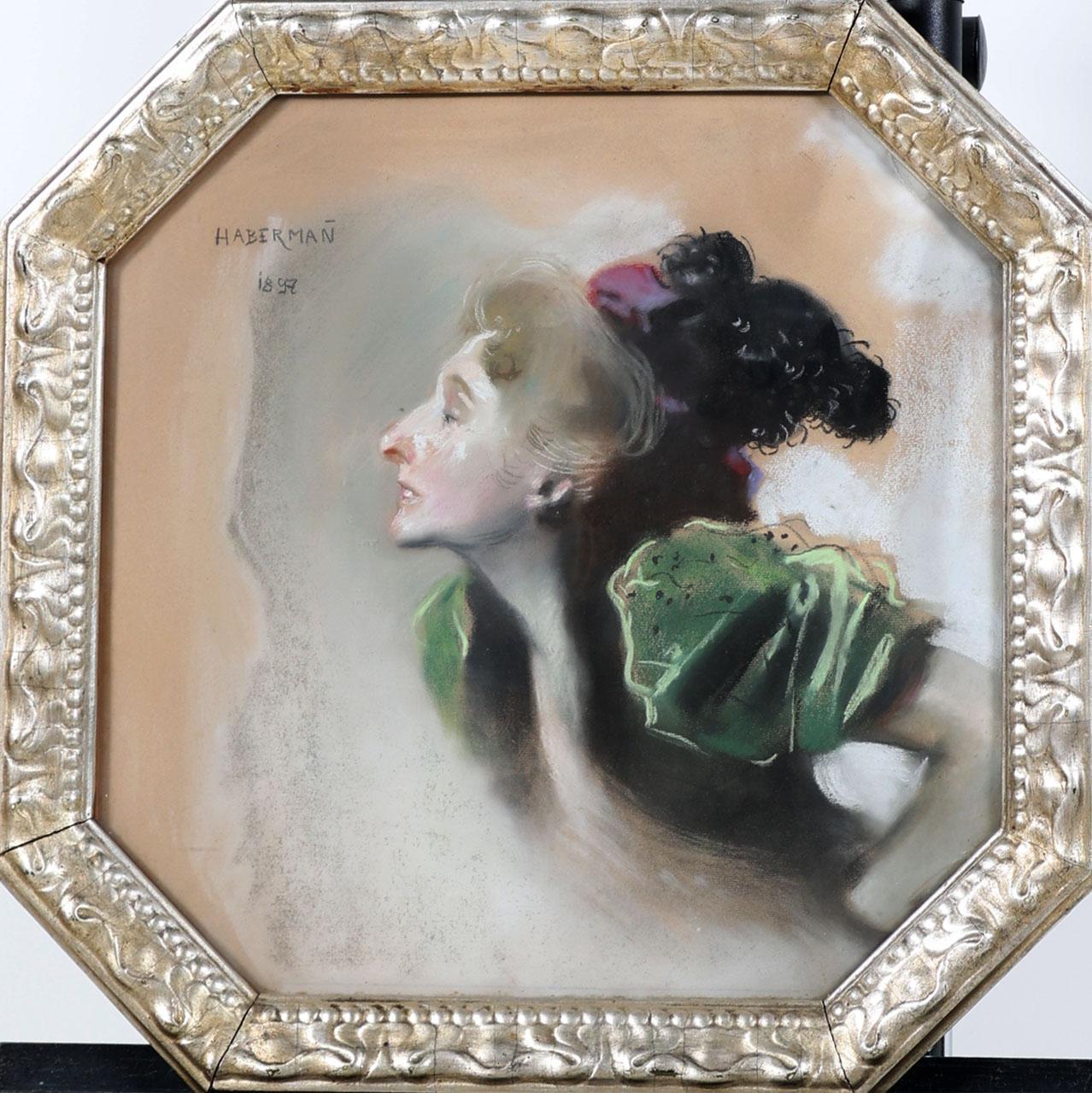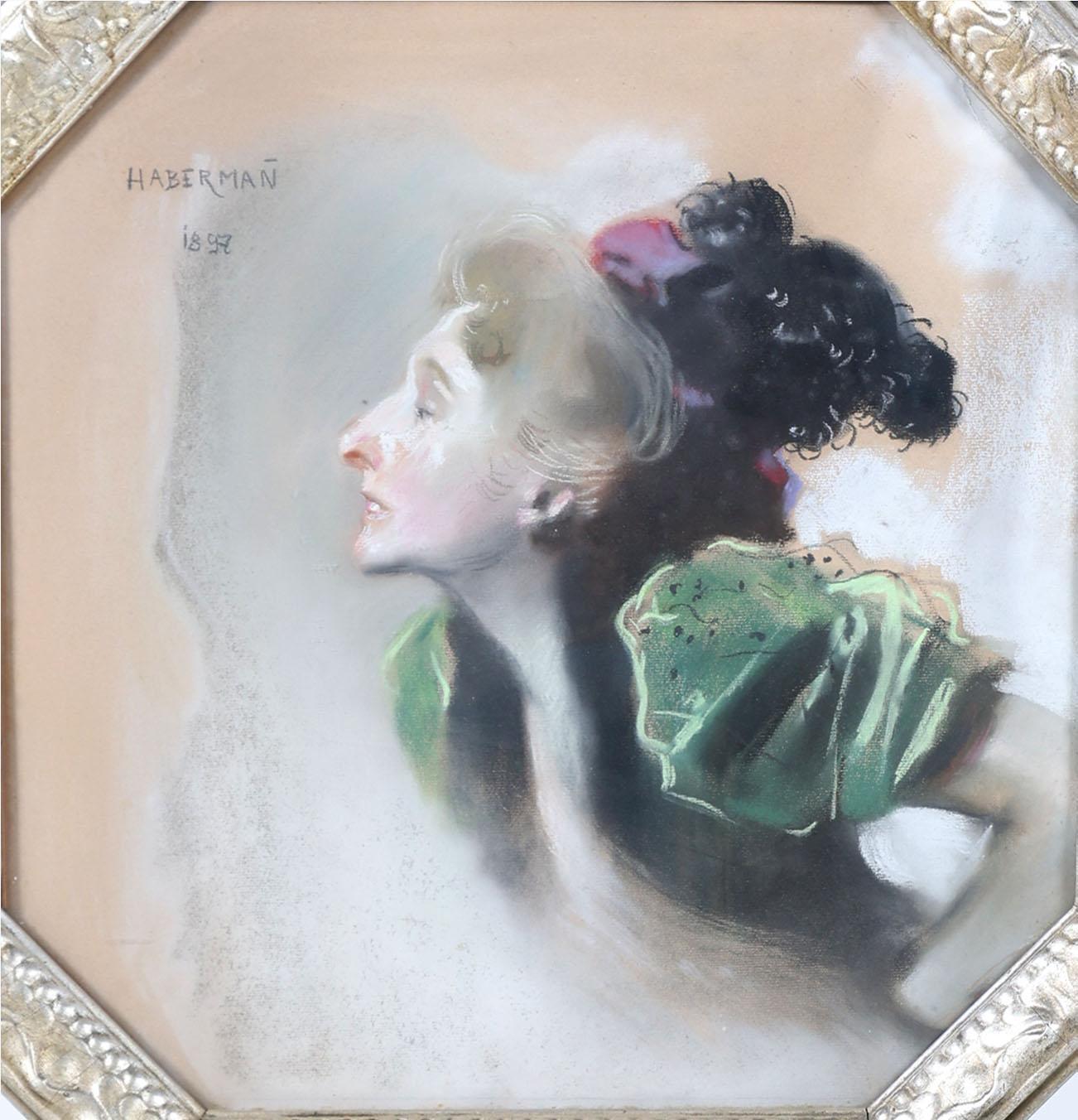 Haberman, Portret van een dame, pasteltekening, gedateerd 1897, 45 x 45 cm.