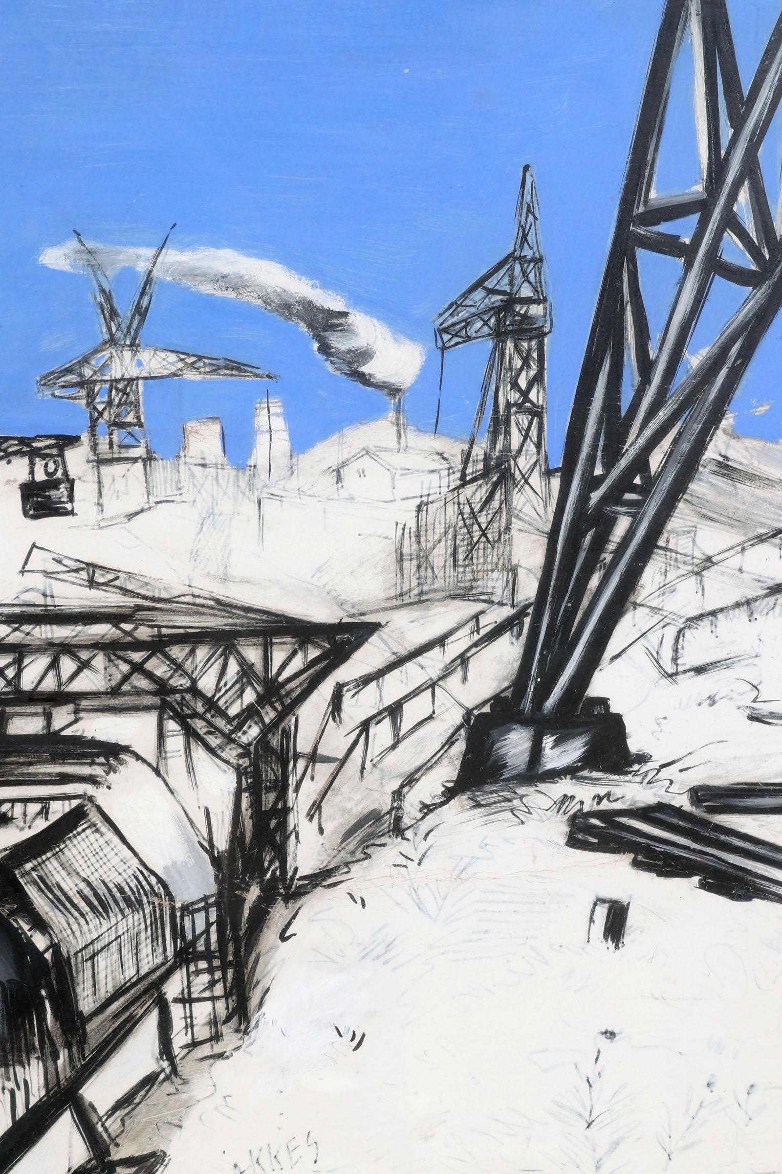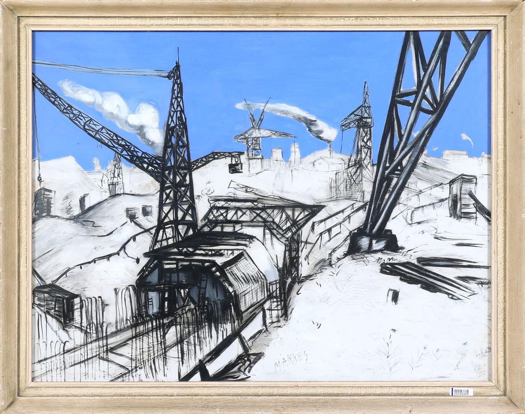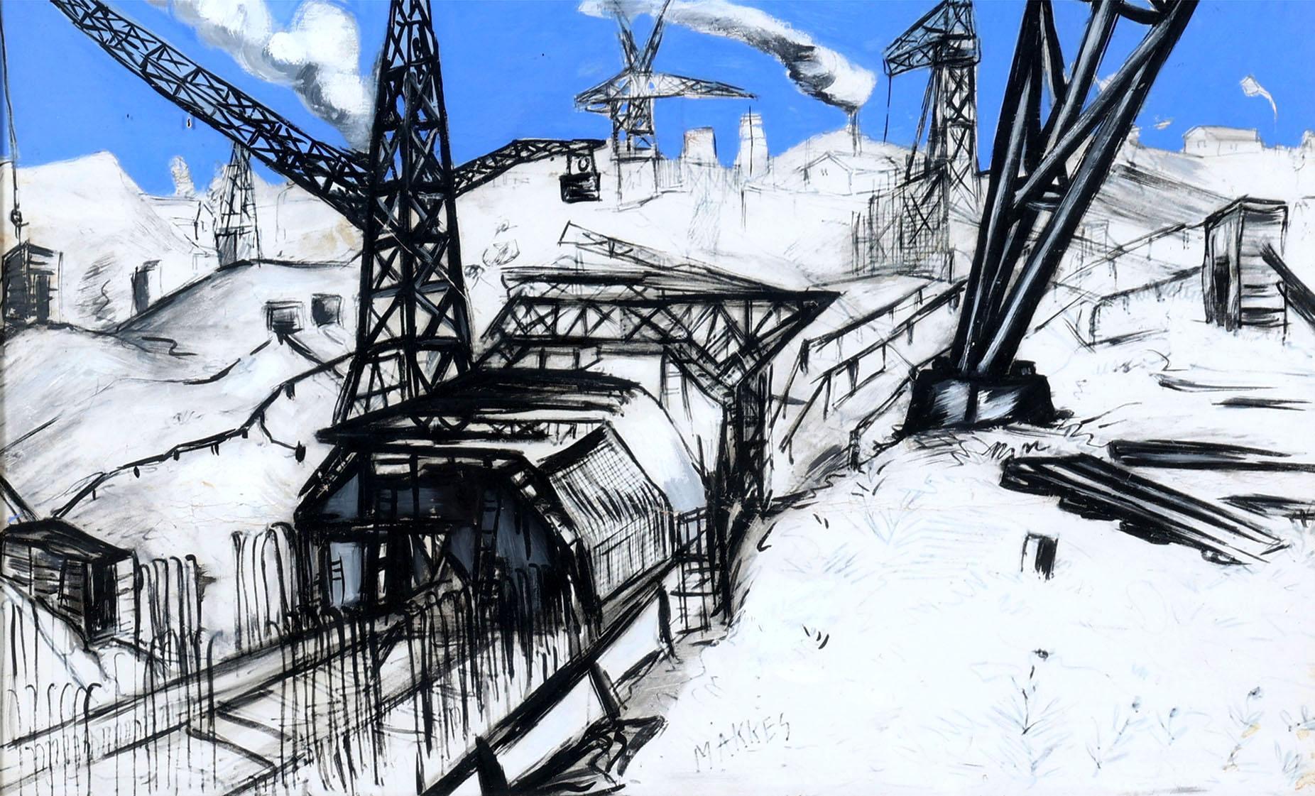 Jan Makkes (1935-1999), Industriële bedrijvigheid, gouache op papier, 48 x 63 cm.