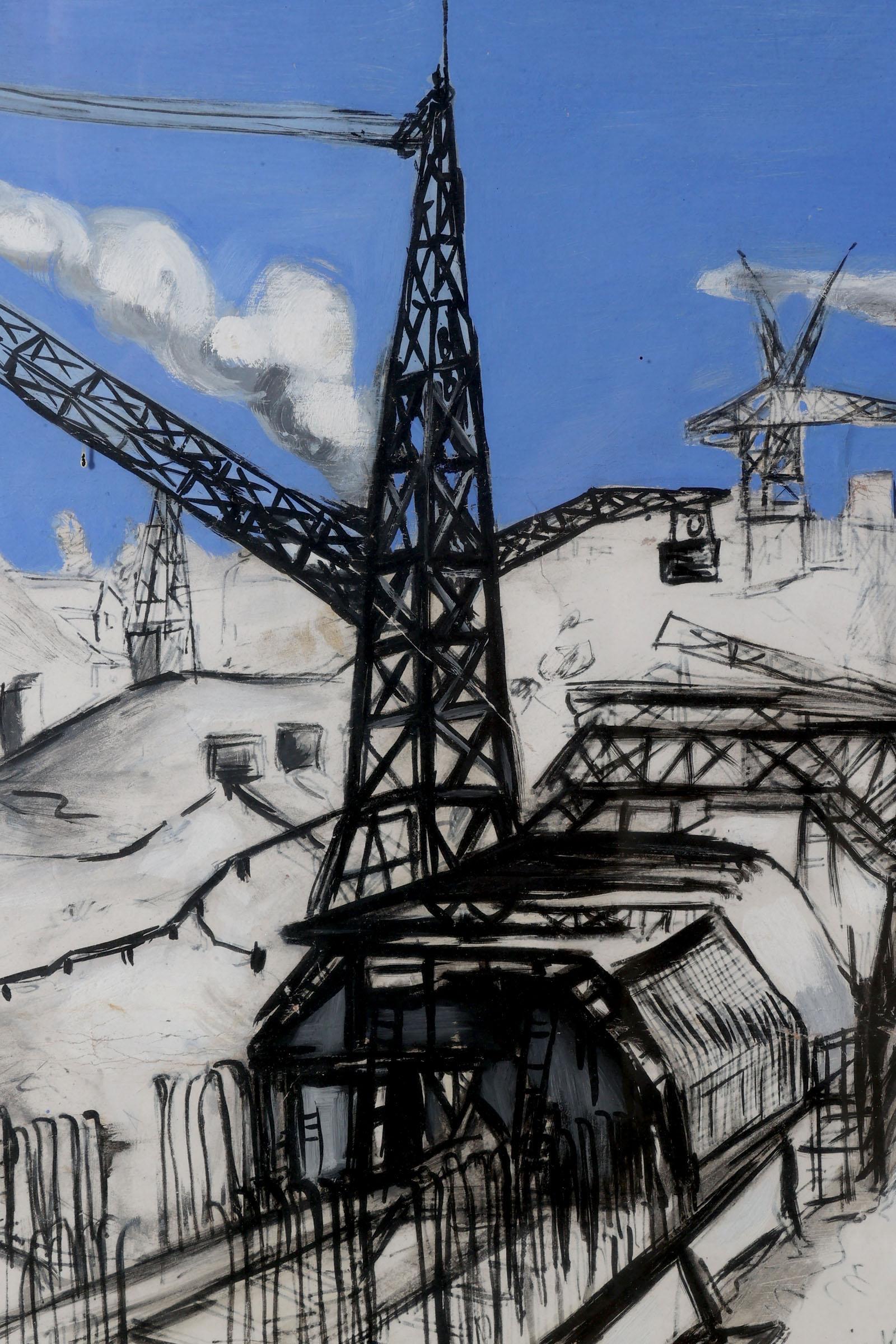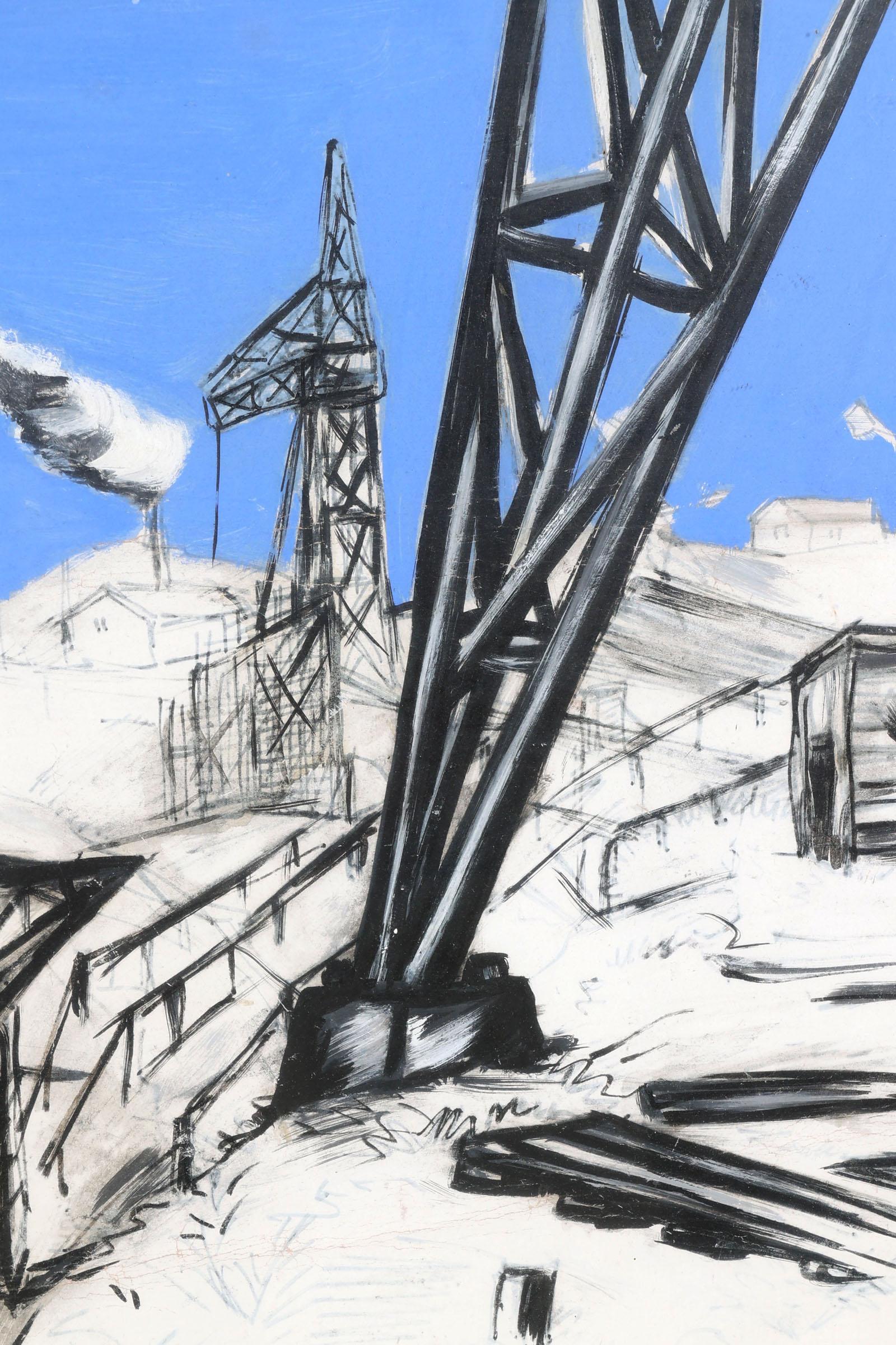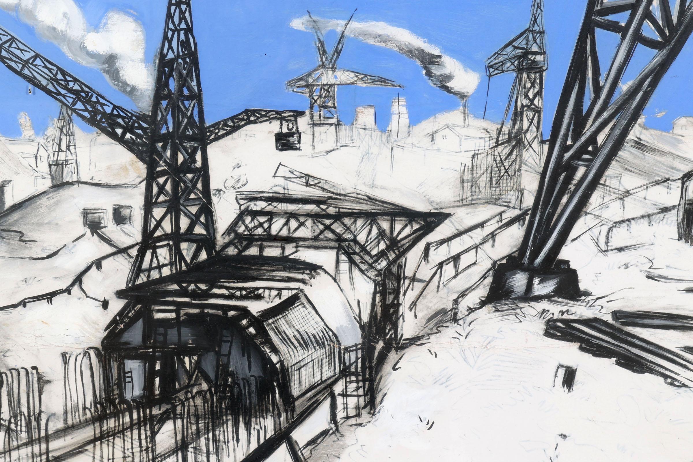 Jan Makkes (1935-1999), Industriële bedrijvigheid, gouache op papier, 48 x 63 cm.