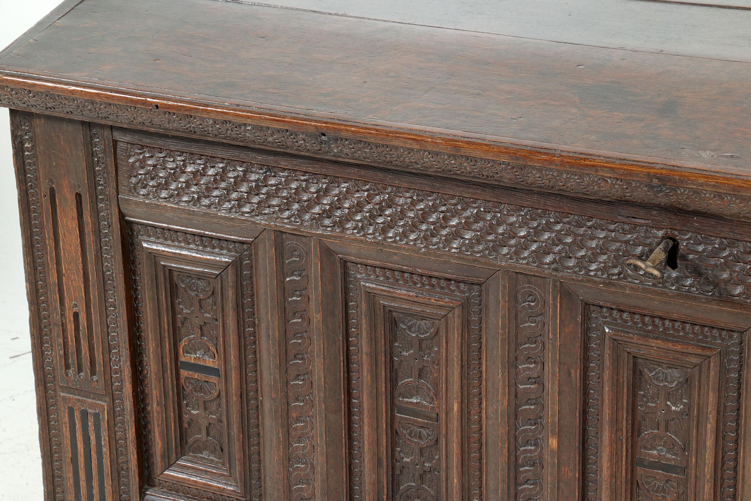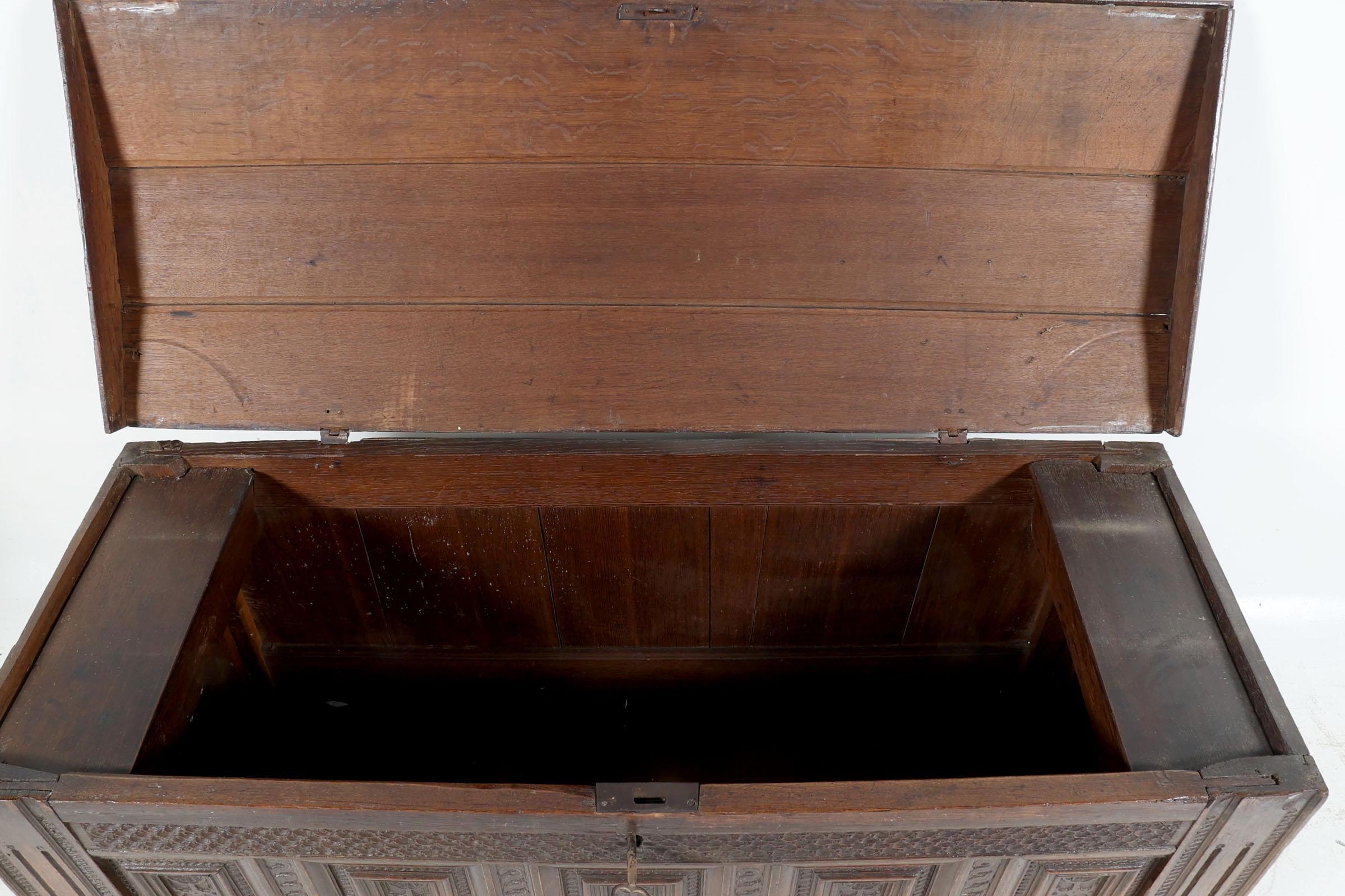 Antieke eikenhouten panelendekenkist h.71 x b.? x d.57 cm.