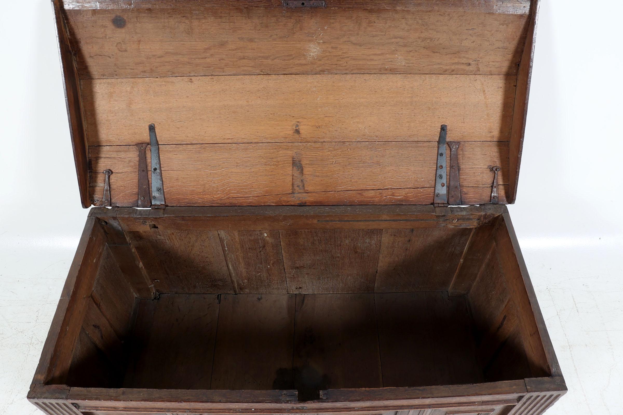 Antieke eikenhouten dekenkist, h.60 x b.? x d.54 cm.