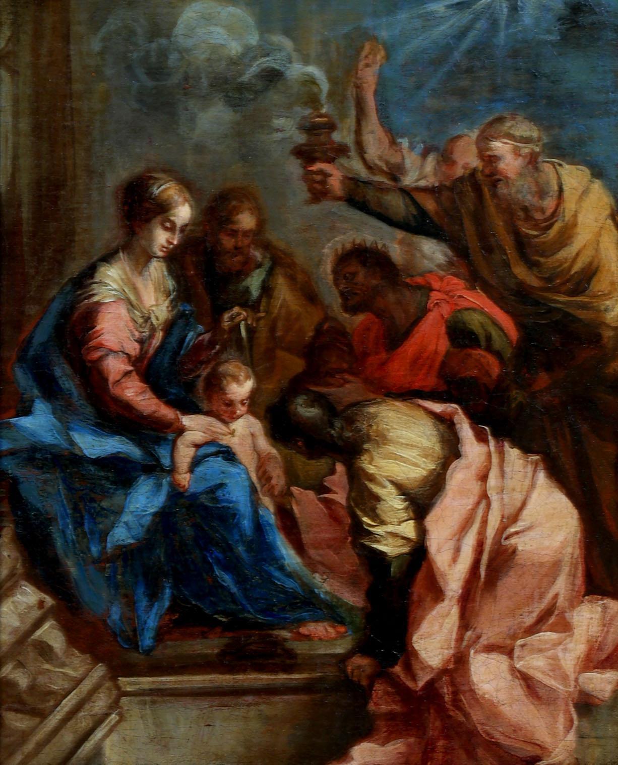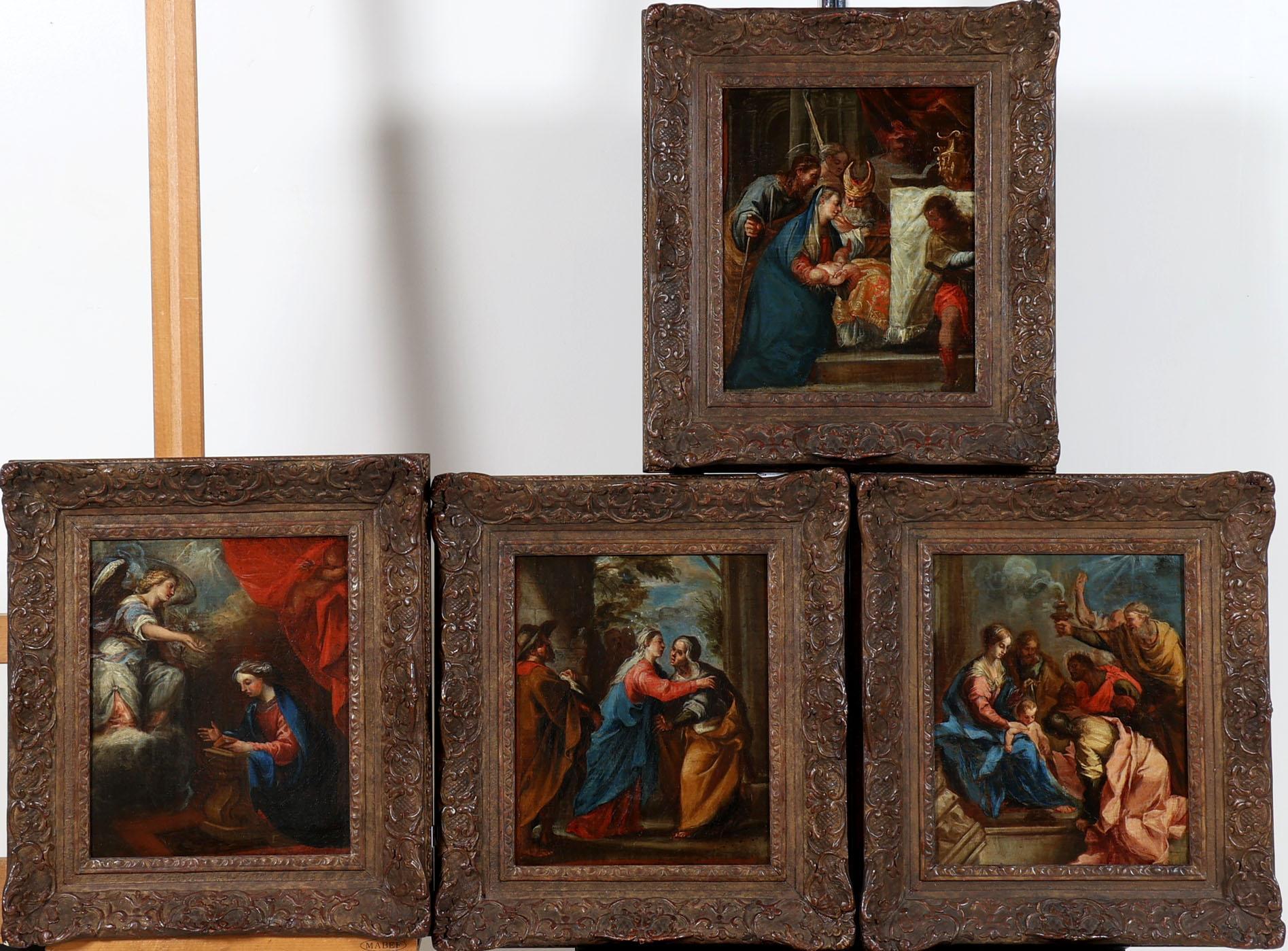 Toegeschreven aan Paul Troger (1698-1762), Scènes uit het leven van Maria: Aankondiging, Visitatie, Aanbidding der wijden en Besnijdenis, vierluik, olieverf op doek, 34,5 x 28,5 cm. Provenance: Bernaerts, mei 2017, lot 123, met illustratie p.60 catalogus / particuliere collectie