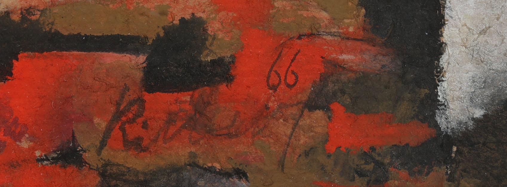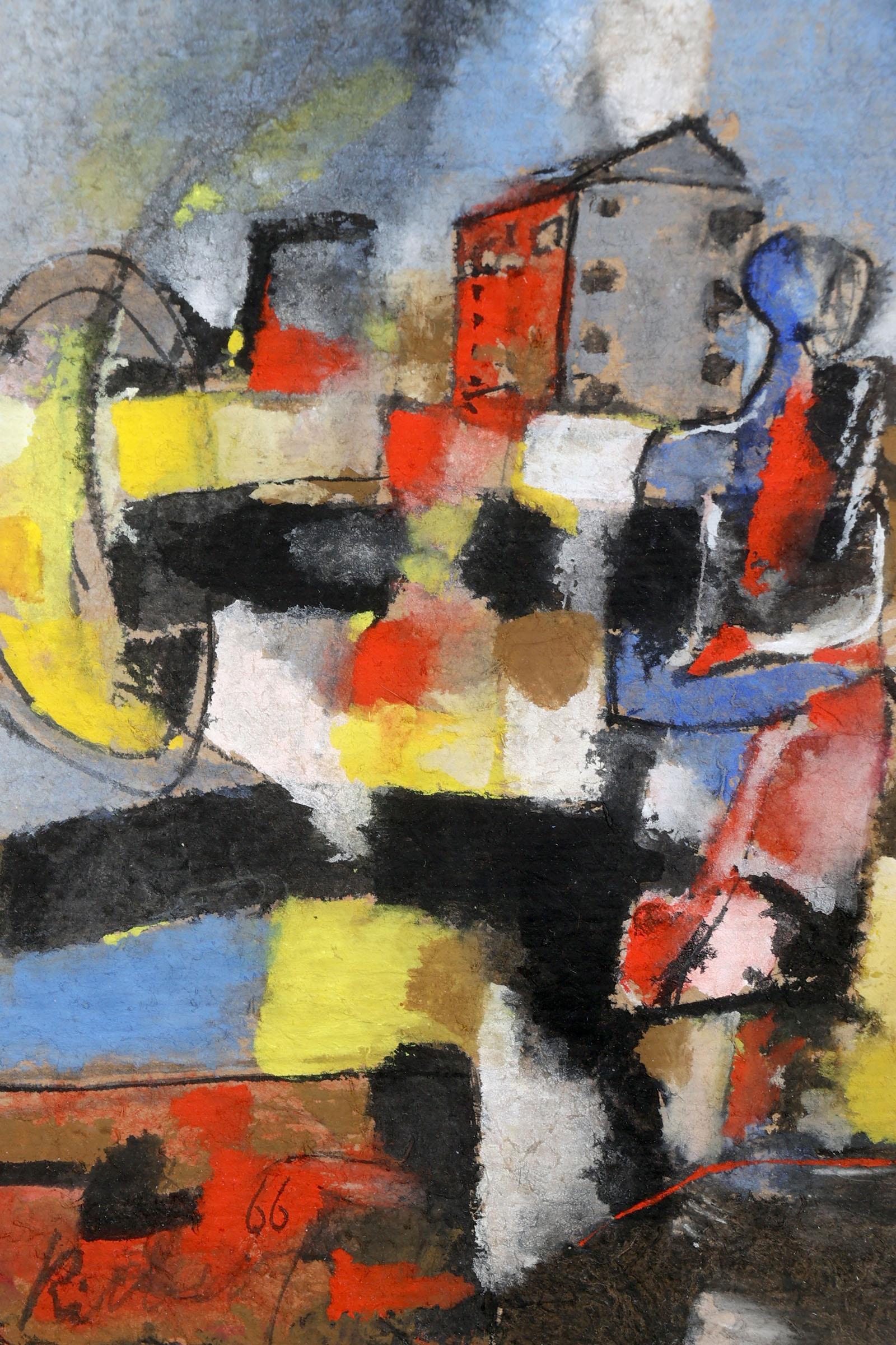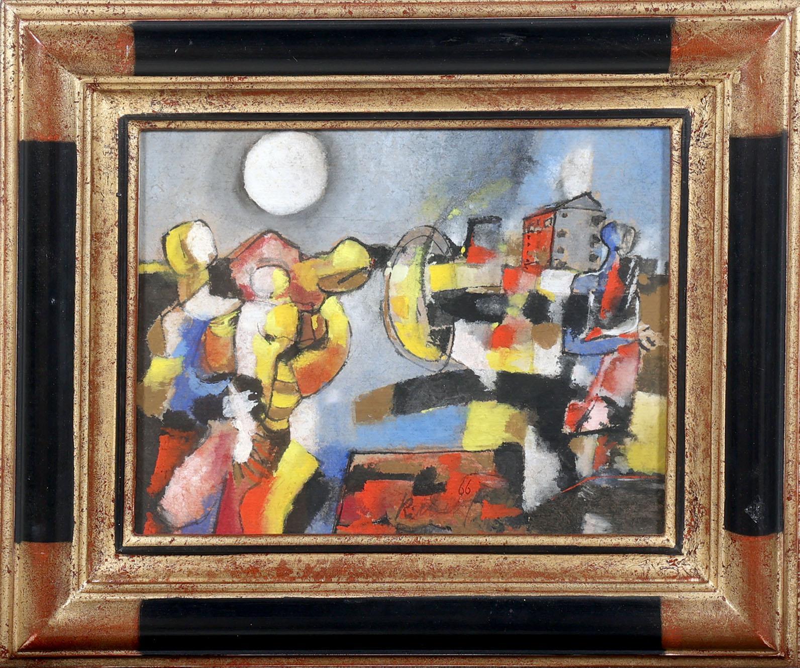 Dirkjan Ribbeling (1932-2013), Compositie met figuren, gouache op papier achter glas, 23,5 x 29,5 cm,