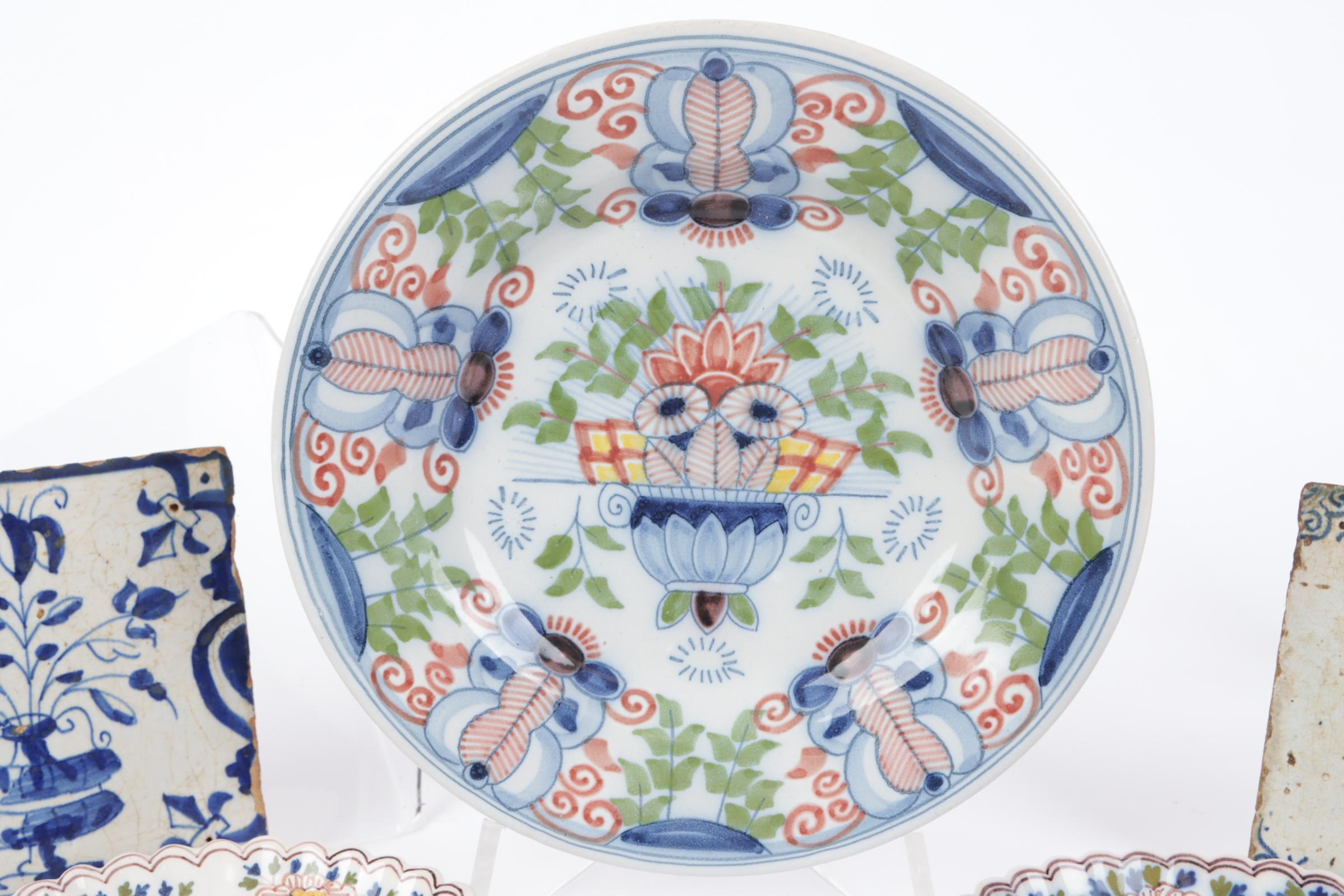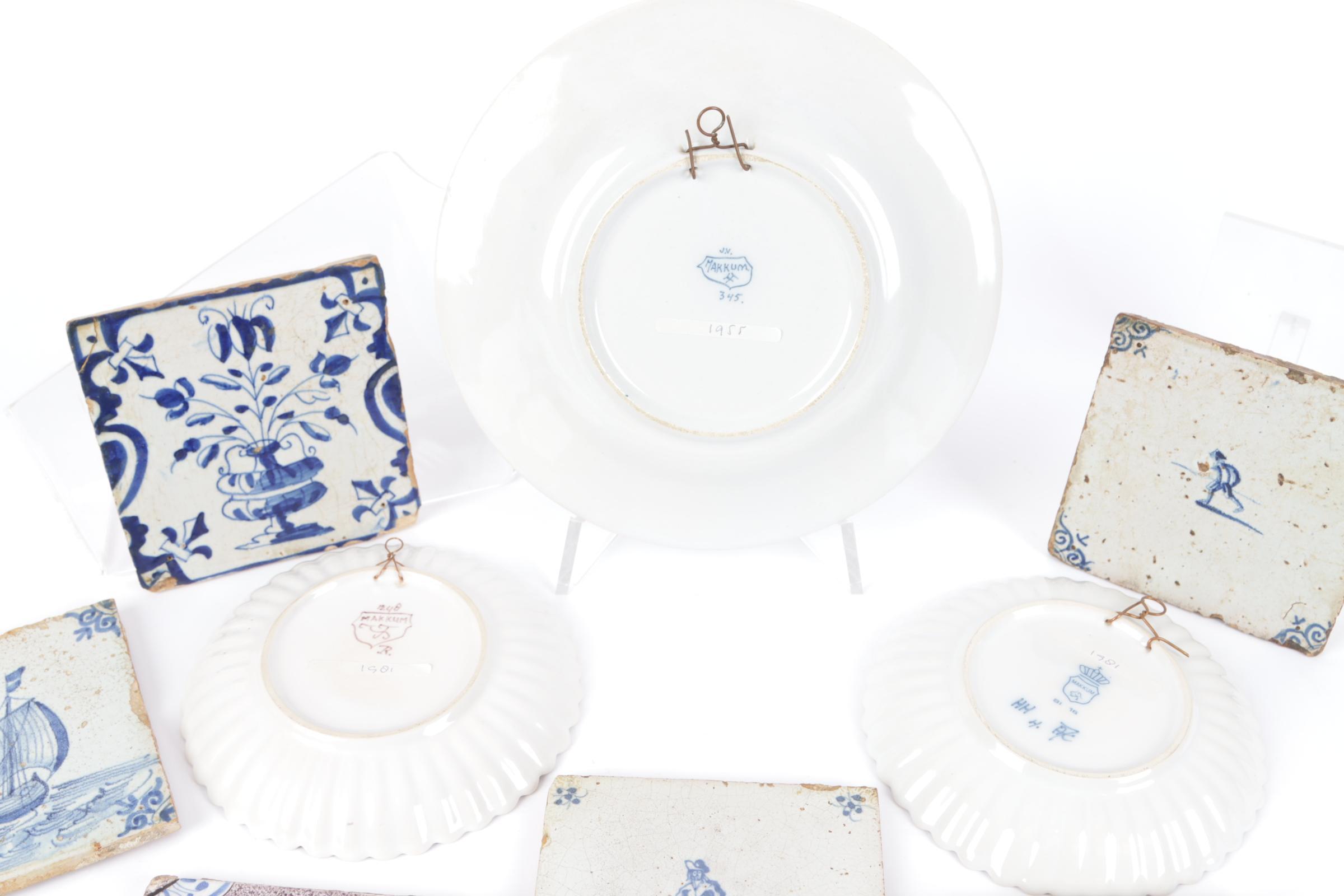 Koopje van 3 diverse Makkum bordjes en diverse tegeltjes
