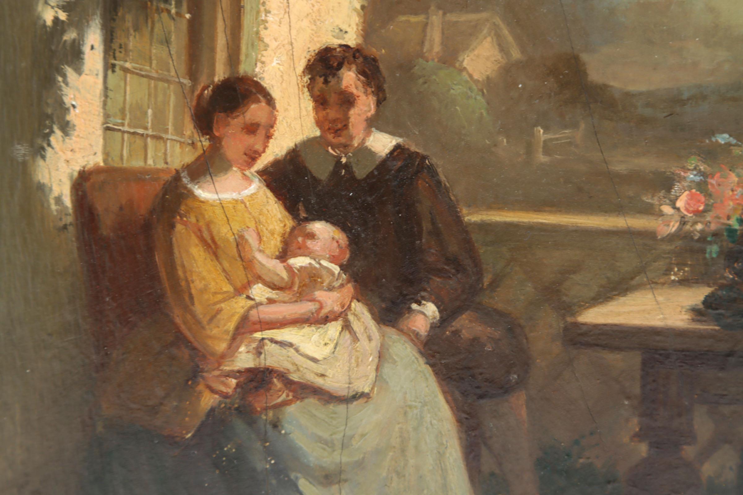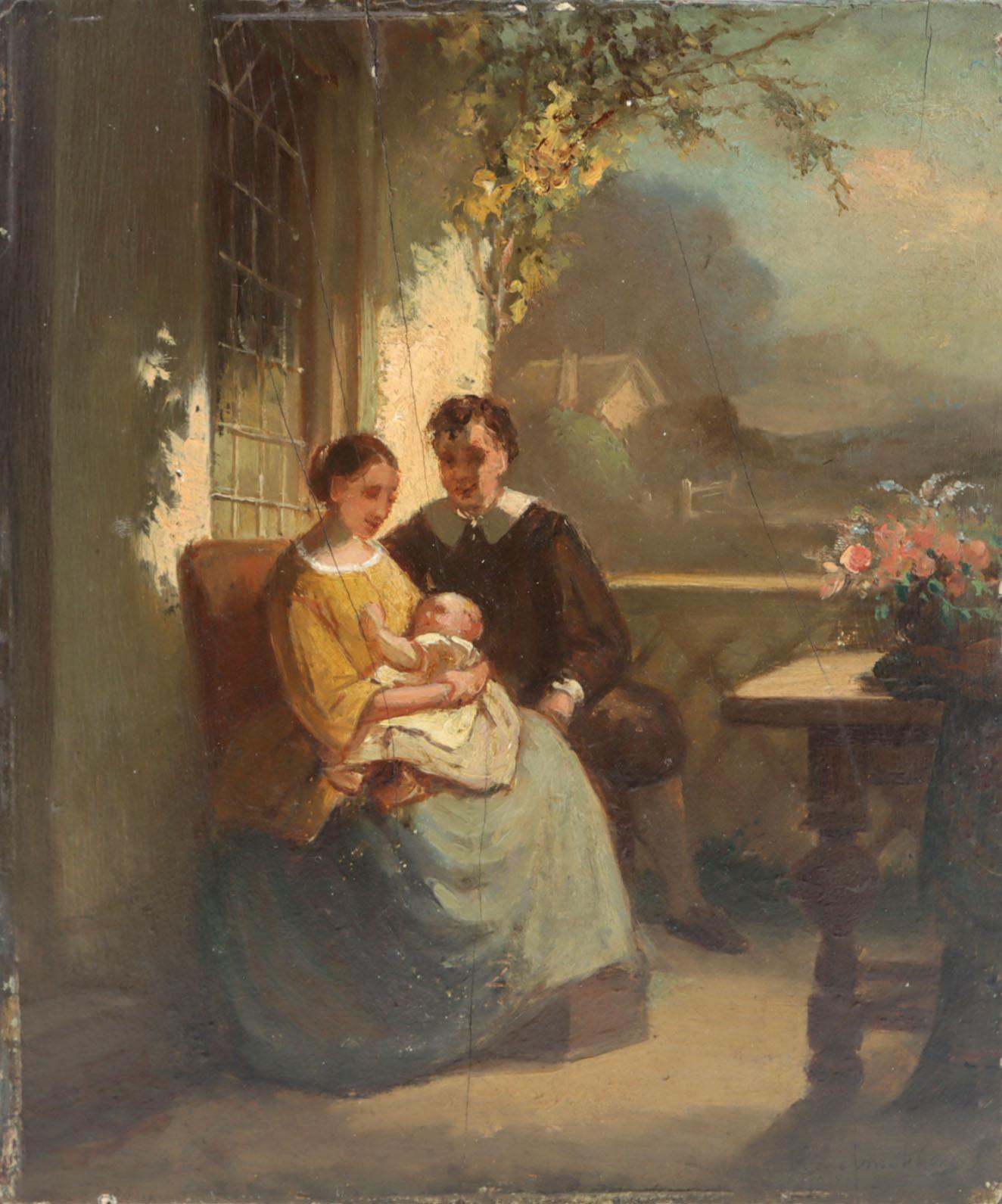Naar Pieter Jan Onderberg, Echtpaar met baby, olieverf op paneel, 17,3 x 14,2 cm.
