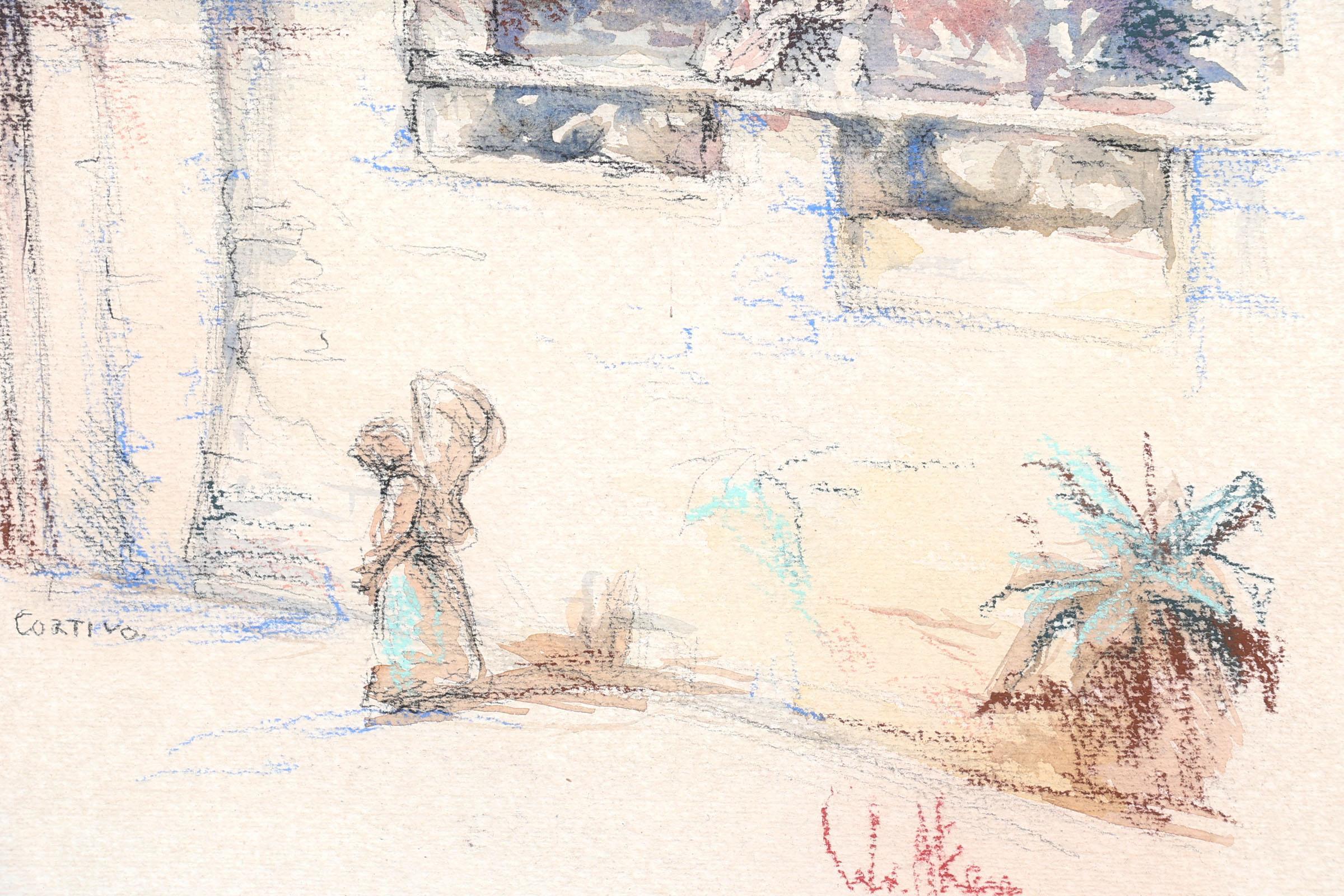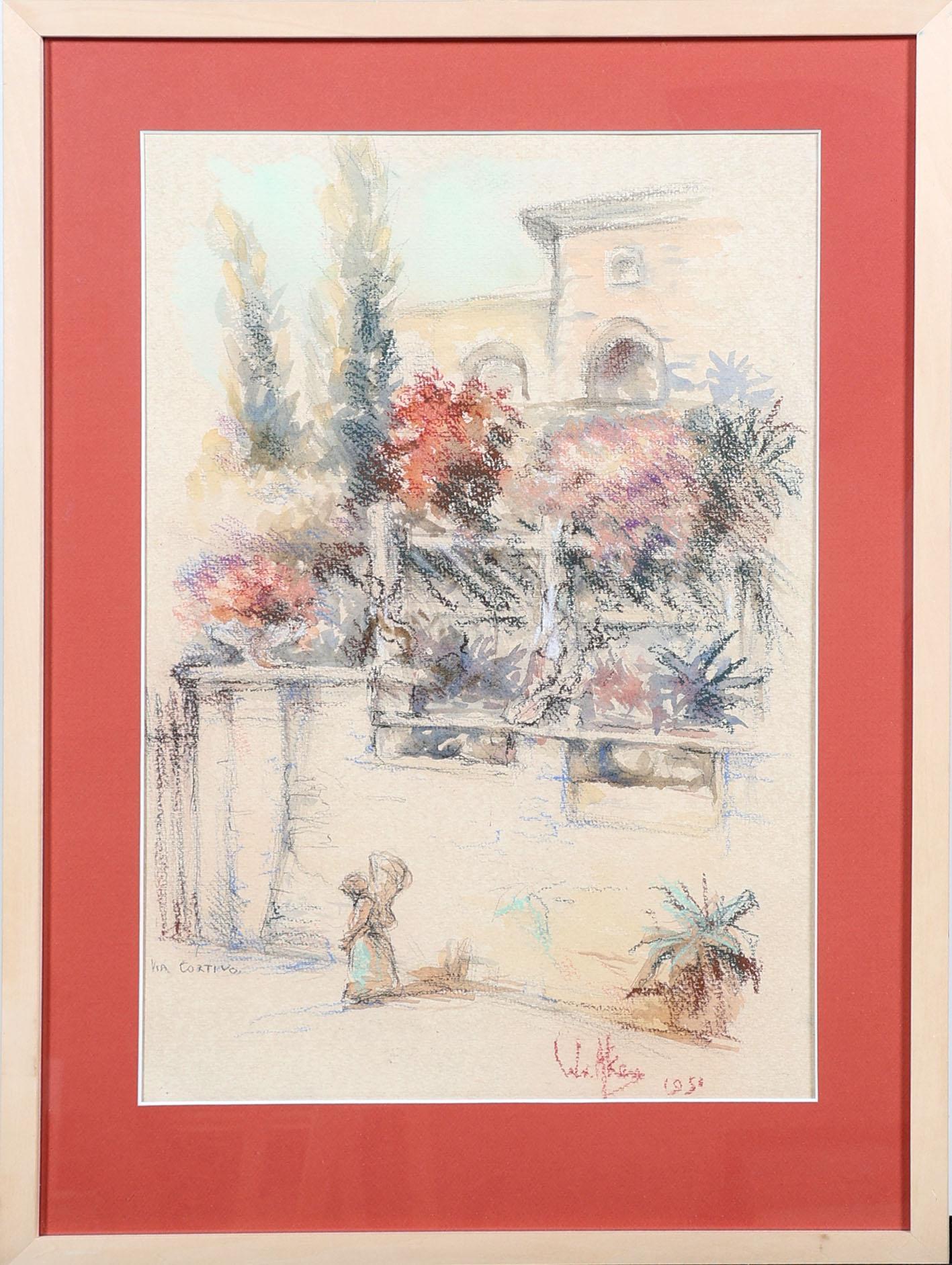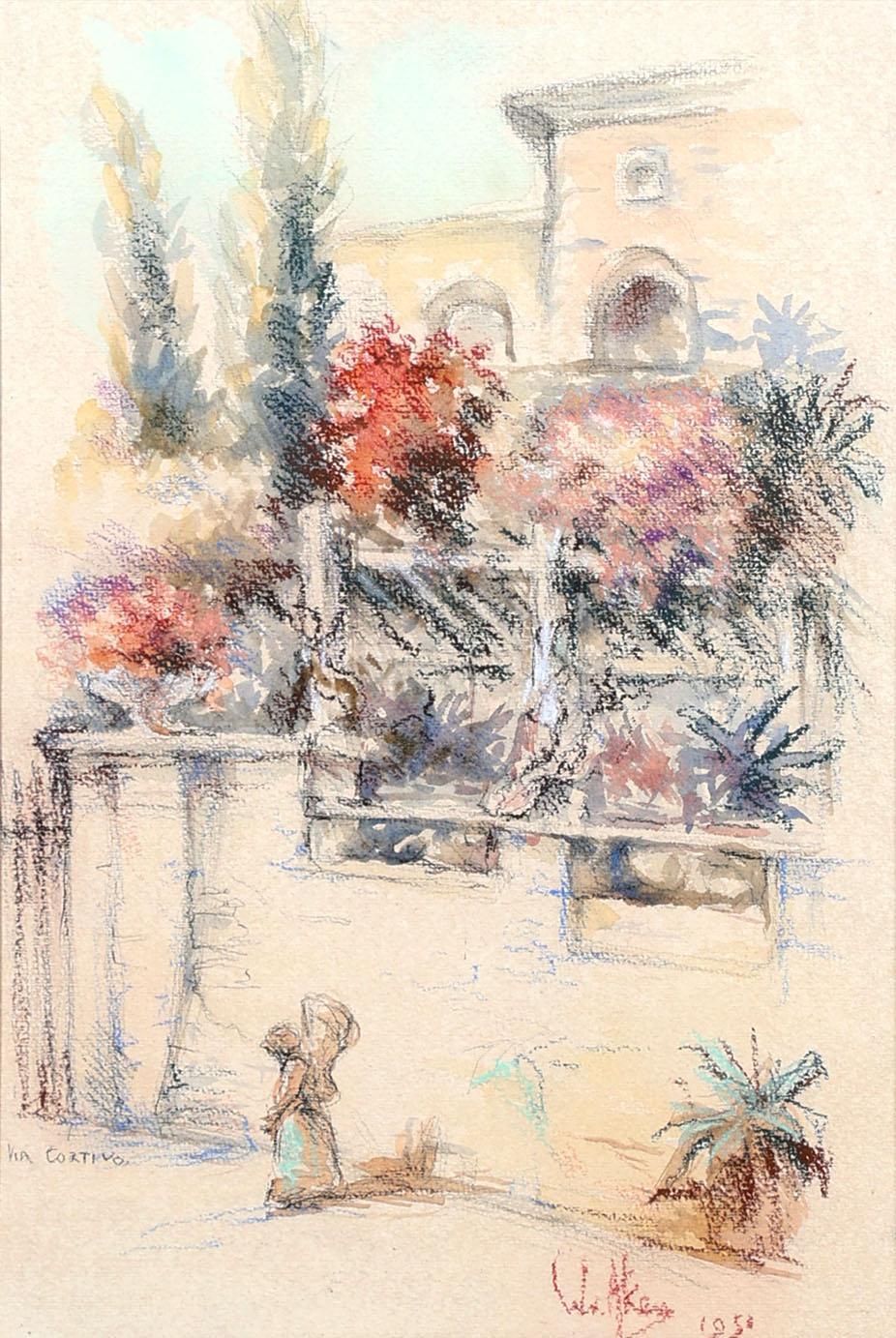 Wim van Aken (1933-2015), Via Cortivo, aquarel en pastel op papier, gedateerd 1951, 54 x 36 cm.