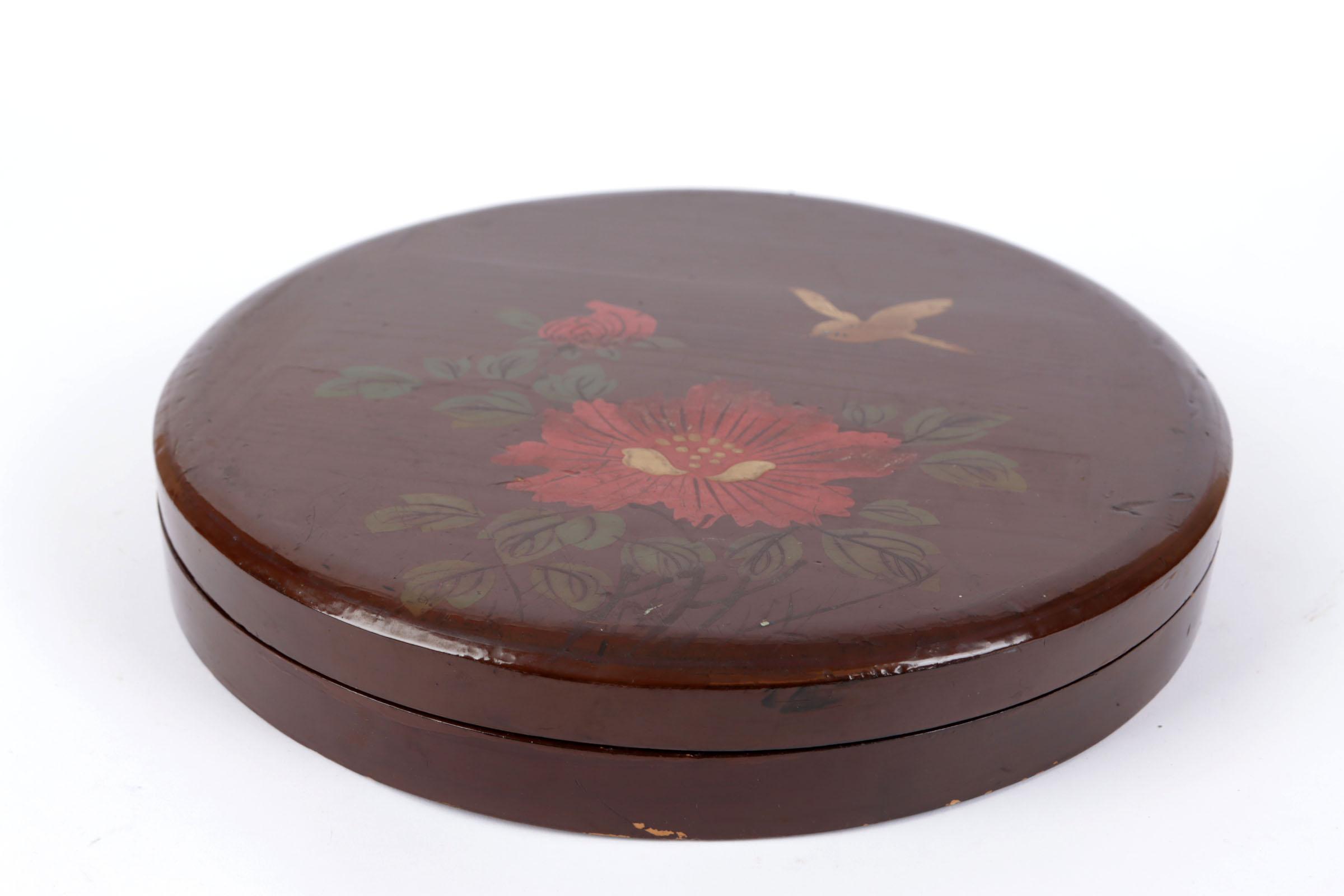Japanse lakwerk doos met daarin porseleinen verdeelschalen