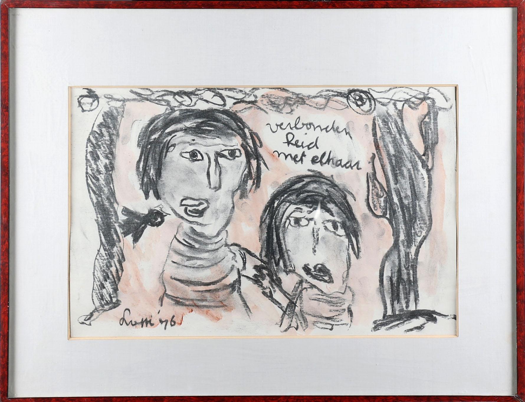 Charlotte 'Lotti' van der Gaag (1923-1999), Verbondenheid met elkaar, gemengde techniek op papier, 32 x 49 cm.