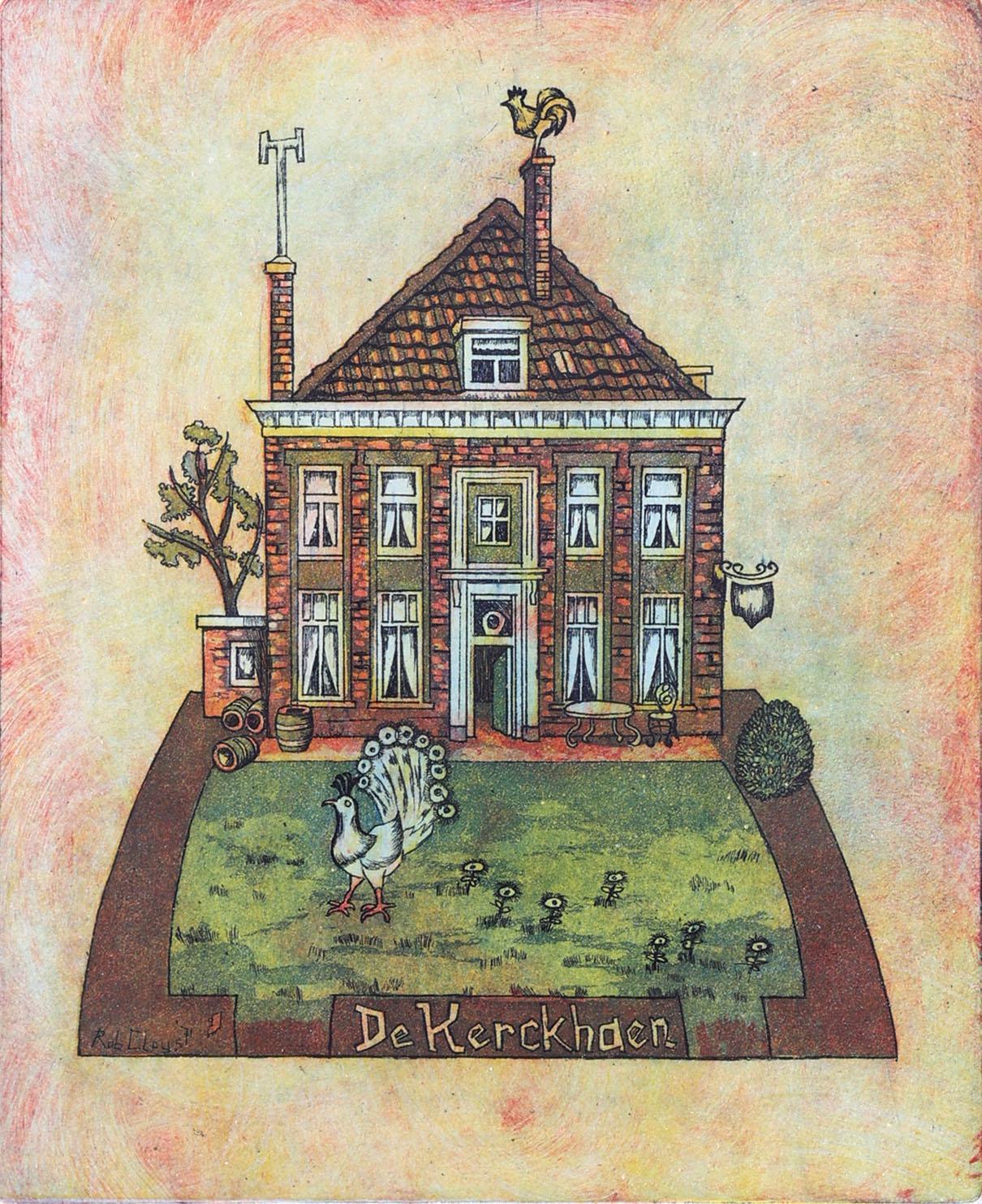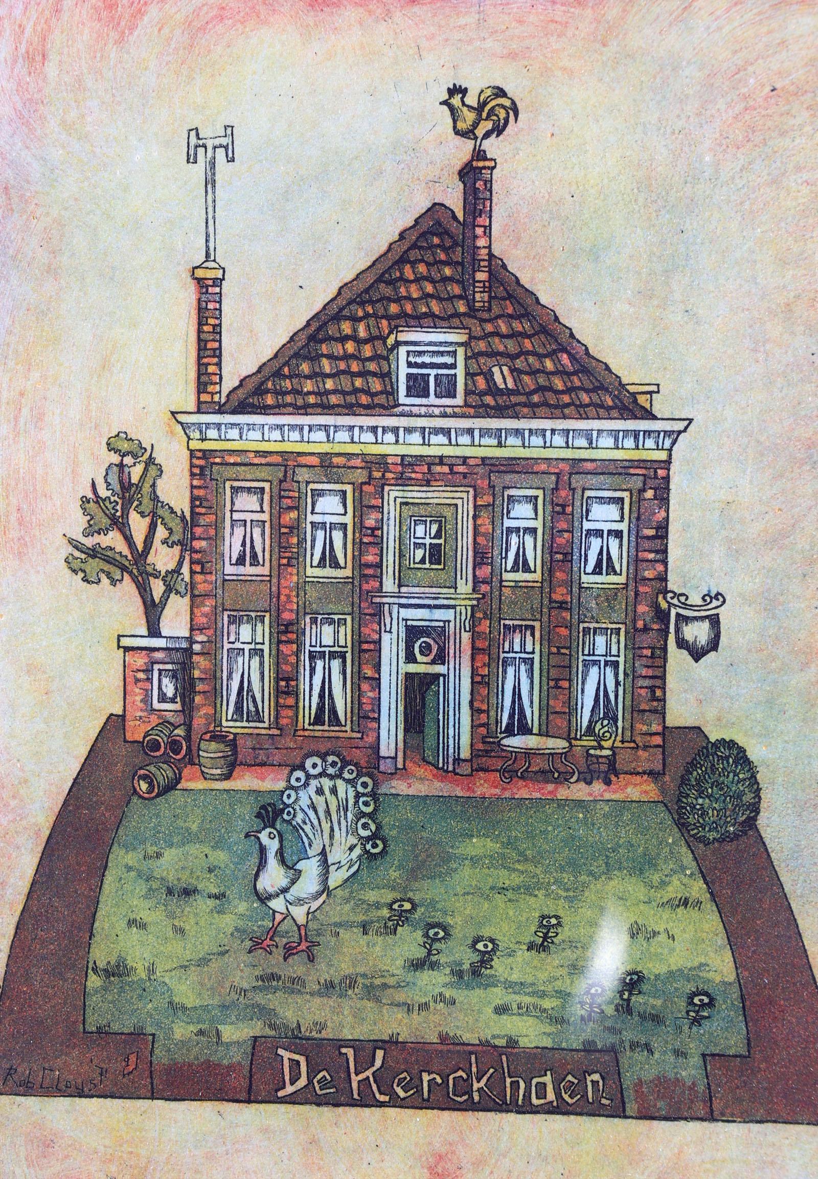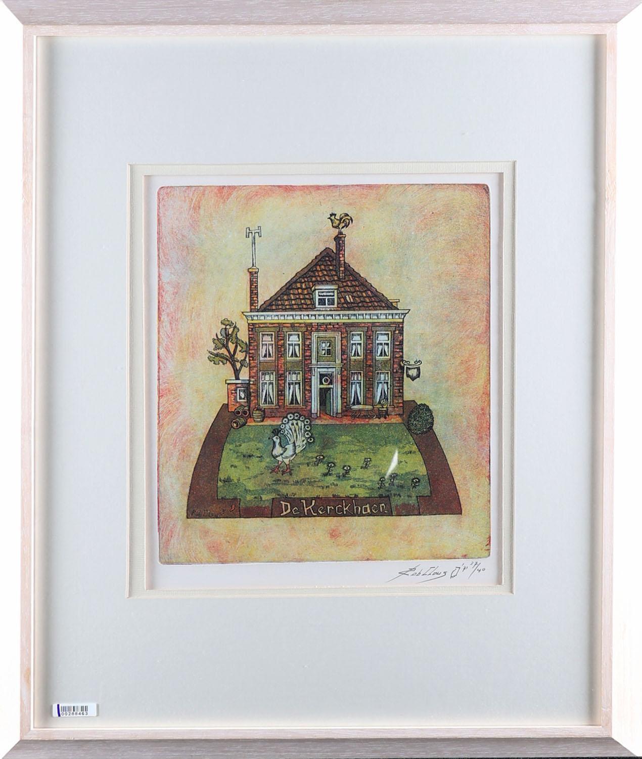 Rob Claus, De Kerkhaen, handgesigneerde kleurenets, gedateerd '71, genummerd 37/40, 33 x 26,5 cm.