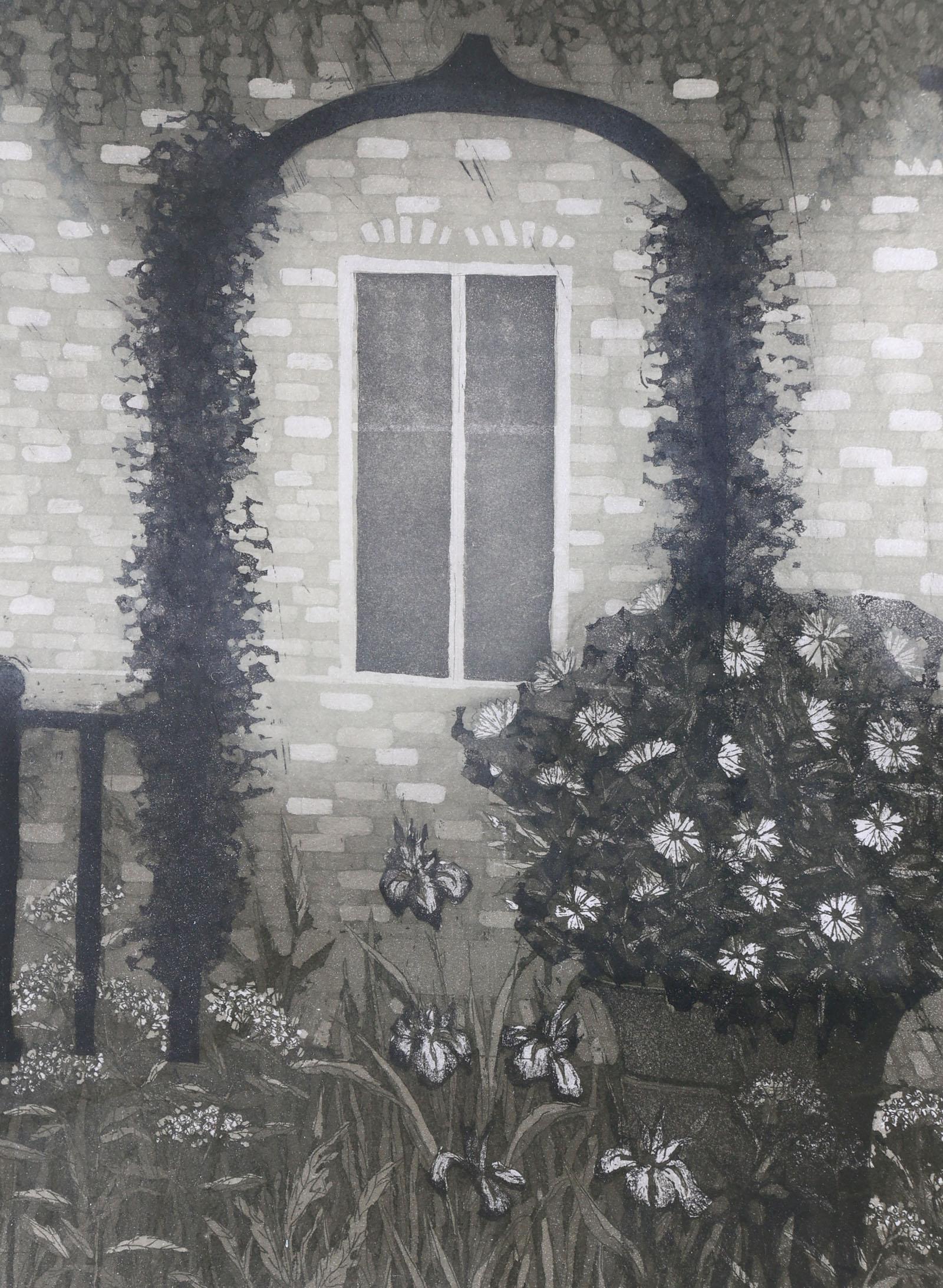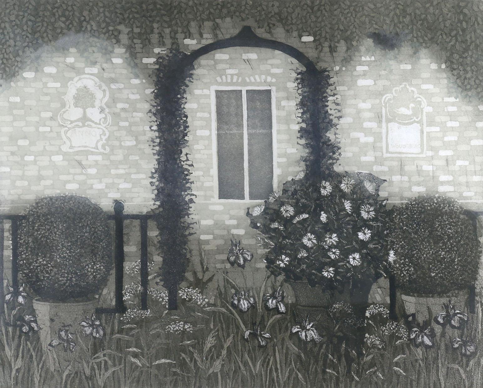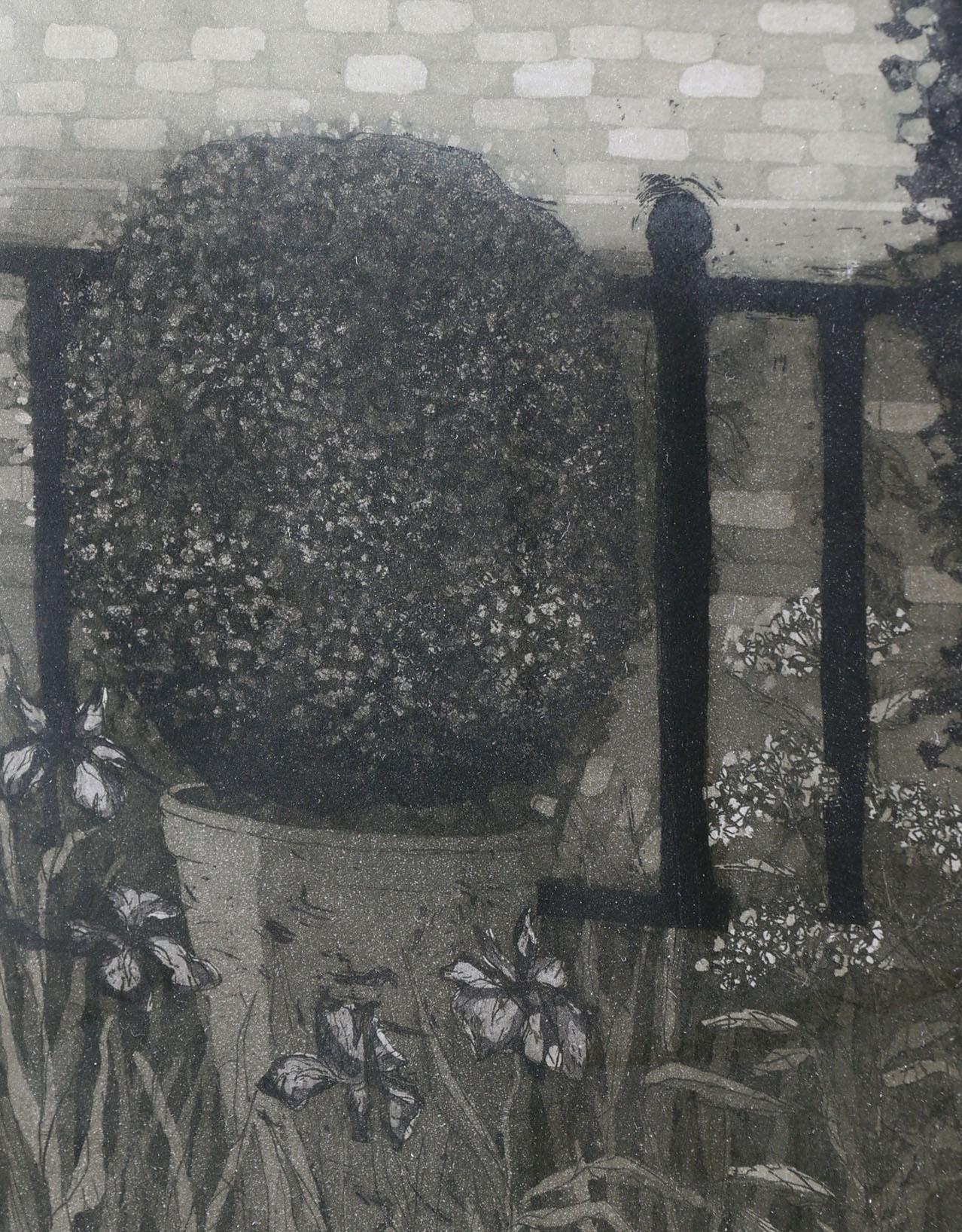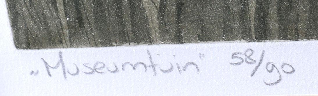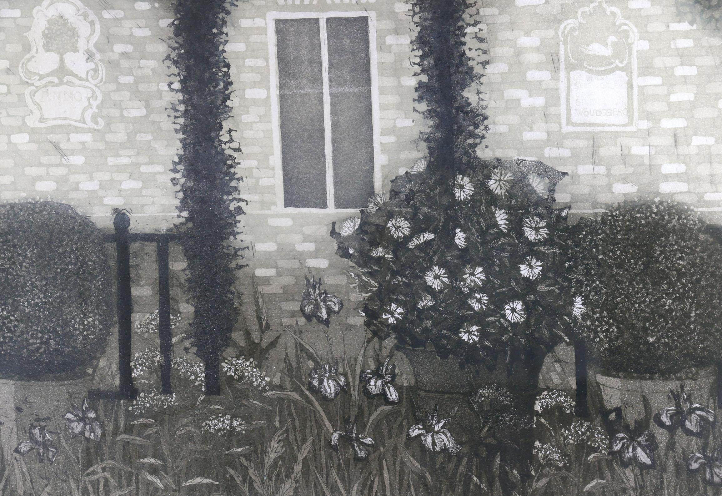 Laetitia de Haas (1948), Museumtuin, handgesigneerde ets, genummerd 58/90, gedateerd '88, 42 x 51,5 cm.