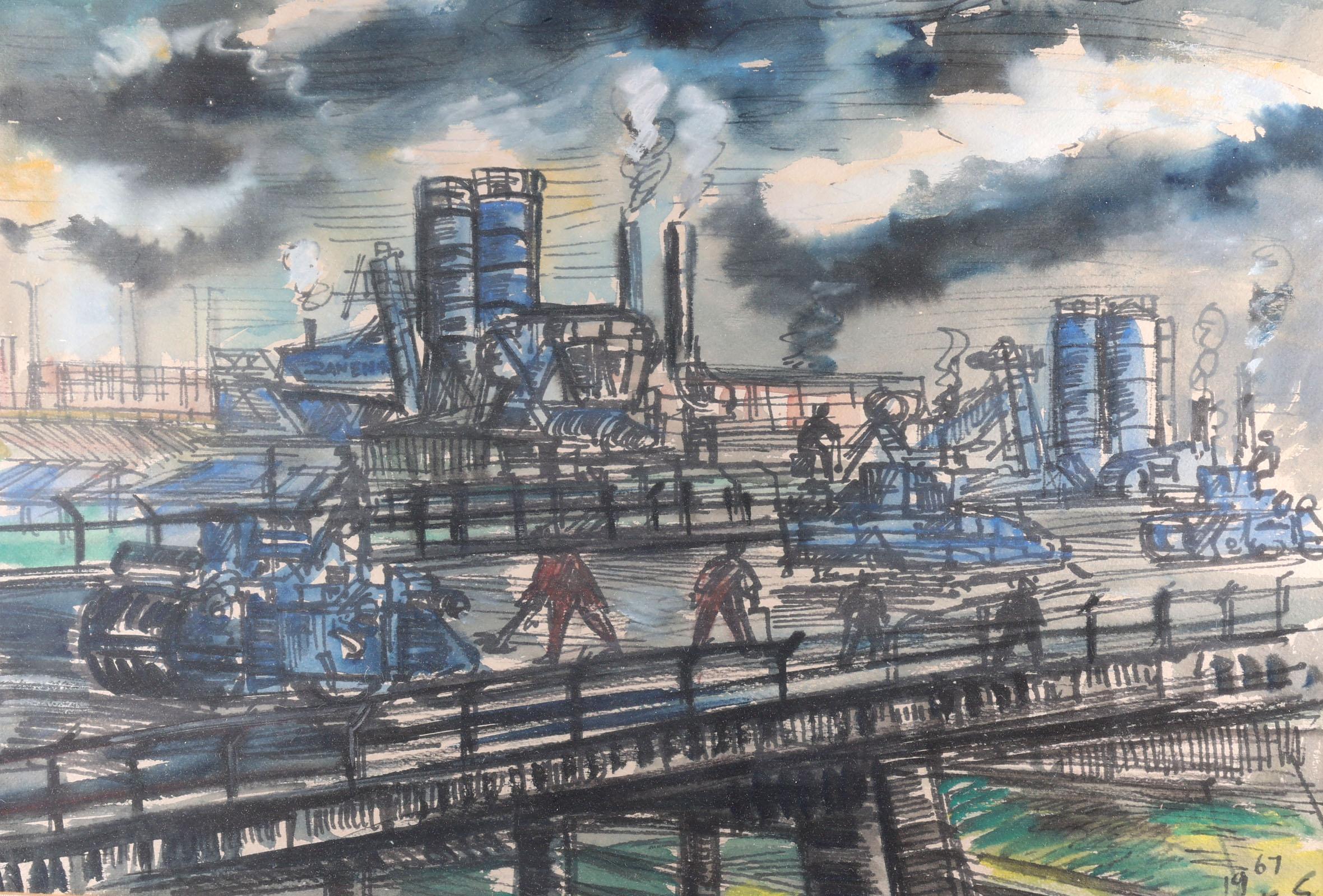 Jan Makkes (1935-1999), Kolenmijn, gouache op papier, gedateerd 1967, 53,5 x 73,5 cm.