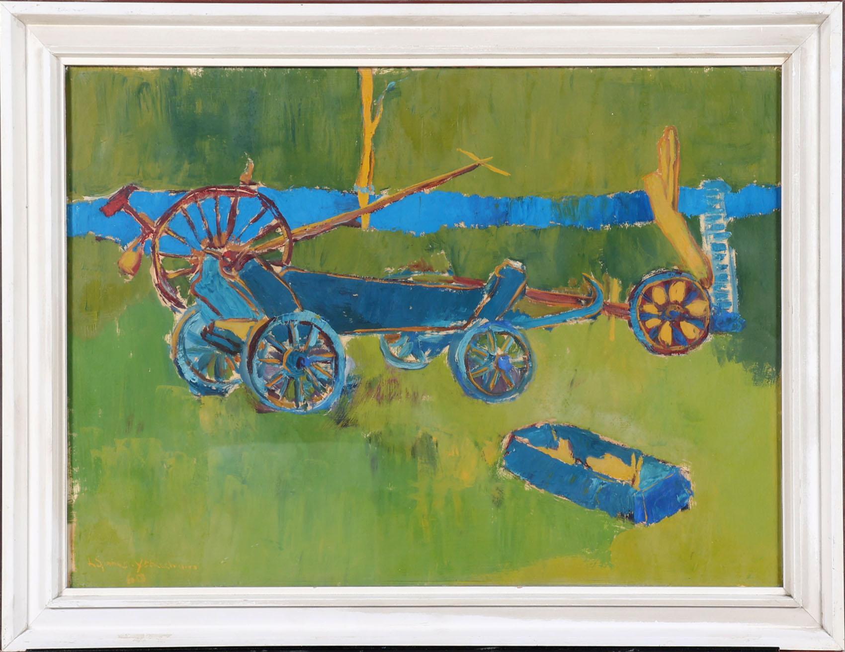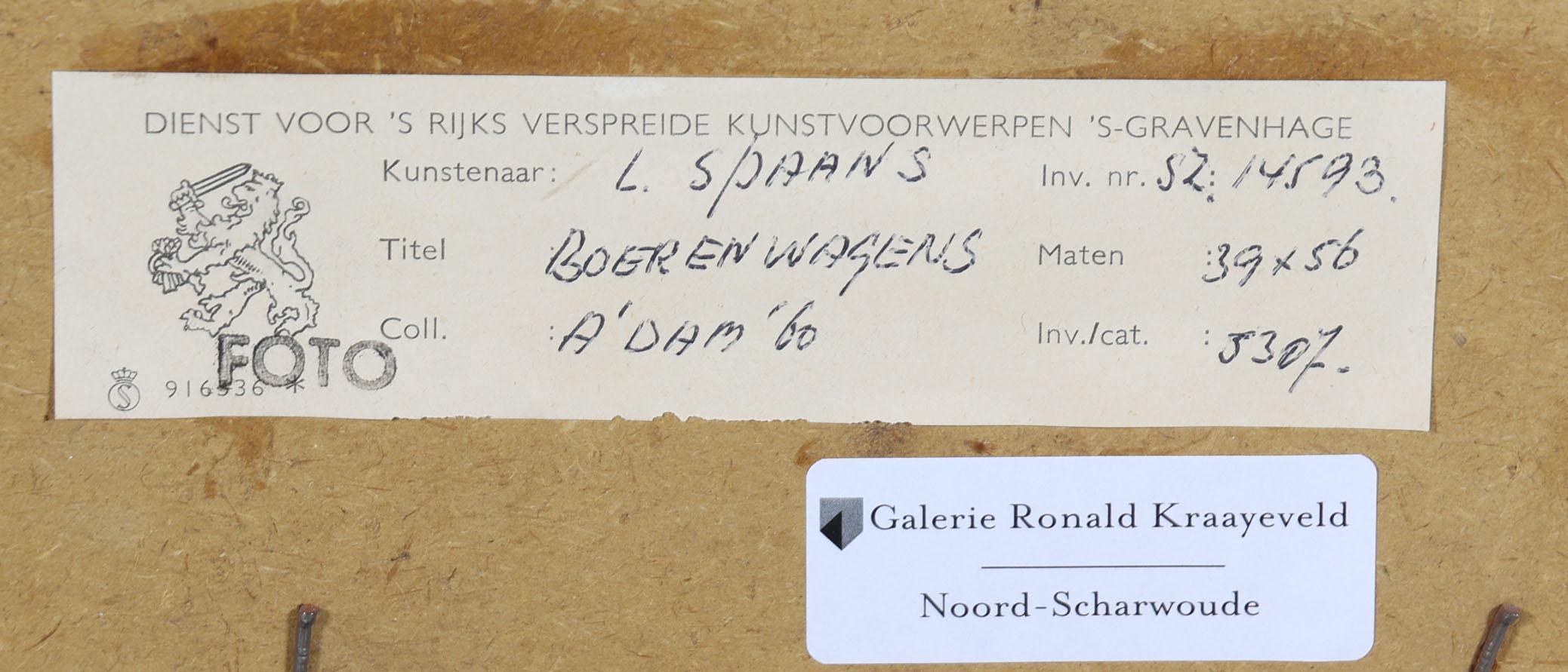 Leen Spaans (1928-1999), Boerenwagens, gouache op papier, 39 x 56 cm.