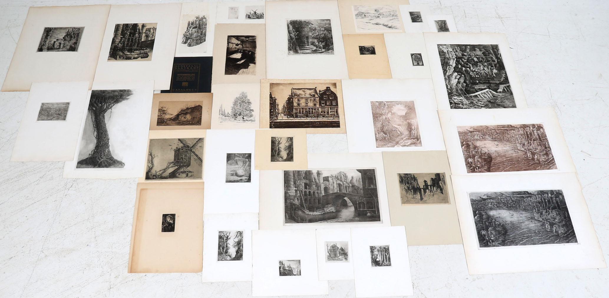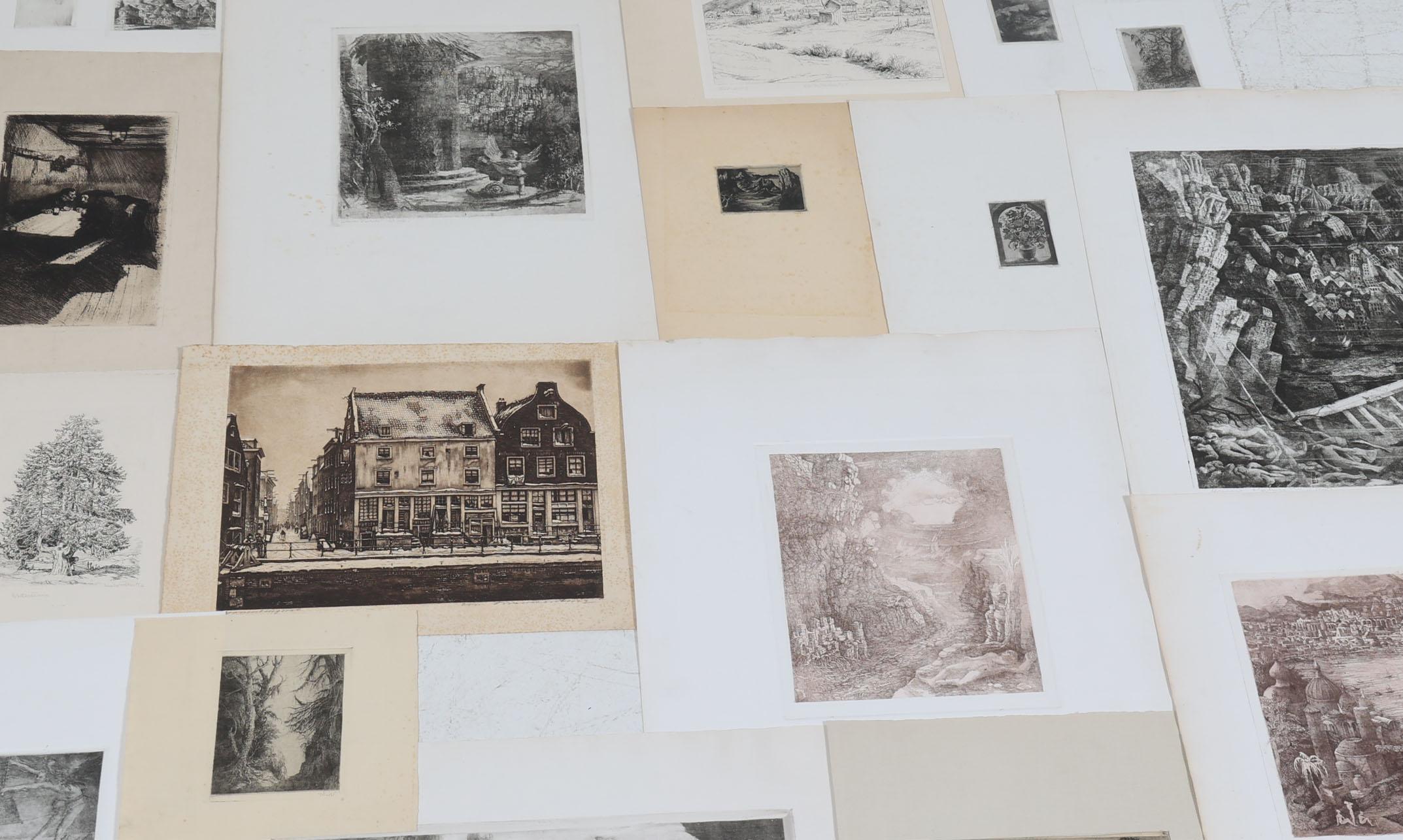 Map divers grafiek, w.o. diverse etsen van Willem Nijs, nadruk van een Rembrandt-ets, Cornelis Brandenburg, Toon de Jongh, Harald Pickert en Käthe Kollwitz