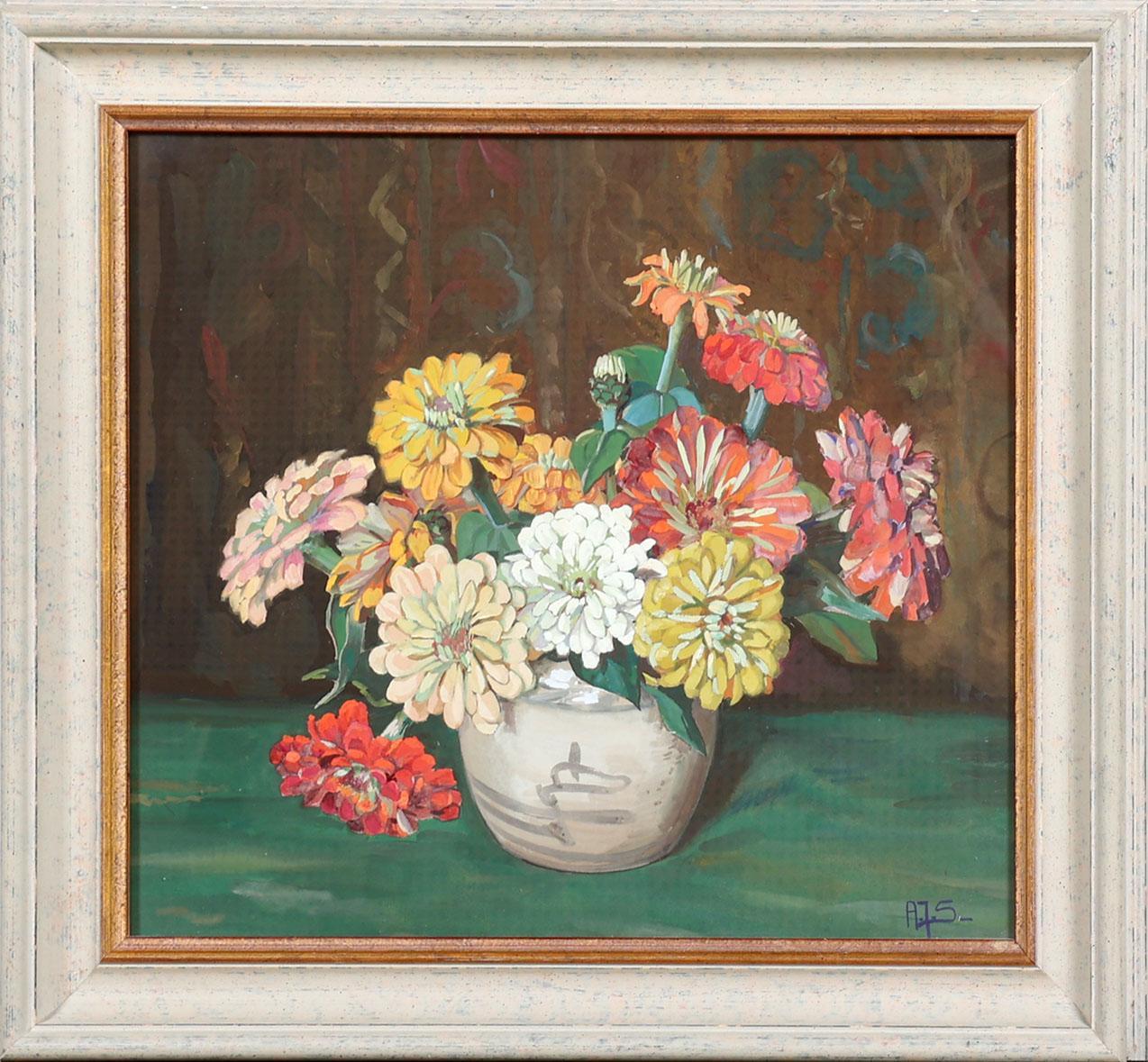 A.J. Smetz, Bloemstilleven, gouache, 38 x 33 cm.