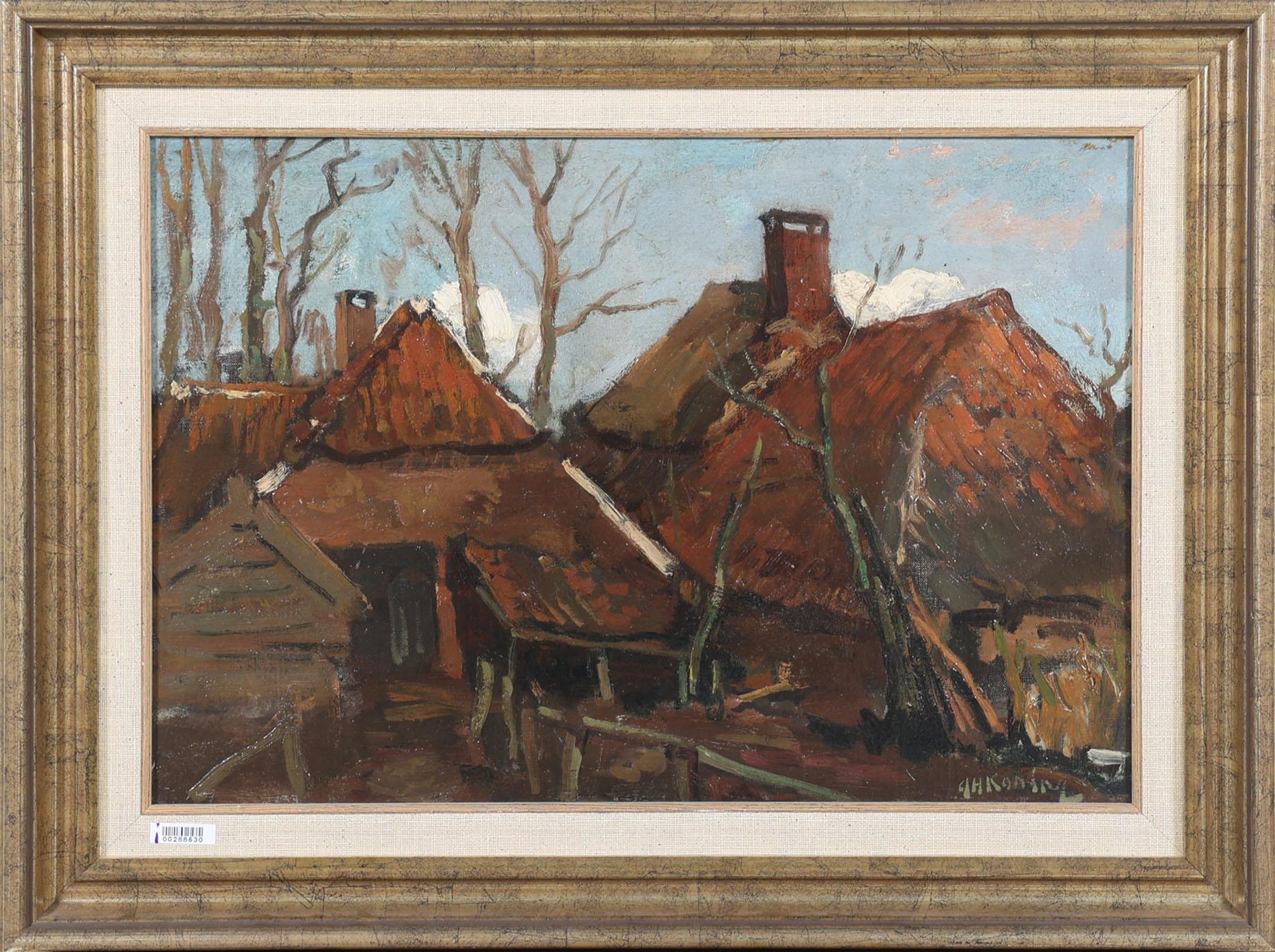 'Arnold' Hendrik Koning (1860-1945), Boerderijen, olieverf op paneel, 33,5 x 49 cm.