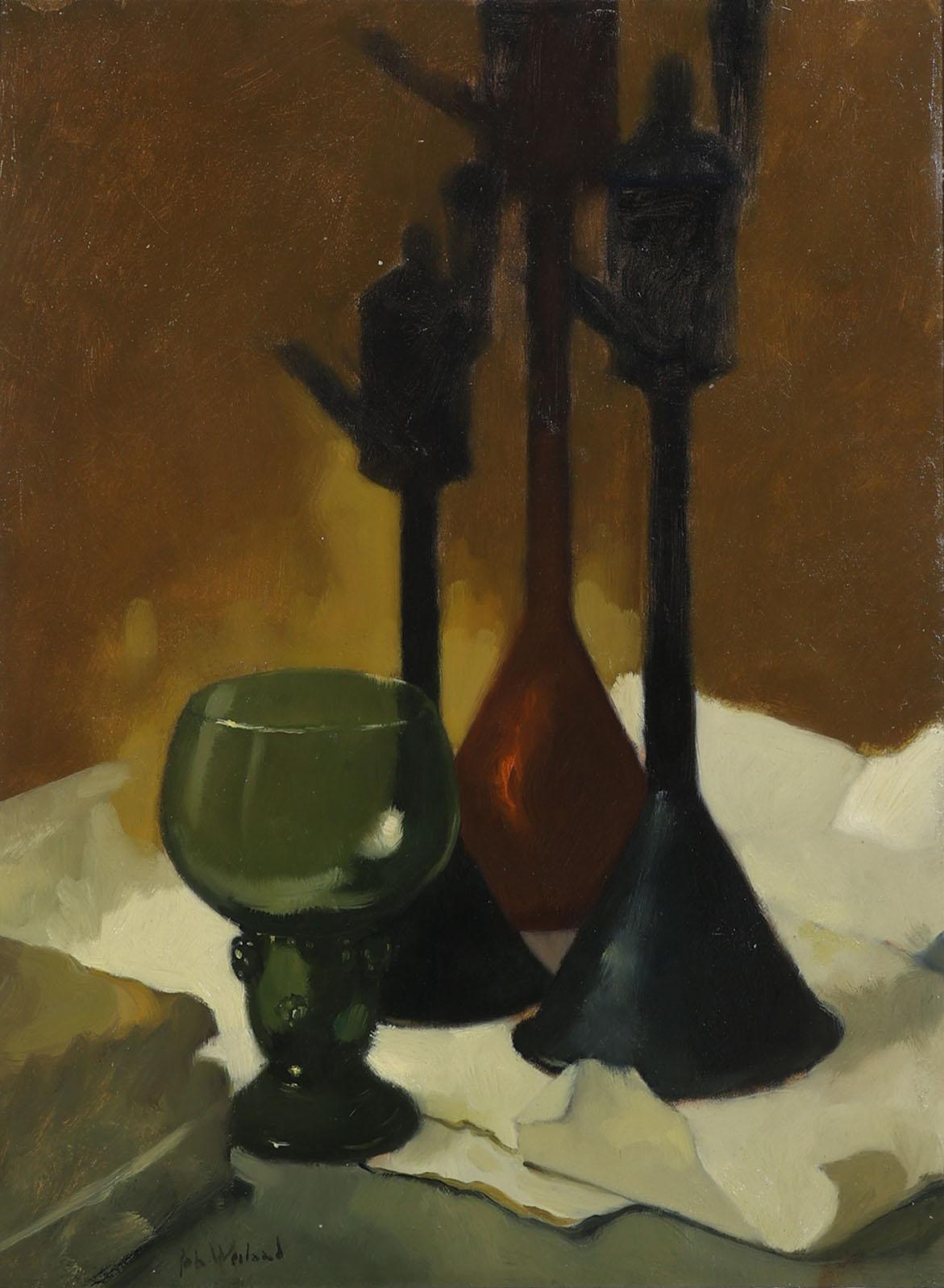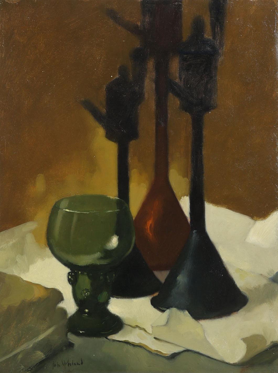 Johannes Weiland (1894-1976), Stilleven met roemer glas, olieverf op doek, 57,5 x 43,5 cm.