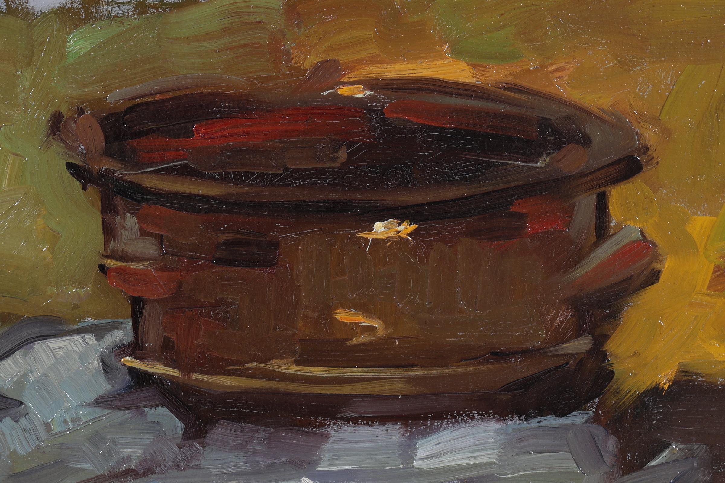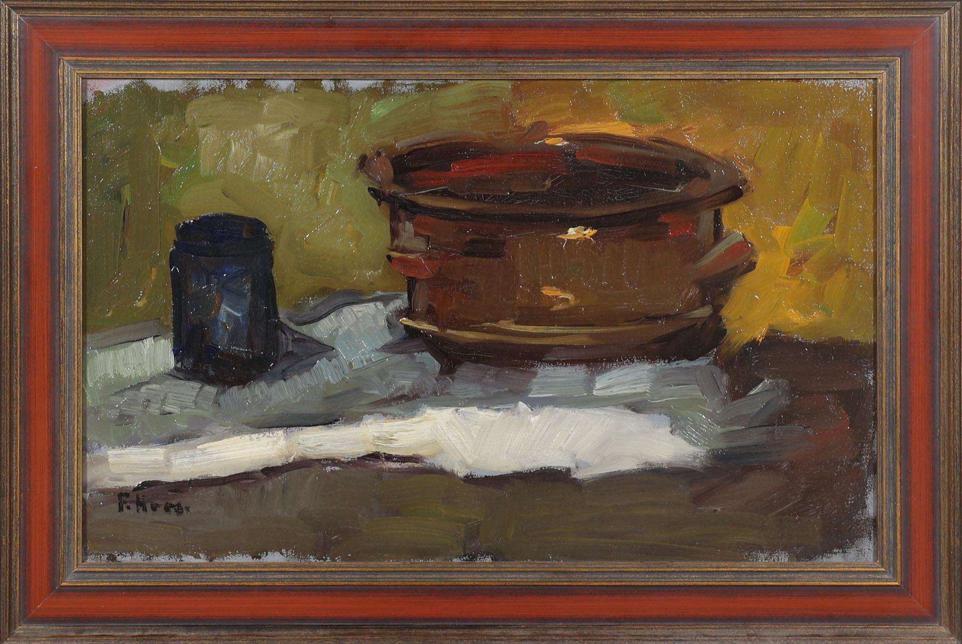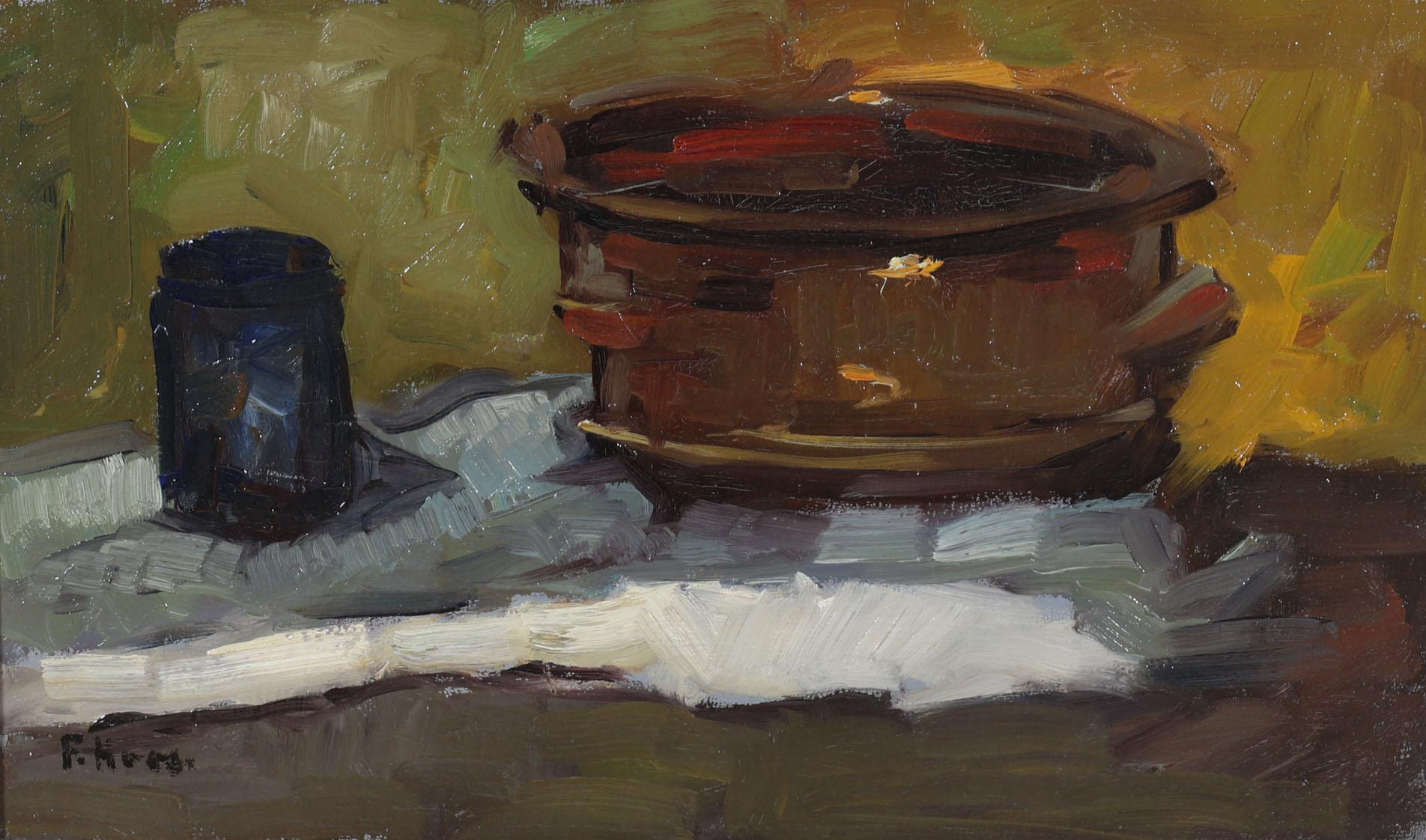 Frans Simon Hoos (1884-1966), Stilleven met pan, olieverf op paneel, 29,5 x 48 cm.