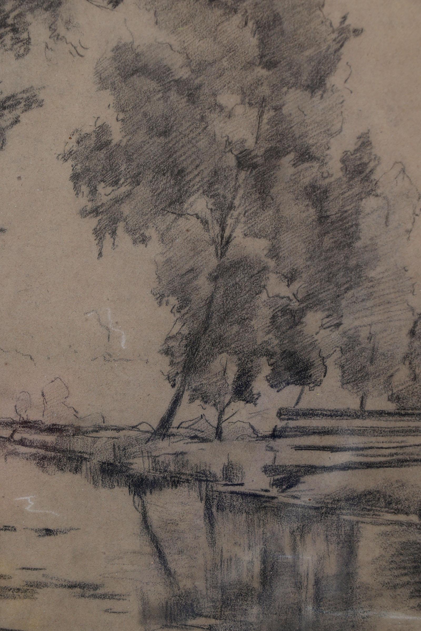 Nicolaas Bastert (1854-1939), Boslandschap, houtskool op papier, 25 x 29 cm.
