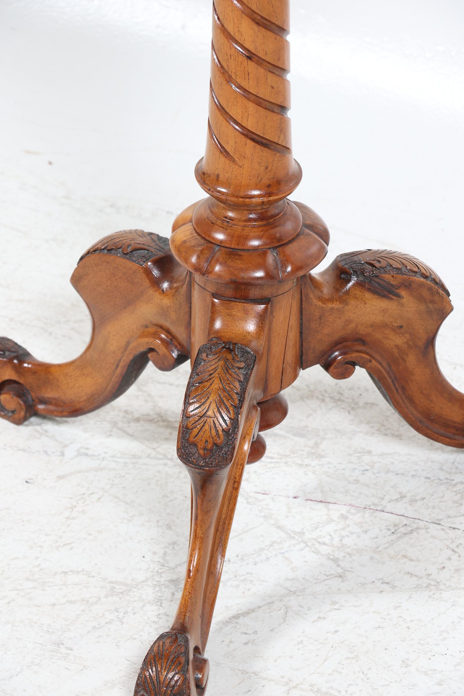 Oude notenhouten 8-kantige bijzettafel, h.71 x b.48 x d.48 cm.