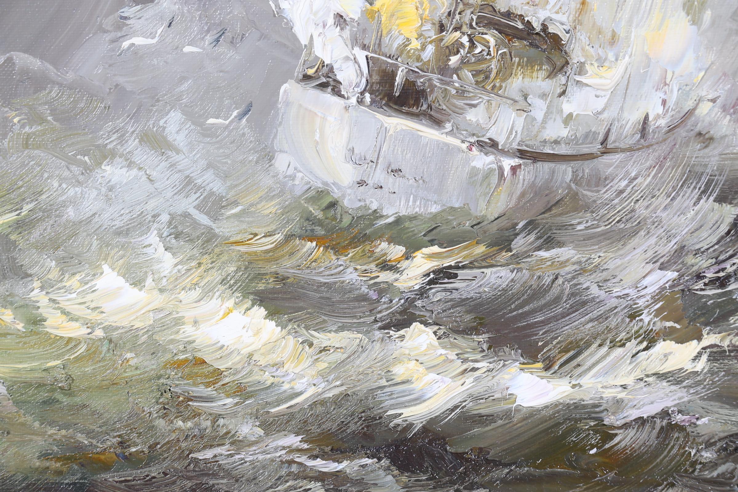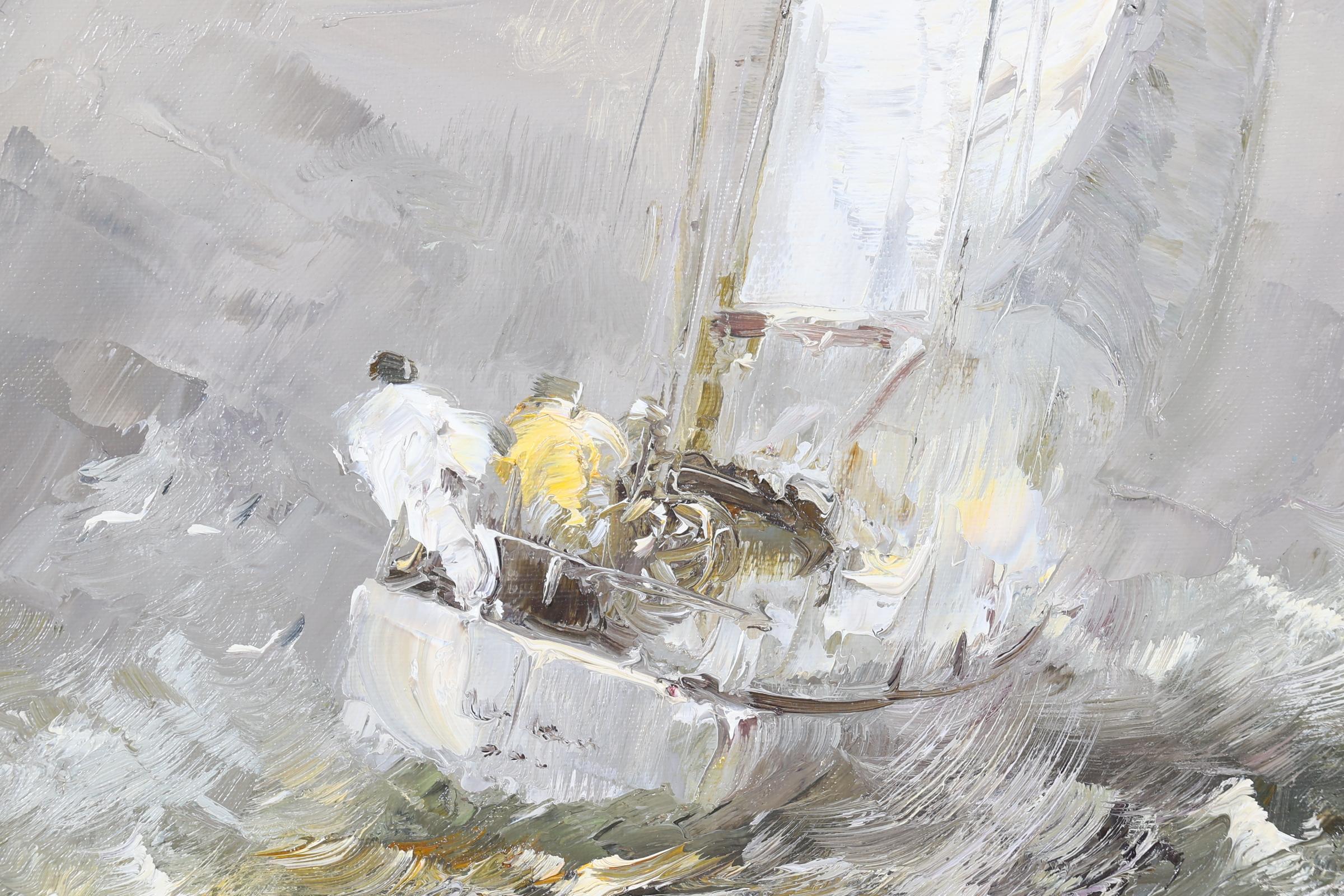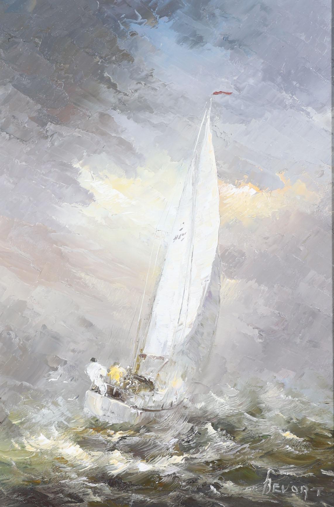 Johannes Hubertus Hendrikus 'Jan' Bévort (1917-1996), Zeiljacht op wilde zee, olieverf op doek, 88 x 58 cm.