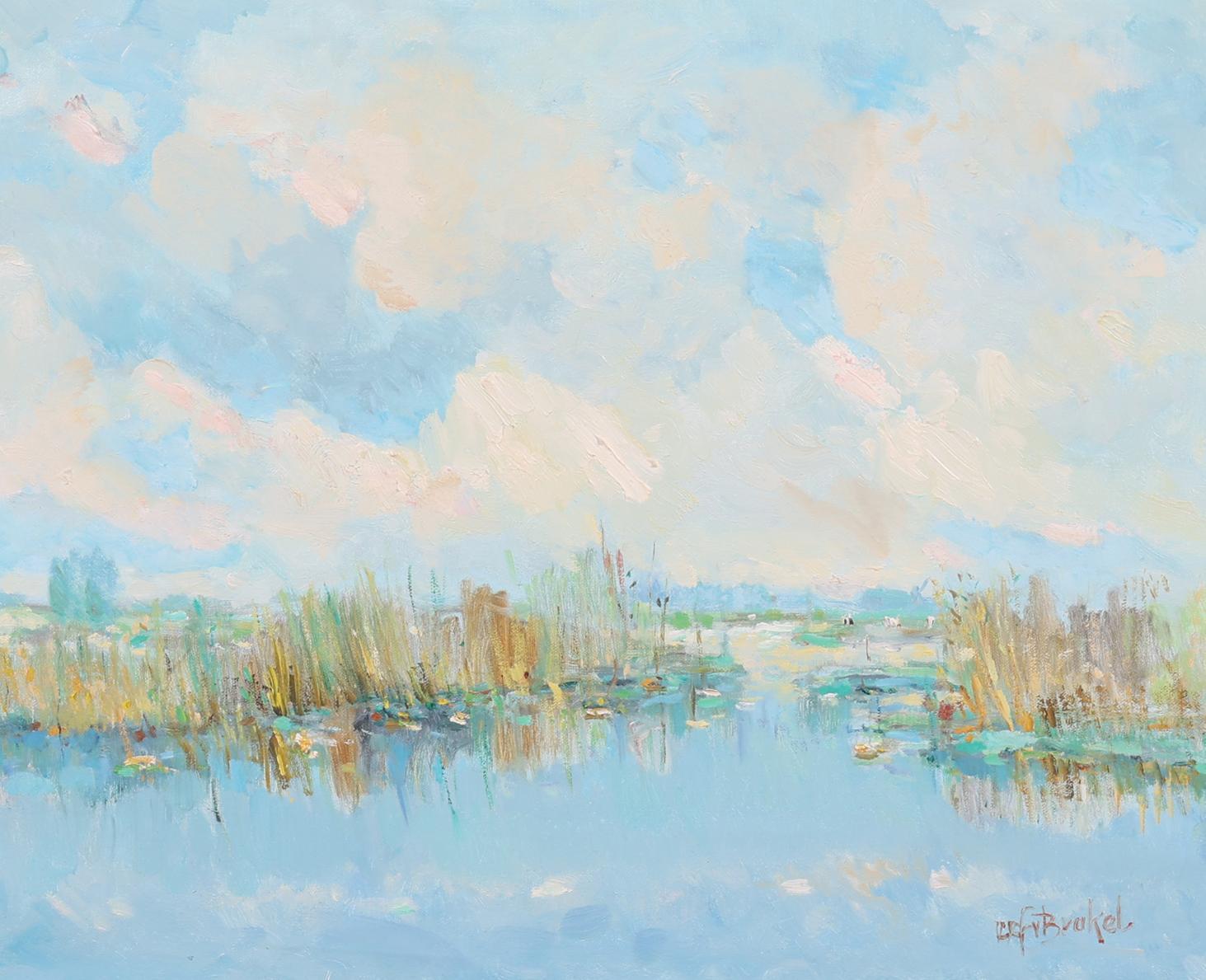 Eef van Brakel (1930-2014), Landschap aan het water, olieverf op doek, 38,5 x 48 cm.