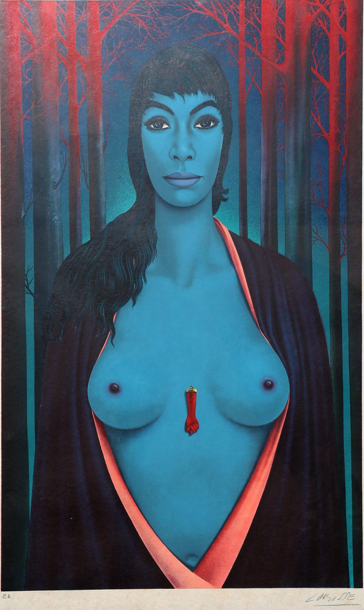 Felix Labisse (1905-1982), Lady in Blue, handgesigneerde lithografie, Epreuve d'artiste, 72 x 48 cm.