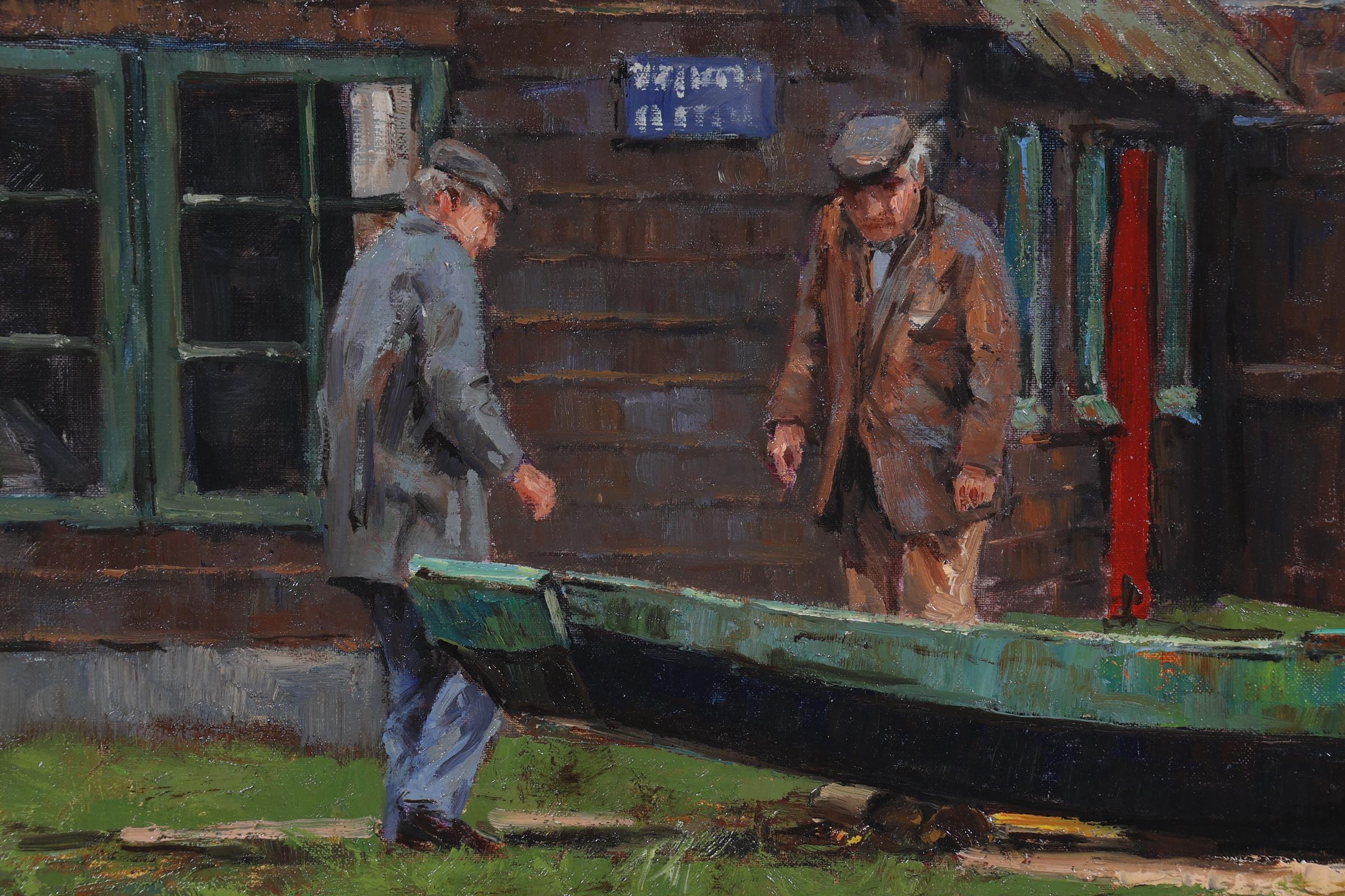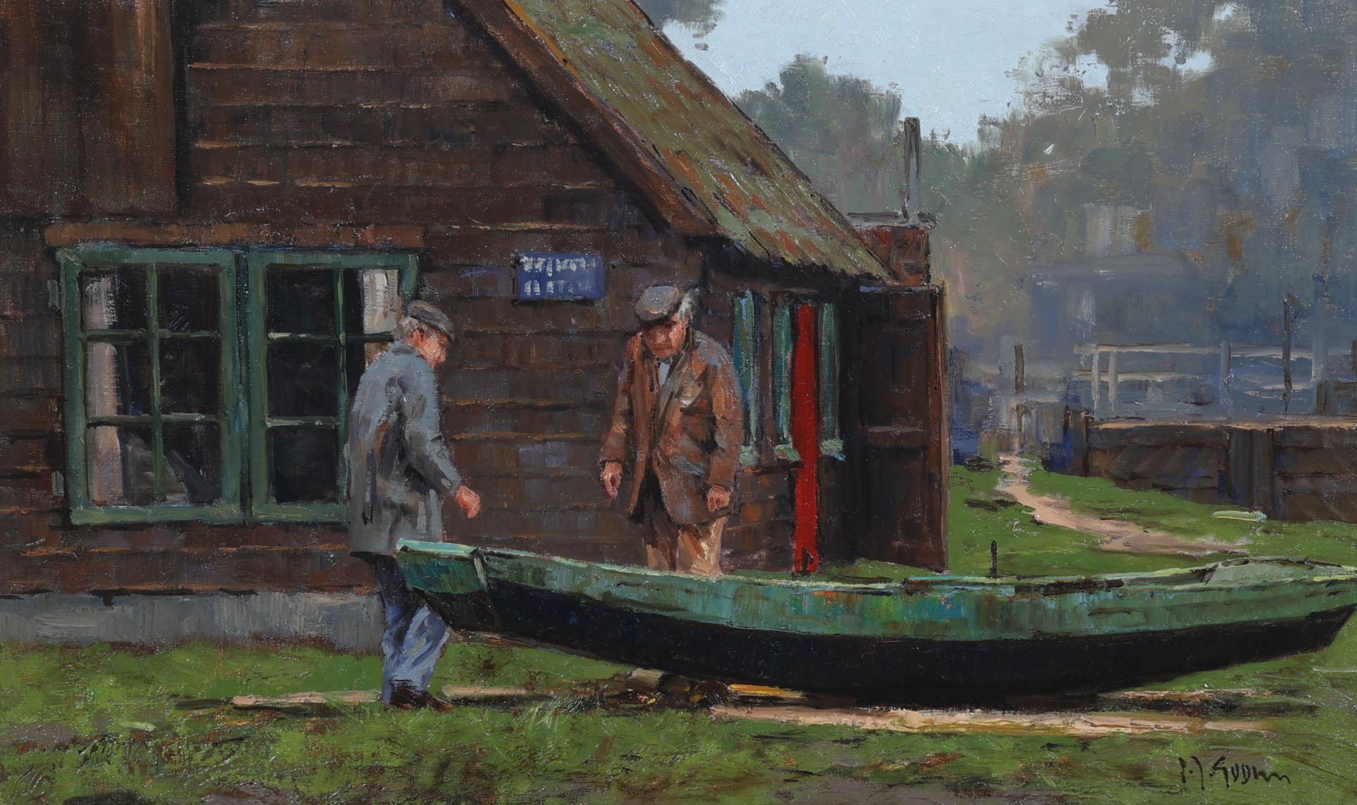 'Frits' Johan Goosen (1943), De Bootverhuurder te Breukelen, olieverf op doek, gedateerd '94, 29 x 49 cm.