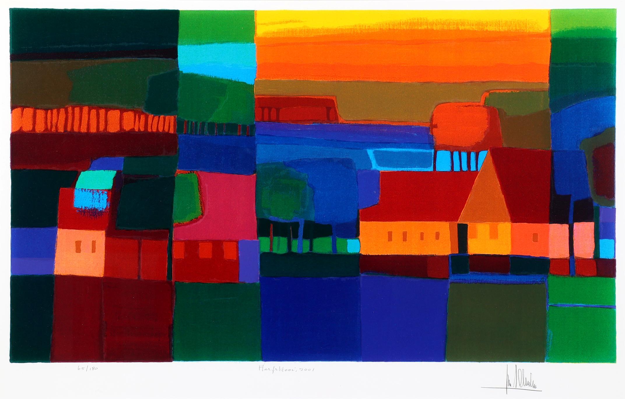 Ton Schulten (1938-2025), Herfsttooi, handgesigneerde zeefdruk, gedateerd 2001, genummerd 65 / 180, 48 x 75 cm.