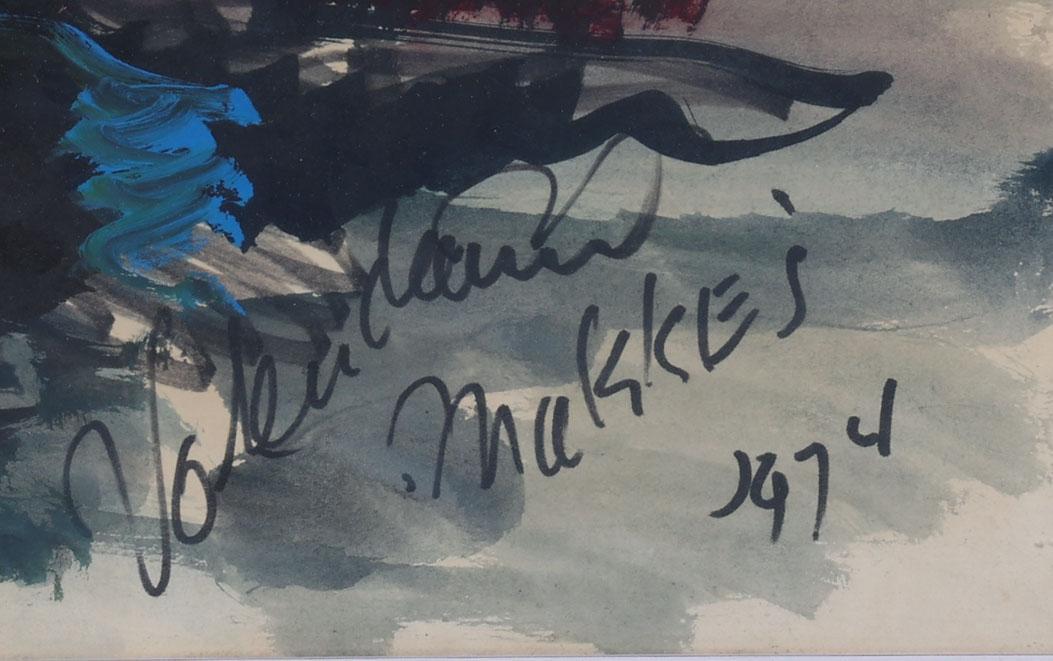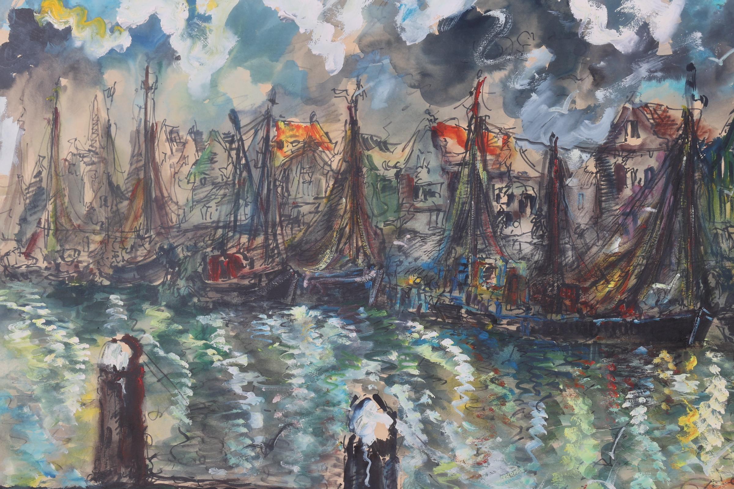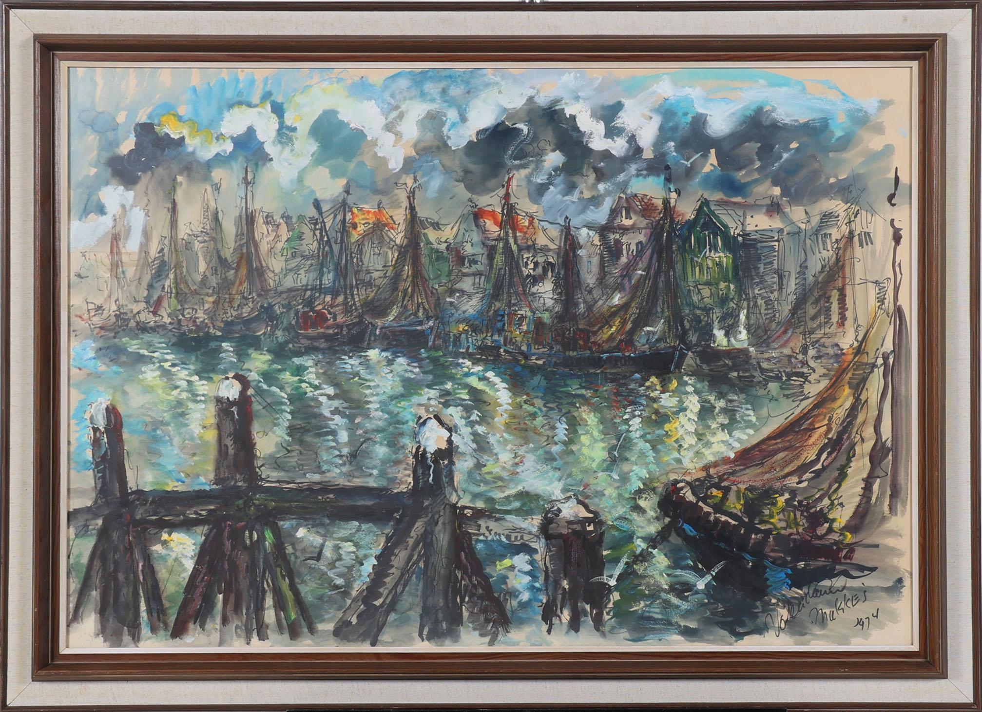 Jan Makus, De Haven van Volendam, gouache op papier, 100 x 70 cm., gedateerd 1974