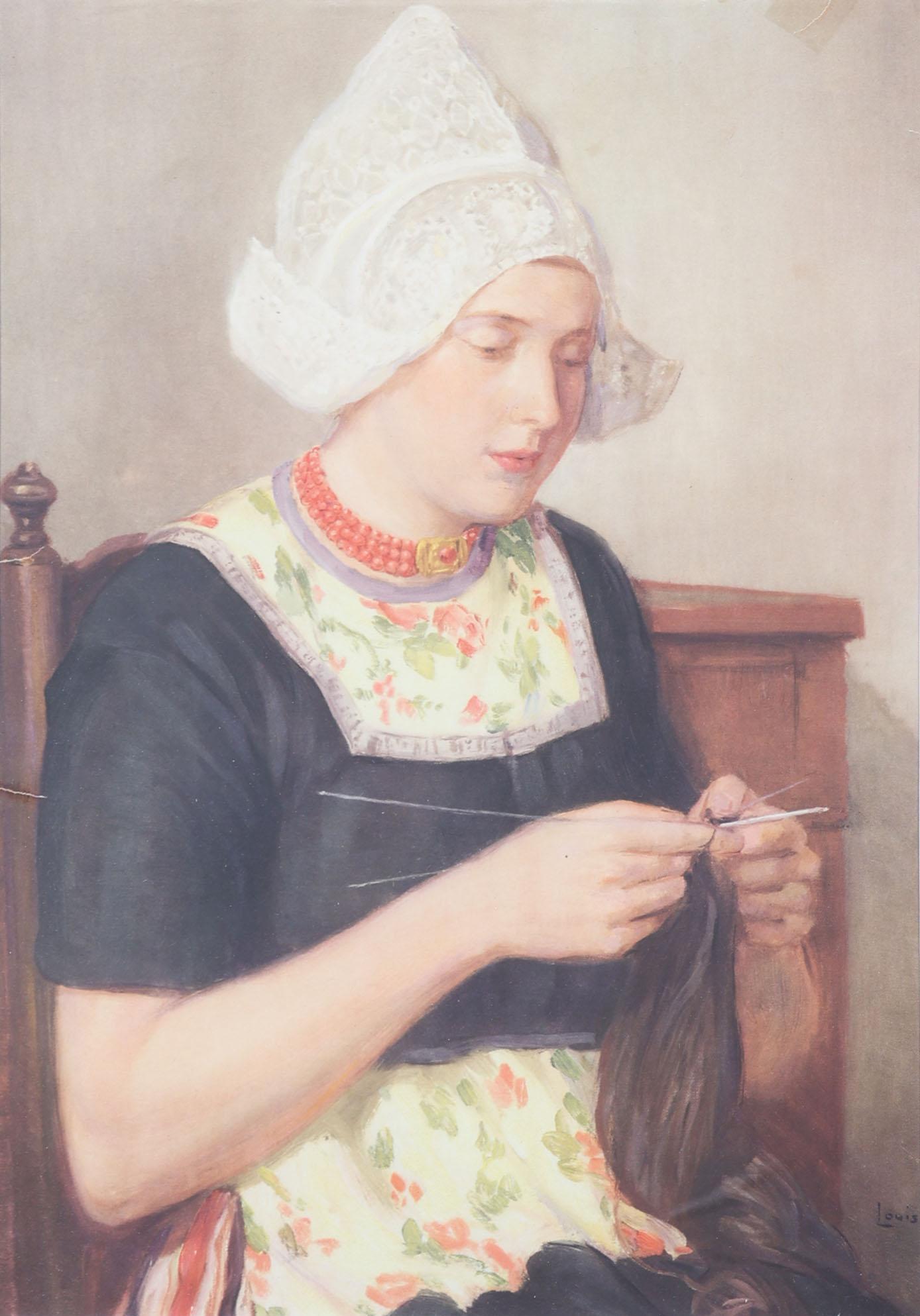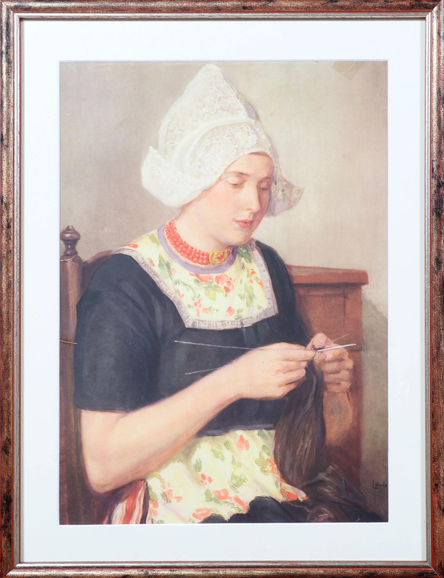Louis, Breiend Volendams meisje, lithografie, 47 x 33 cm.