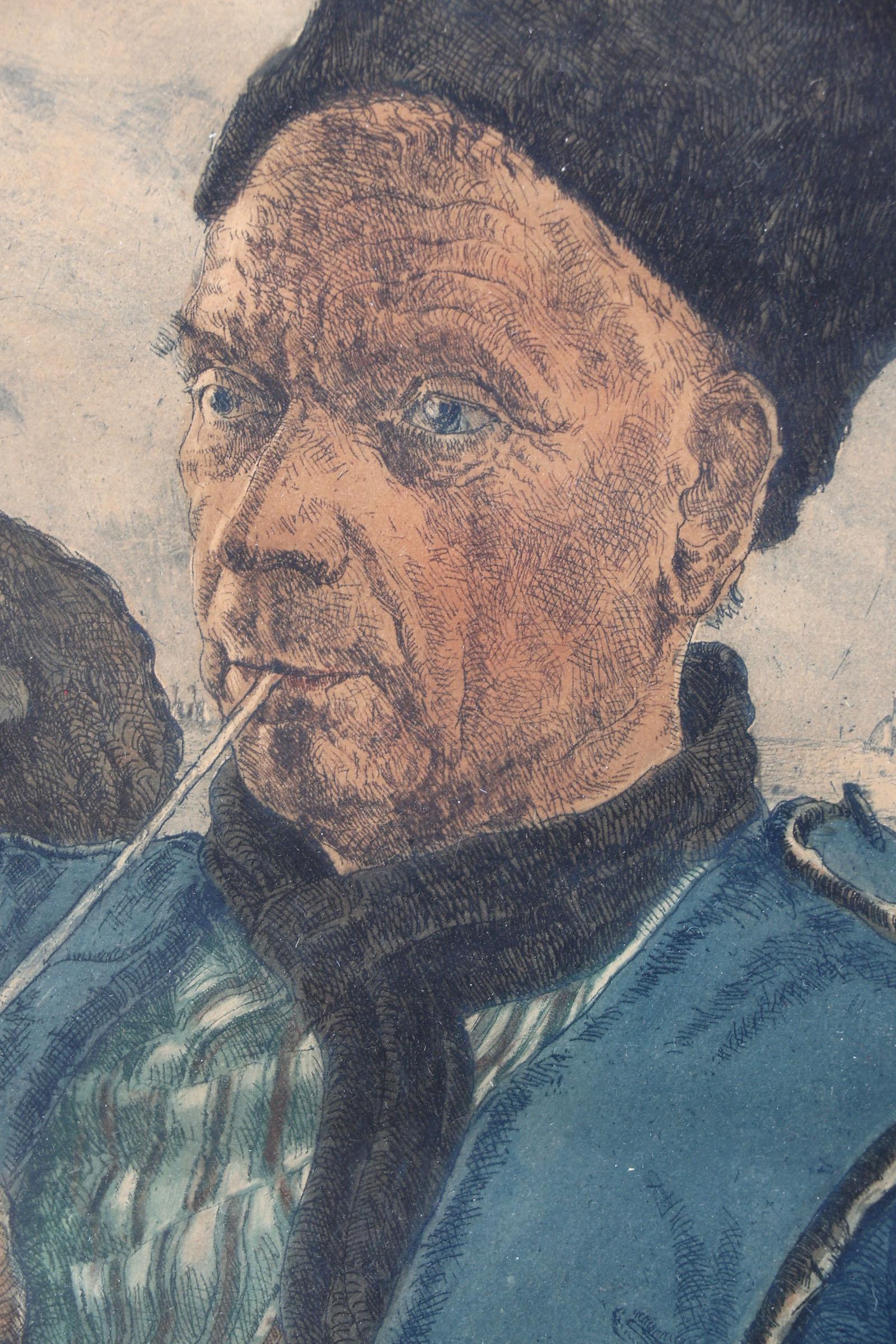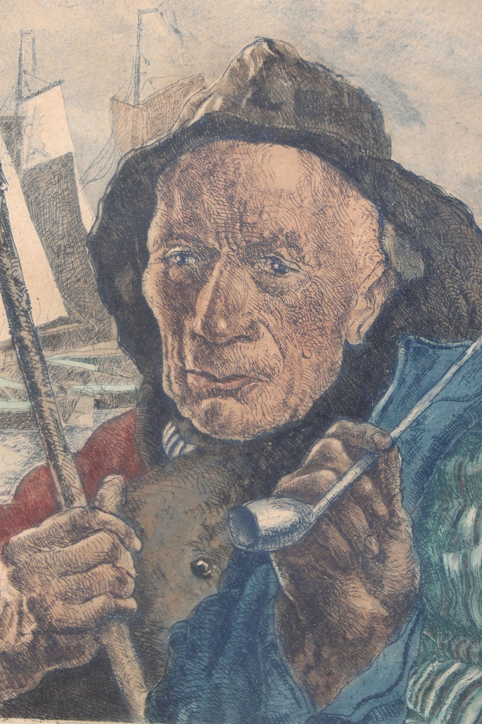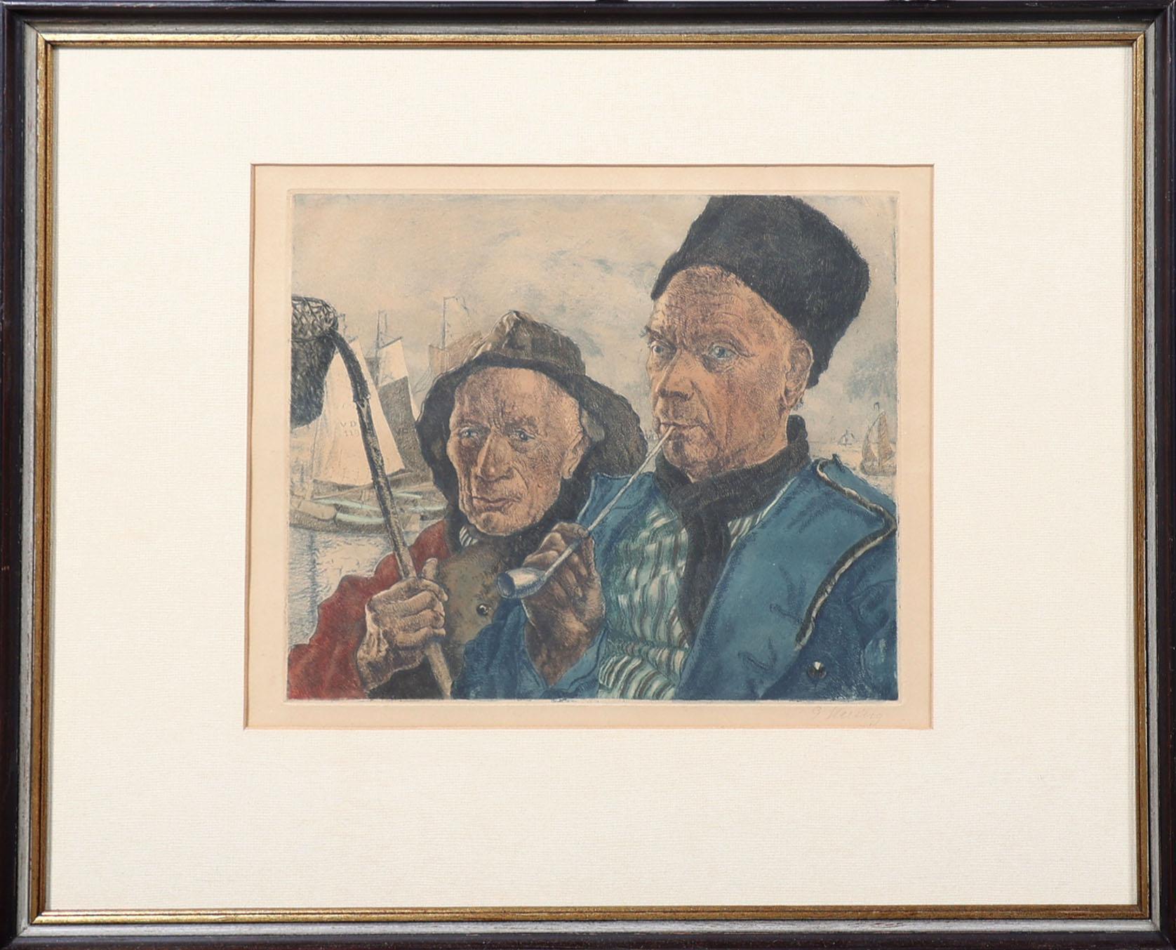G. Hering, Volendamse vissers, kleurenets, 33 x 27 cm.