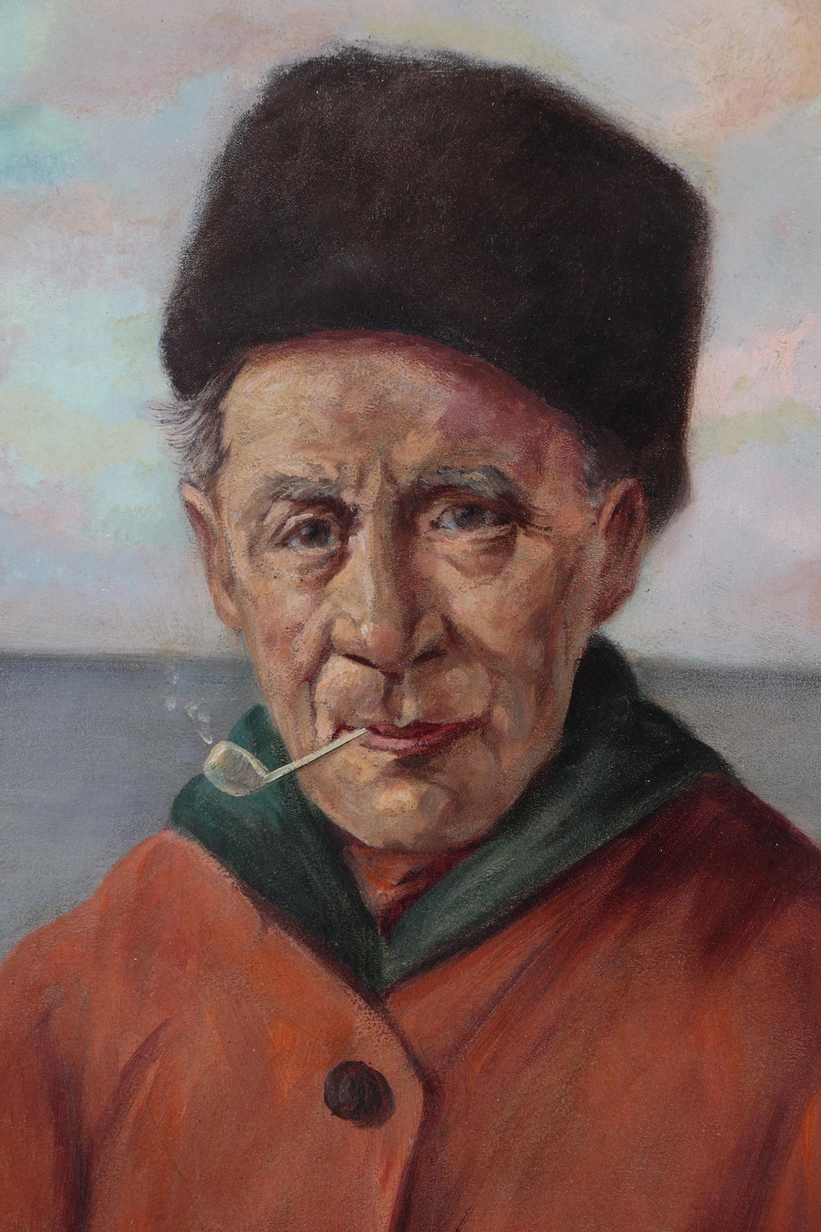 Hendrikus Johannes Franciscus van Langen (1874-1964), Portret van een Volendamse visser, olieverf op doek 40 x 30 cm.