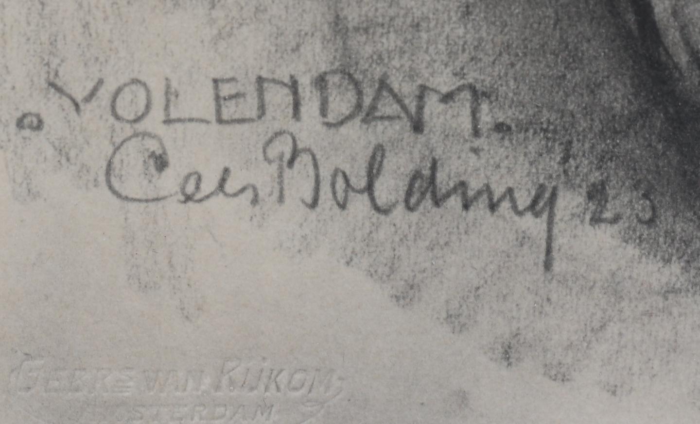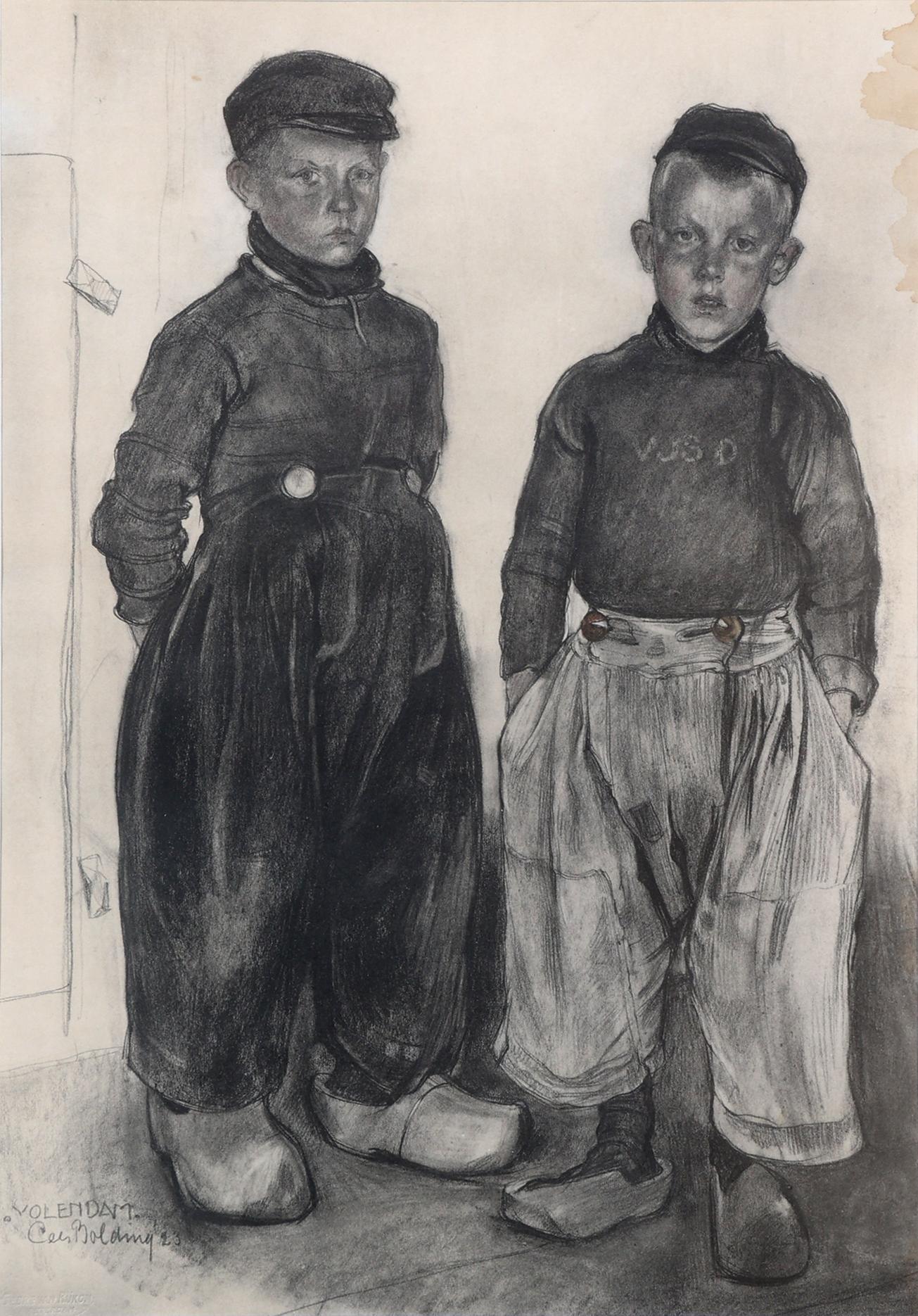 Kees Bolding, Twee Volendamse jongetjes, lithografie, 44 x 30 cm.