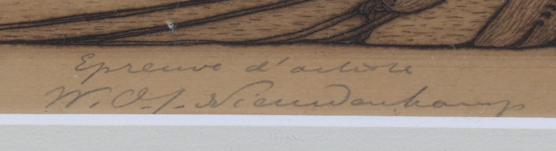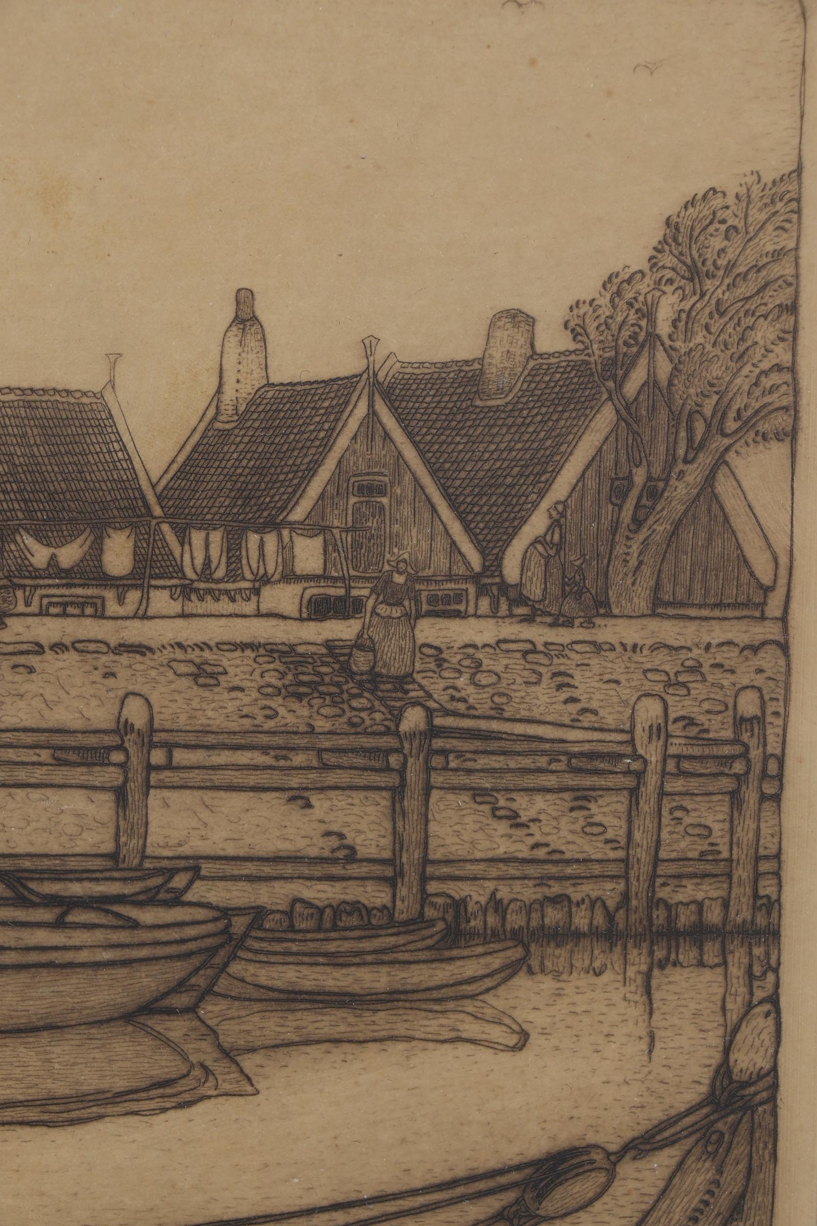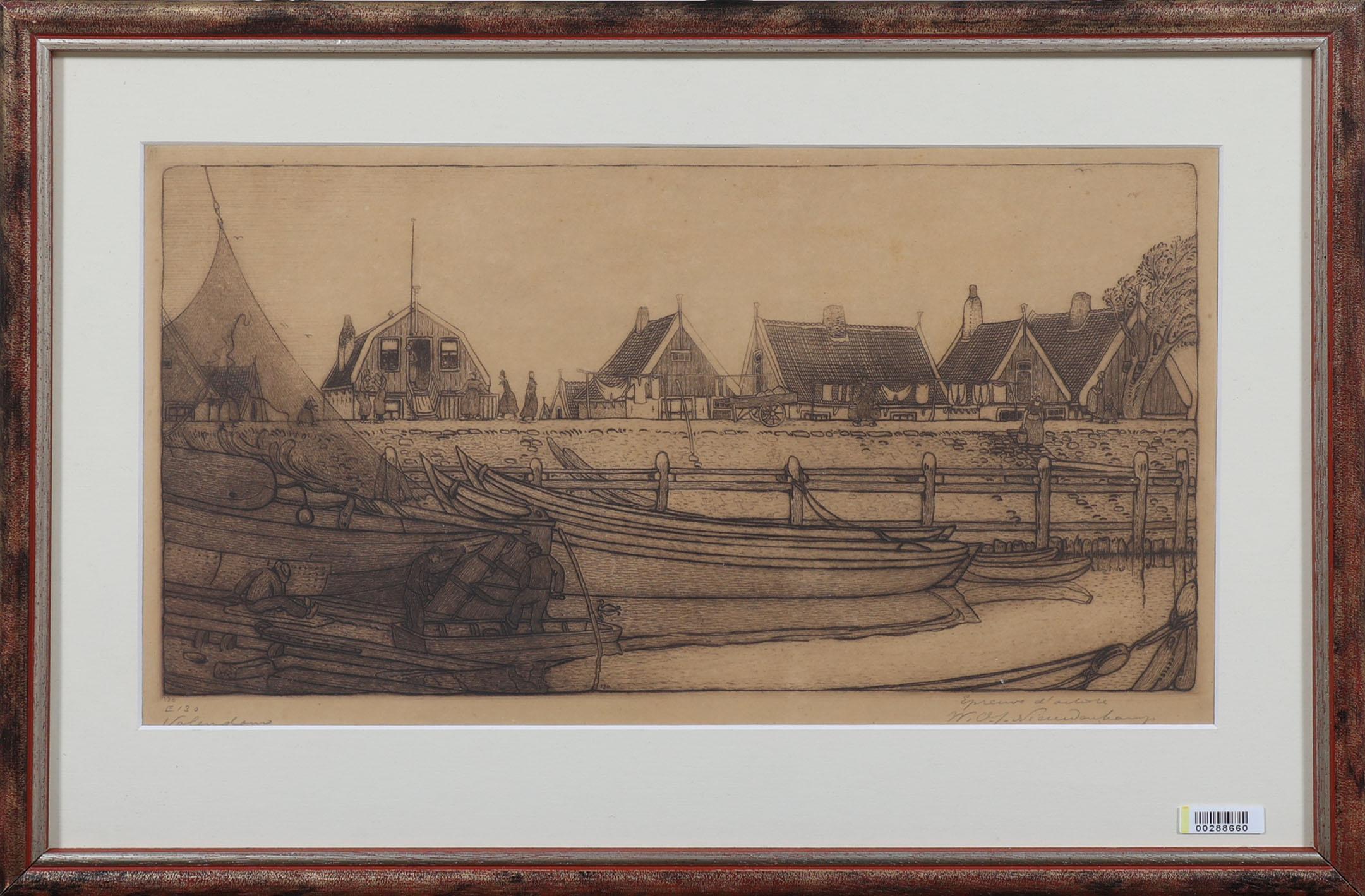 W. Nieuwenkamp, Zicht op Volendam, handgesigneerde drogenaald ets, 41 x 22 cm.