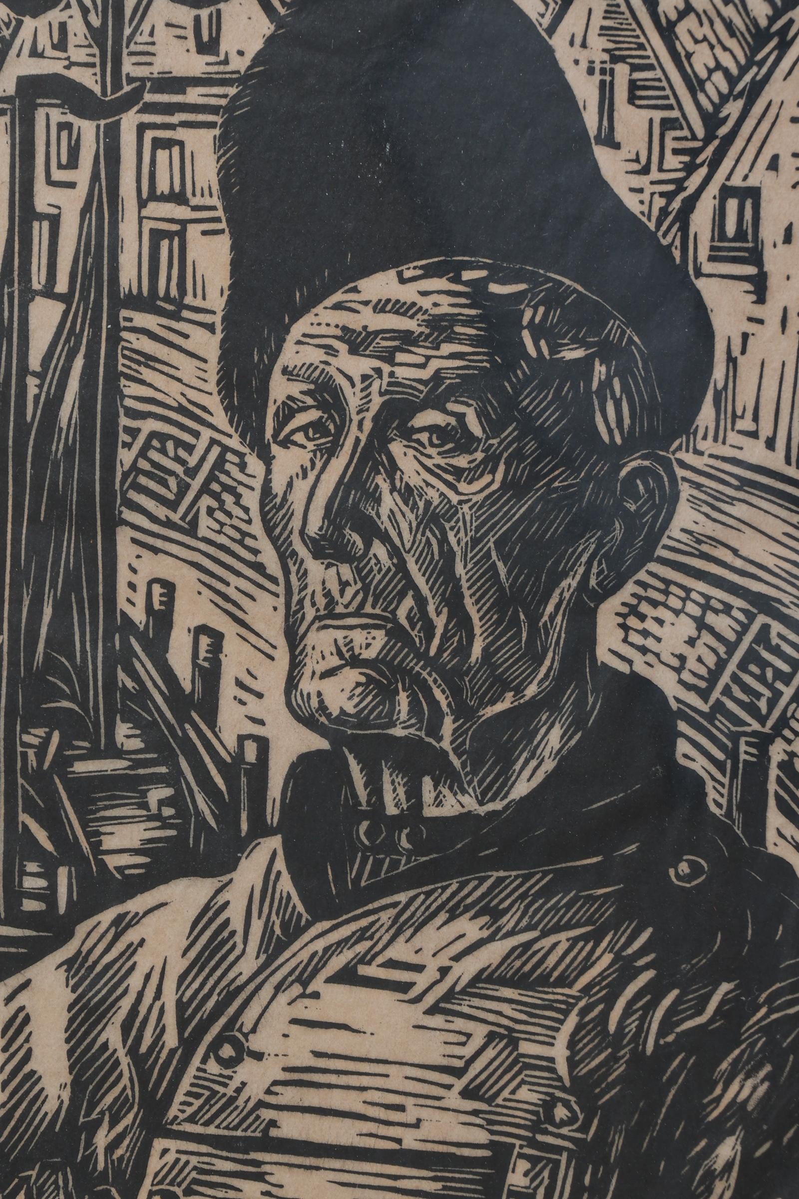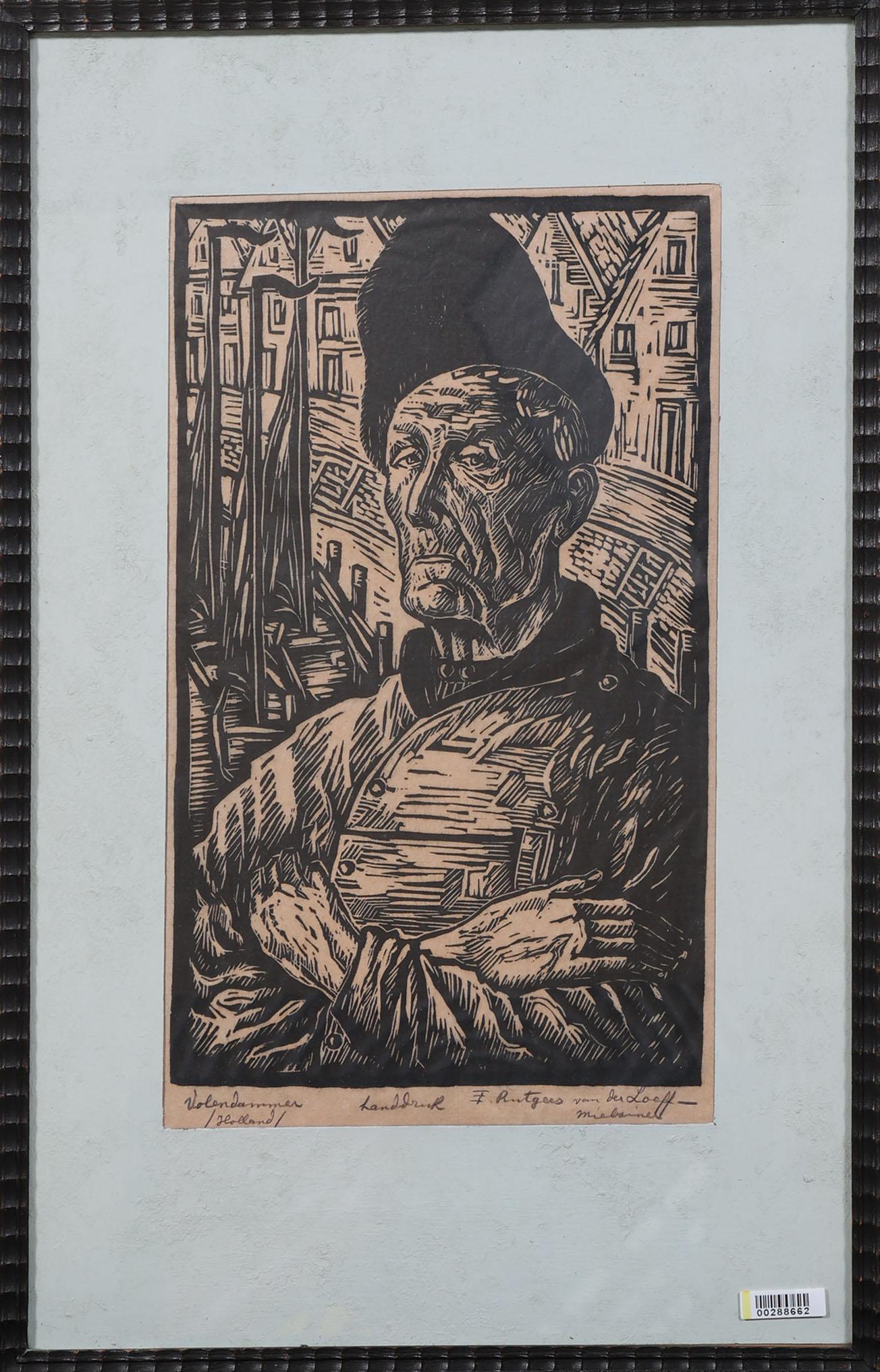 Frieda Rutgers van der Loeff-Mielziner (1877-1948), Portret van een Volendammer, handgesigneerde houtsnede, 35 x 22 cm.