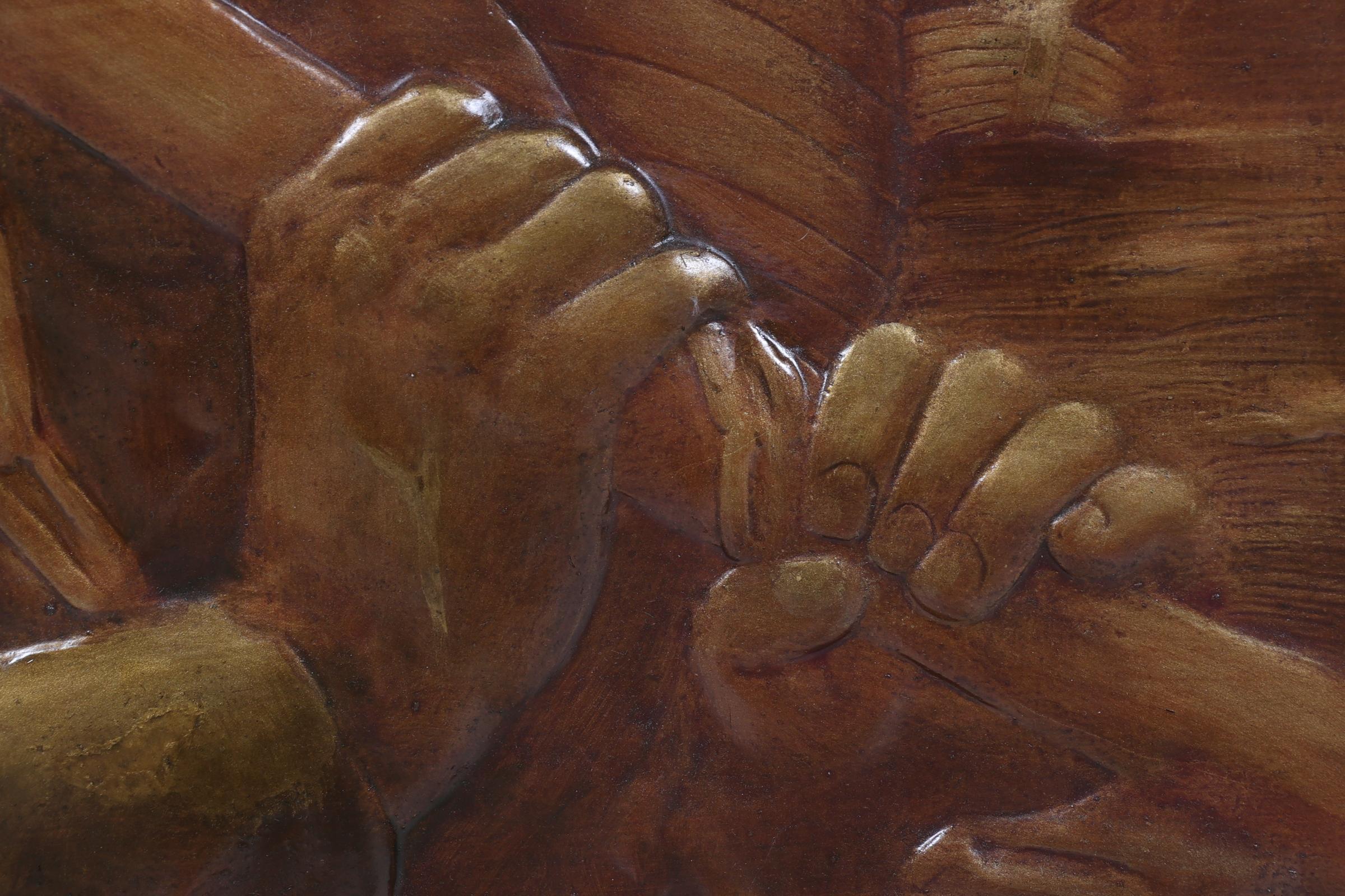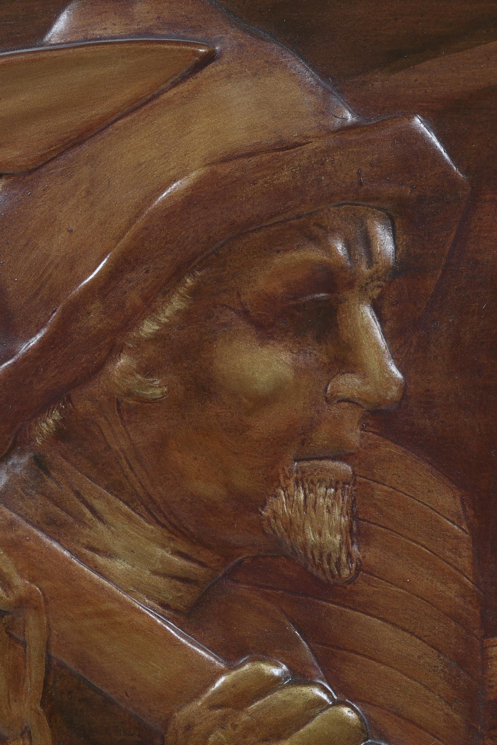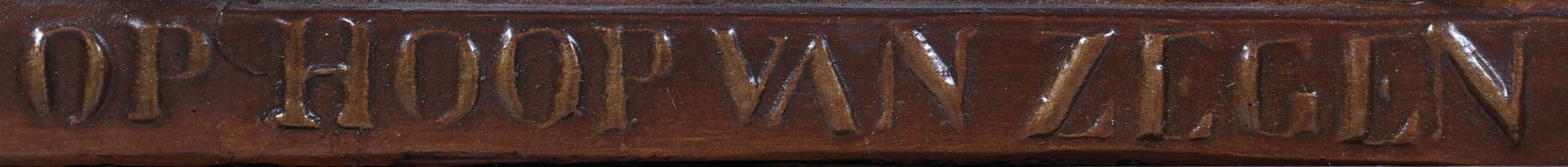 Bronskleurige wandplaquette "Op hoop van zegen", totaal 68 x 60 cm.