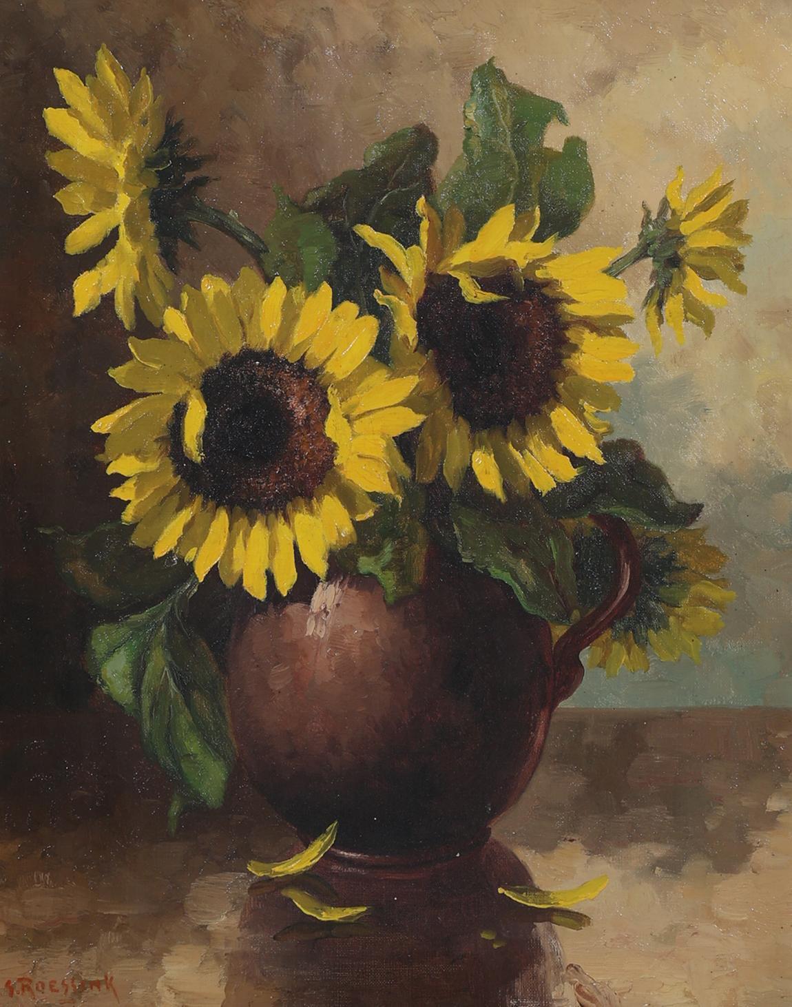 Roessink, Zonnebloemen, olieverf op doek, 50 x 39 cm.