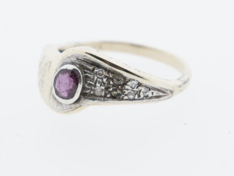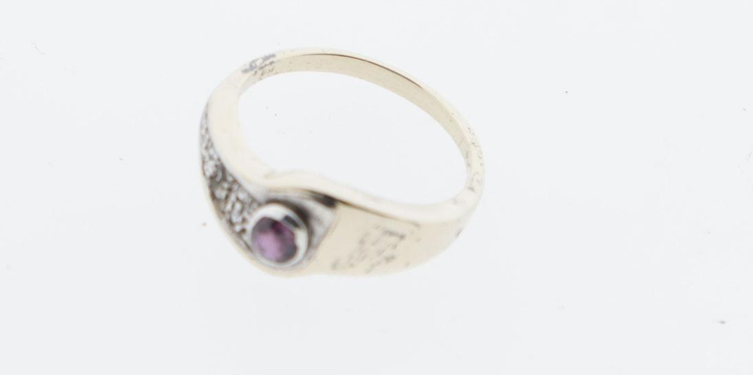 18 Kt. gouden ring bezet met o.a. briljant, diam.17 mm., 2,7 gram