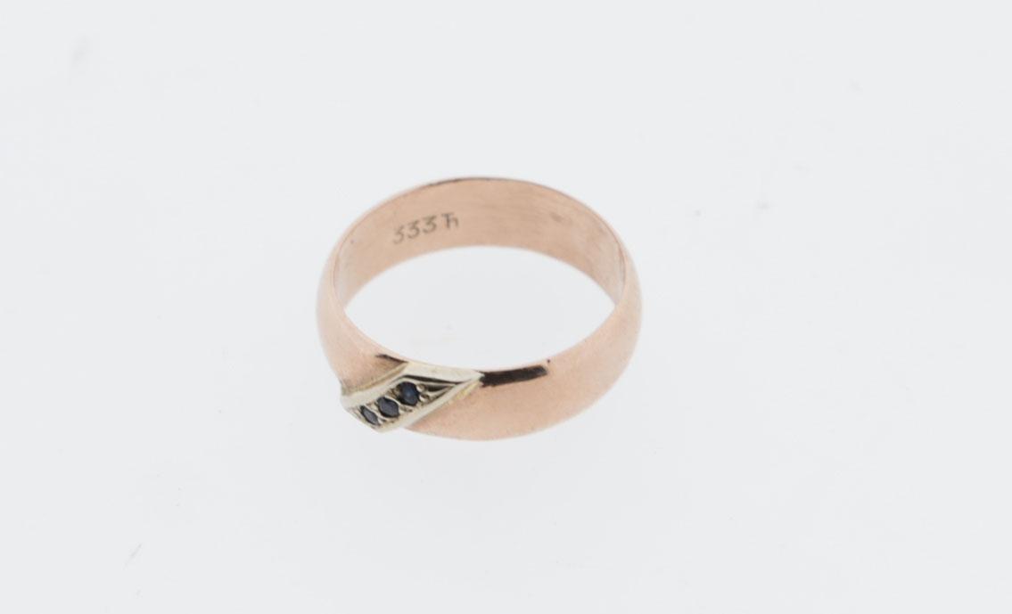 Gouden ring bezet met 3 saffieren, 17 mm., 3.8 gram