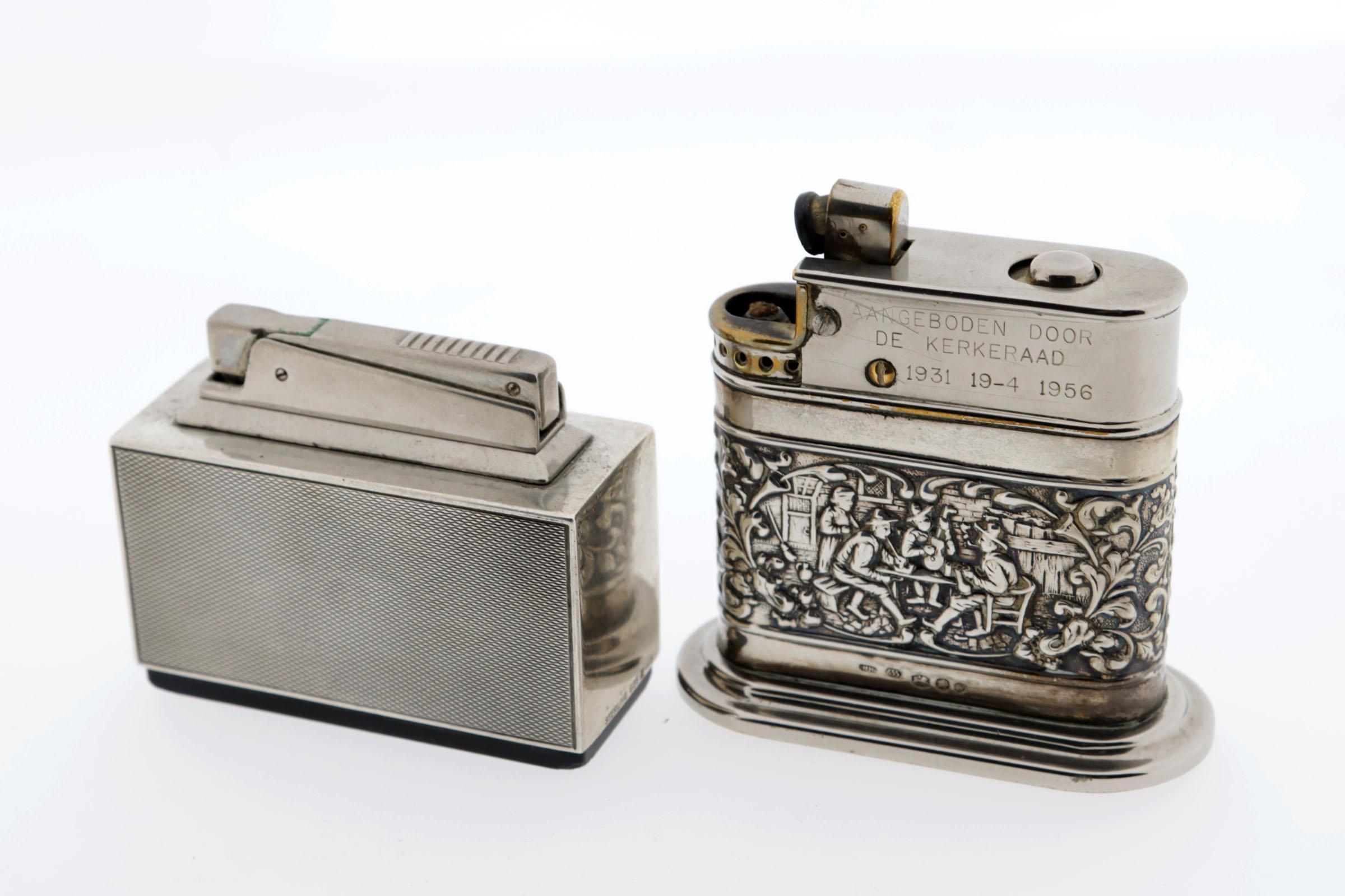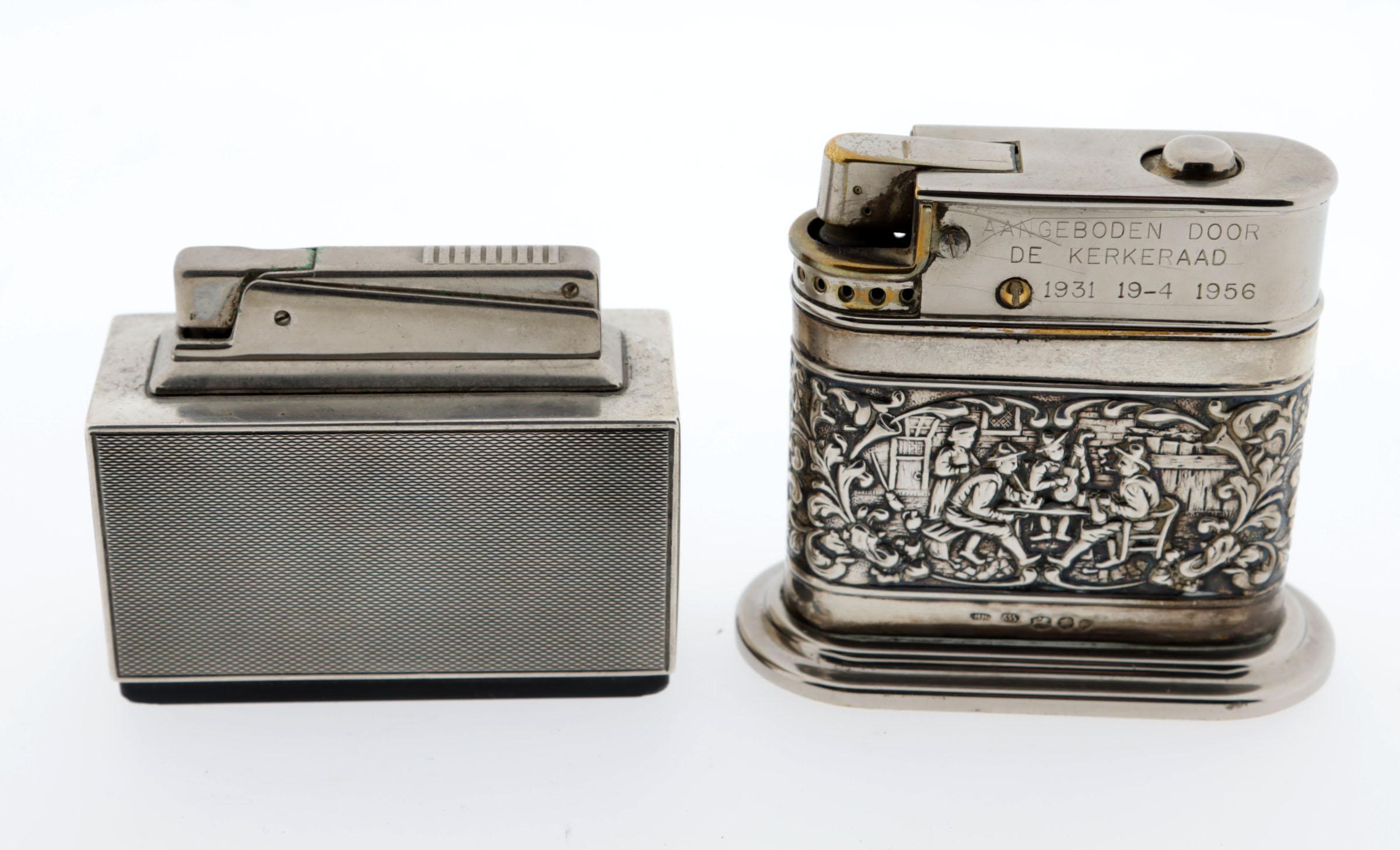 2 Oude zilveren tafelaanstekers, totaal 395 gram