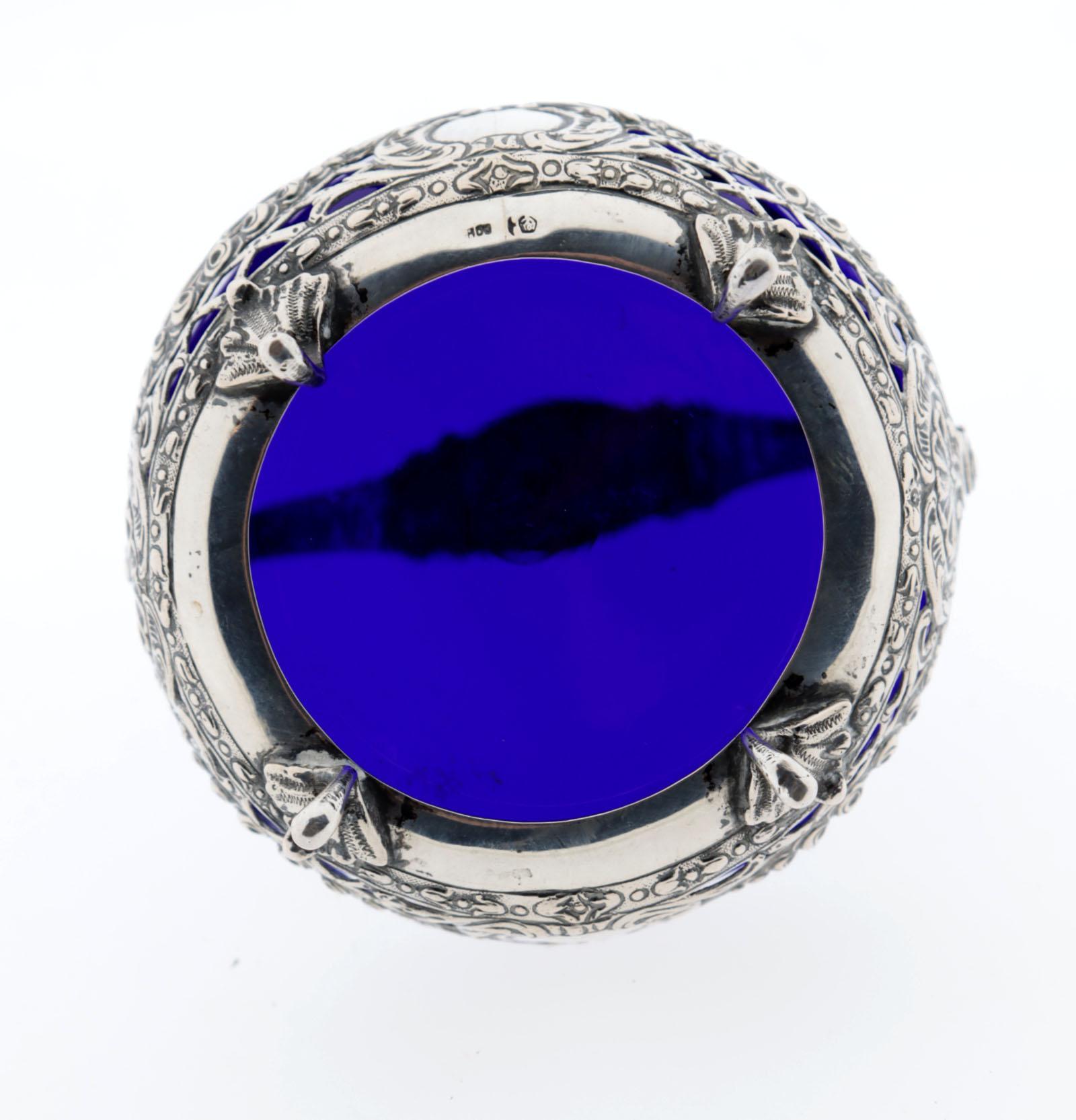 Zilveren hengselschaaltje met blauw glazen inlegbakje, 65 gram