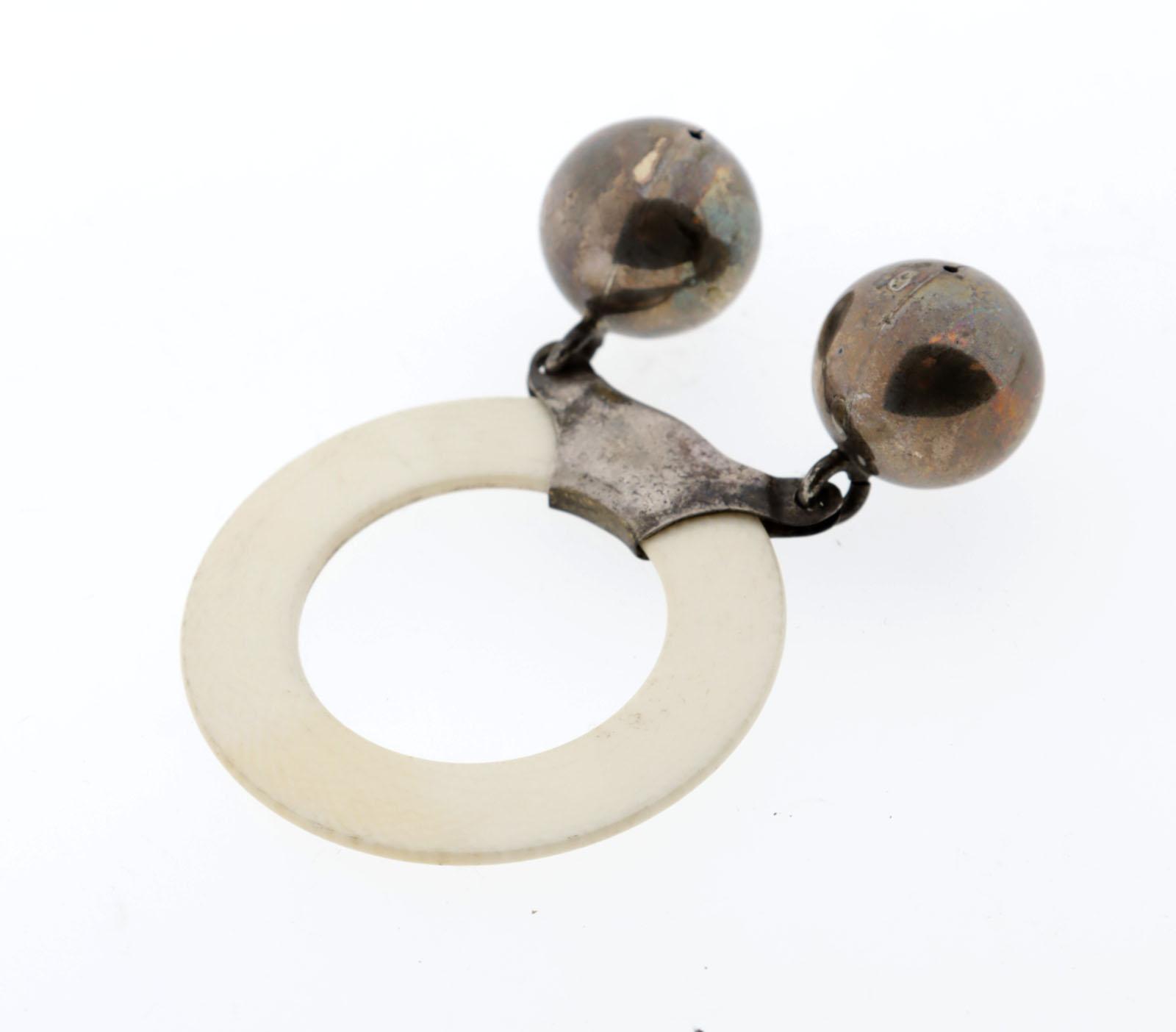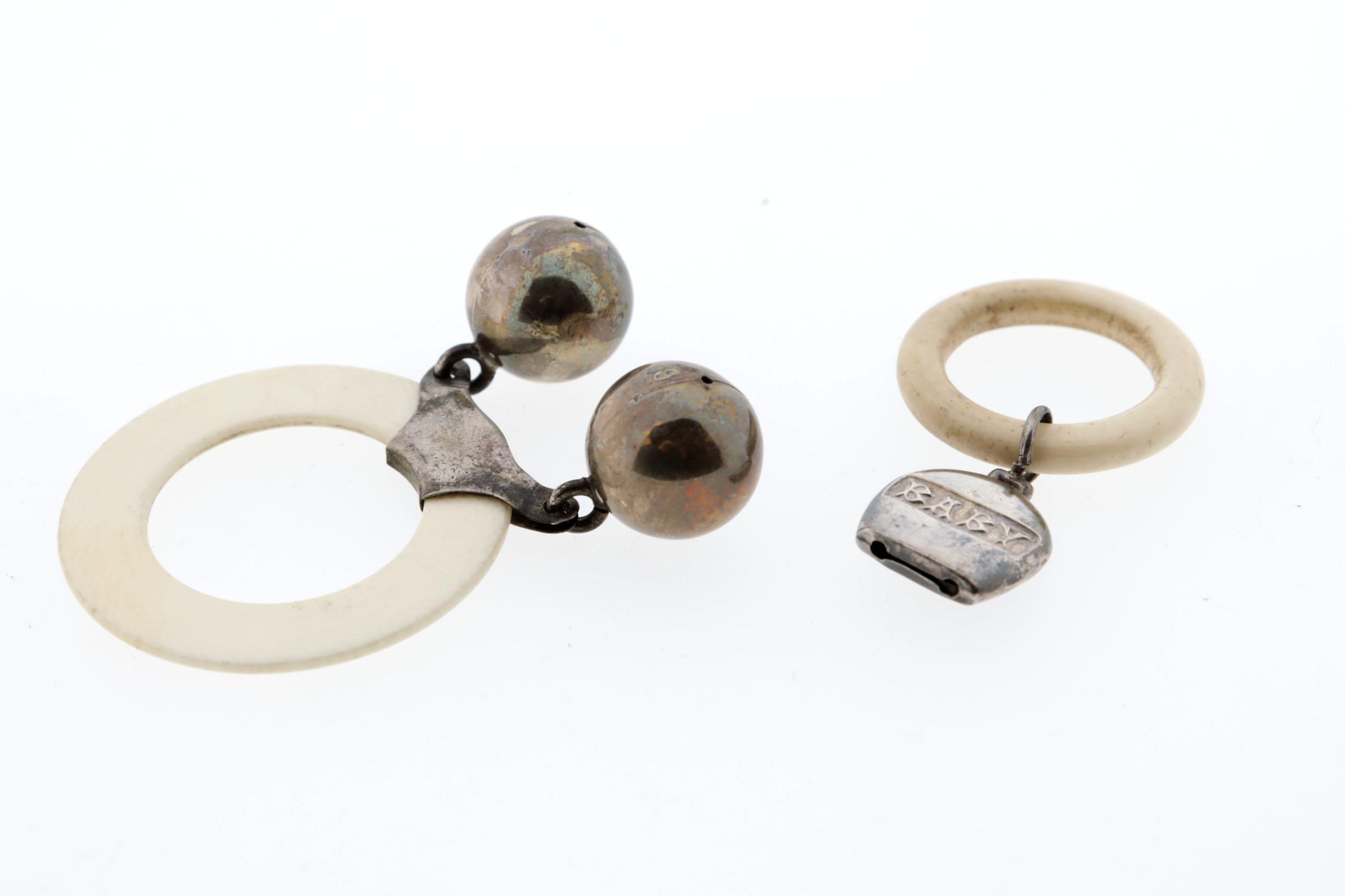 2 Antieke zilveren rammelaars met originele benen bijtring