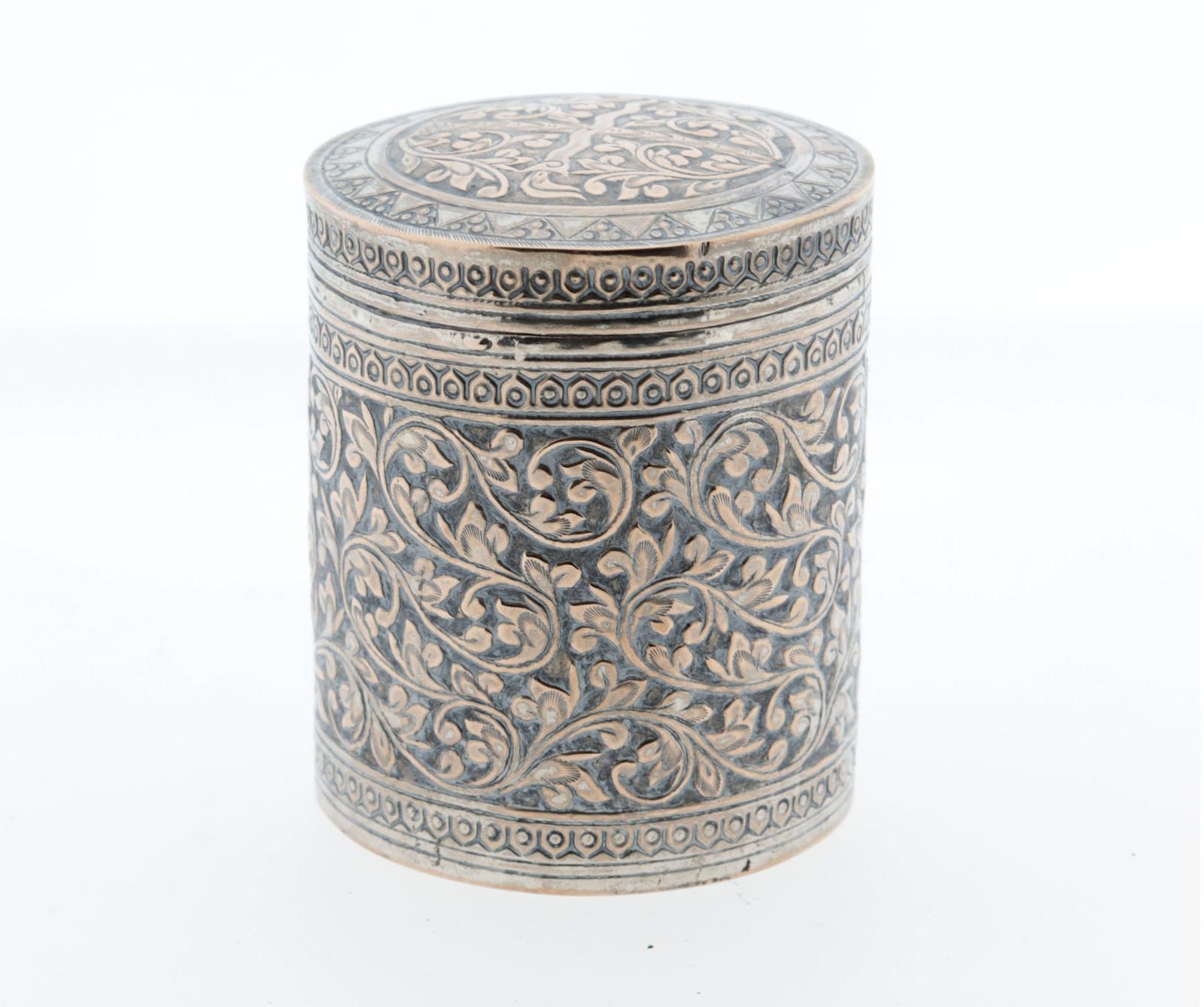 Antieke BWZ ronde dekseldoos, h.9 cm., 72 gram