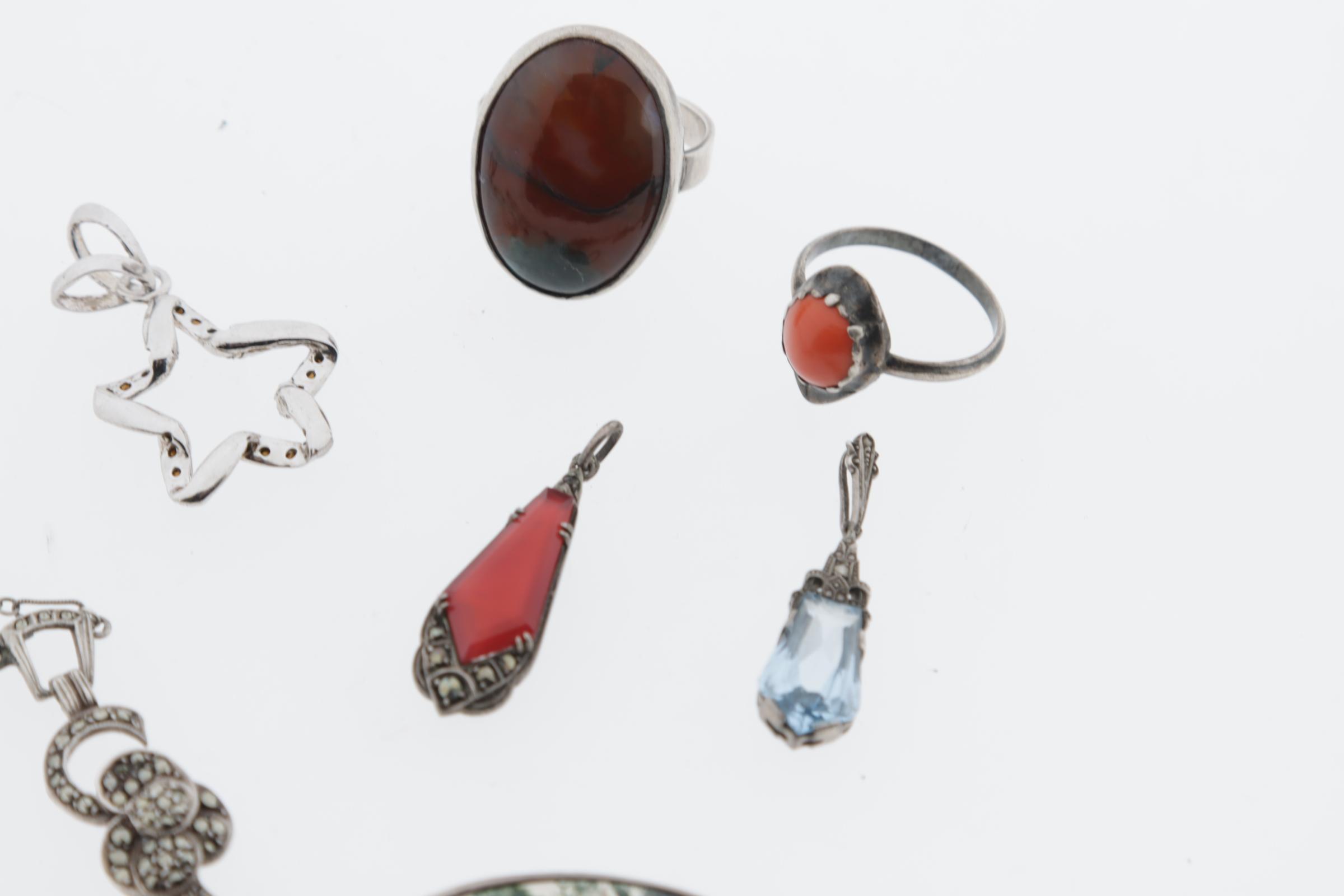 Koopje diverse ringen, collier en hangers w.o. zilver