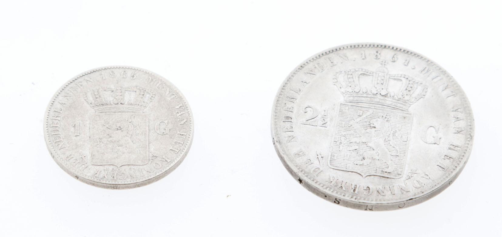 Zilveren rijksdaalder en gulden muntstuk, Koning Willem III, 1861 en 1865