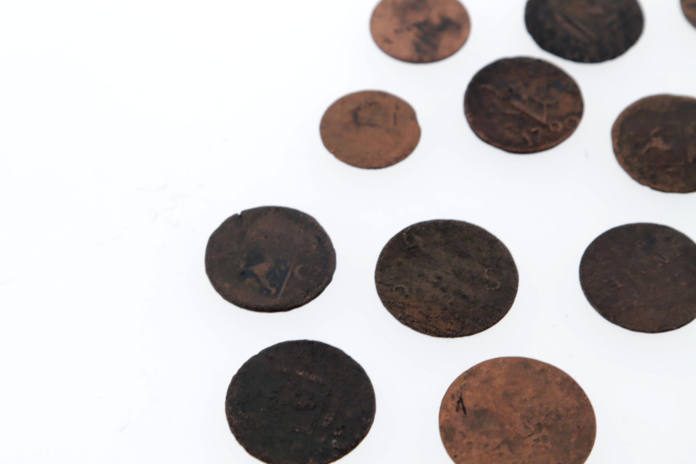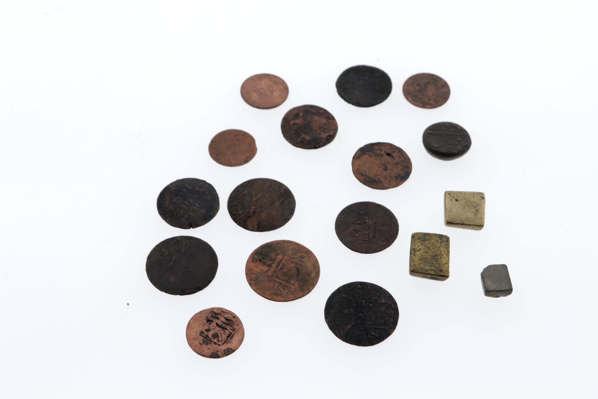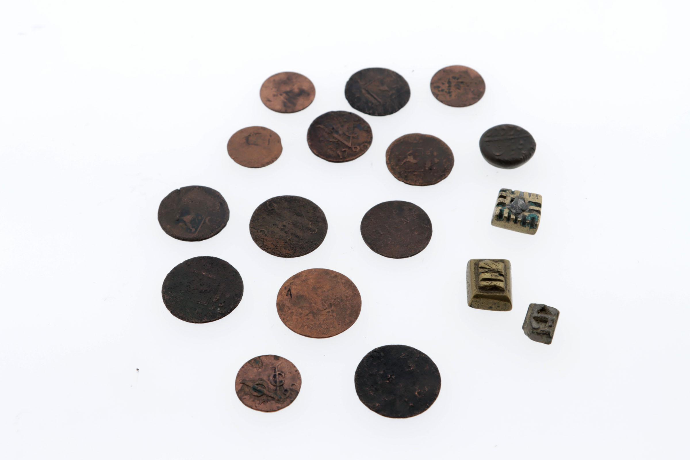 Koopje VOC munten en goudgewichten ca.1790 (17 stuks)