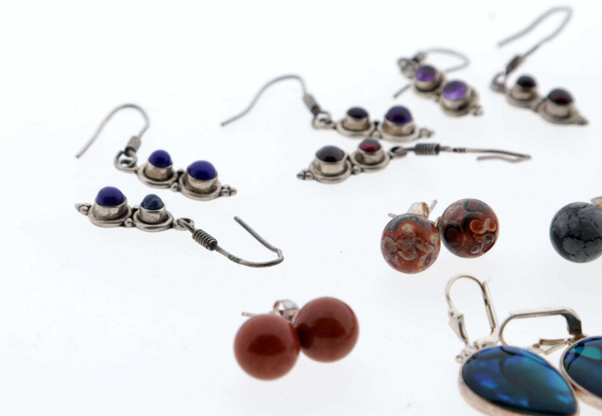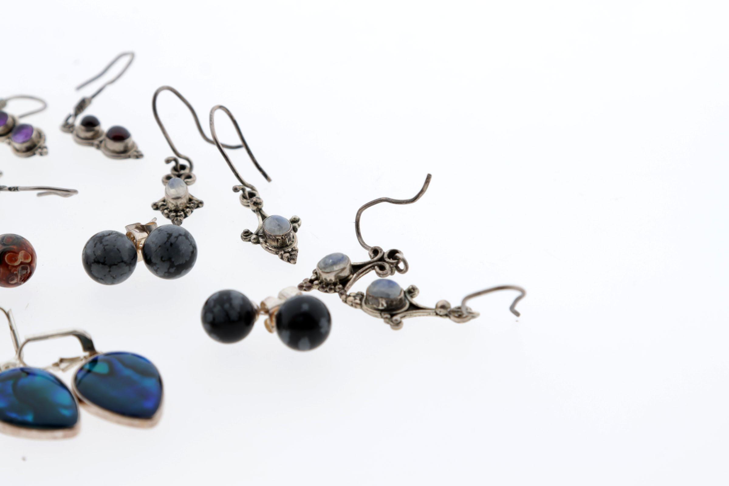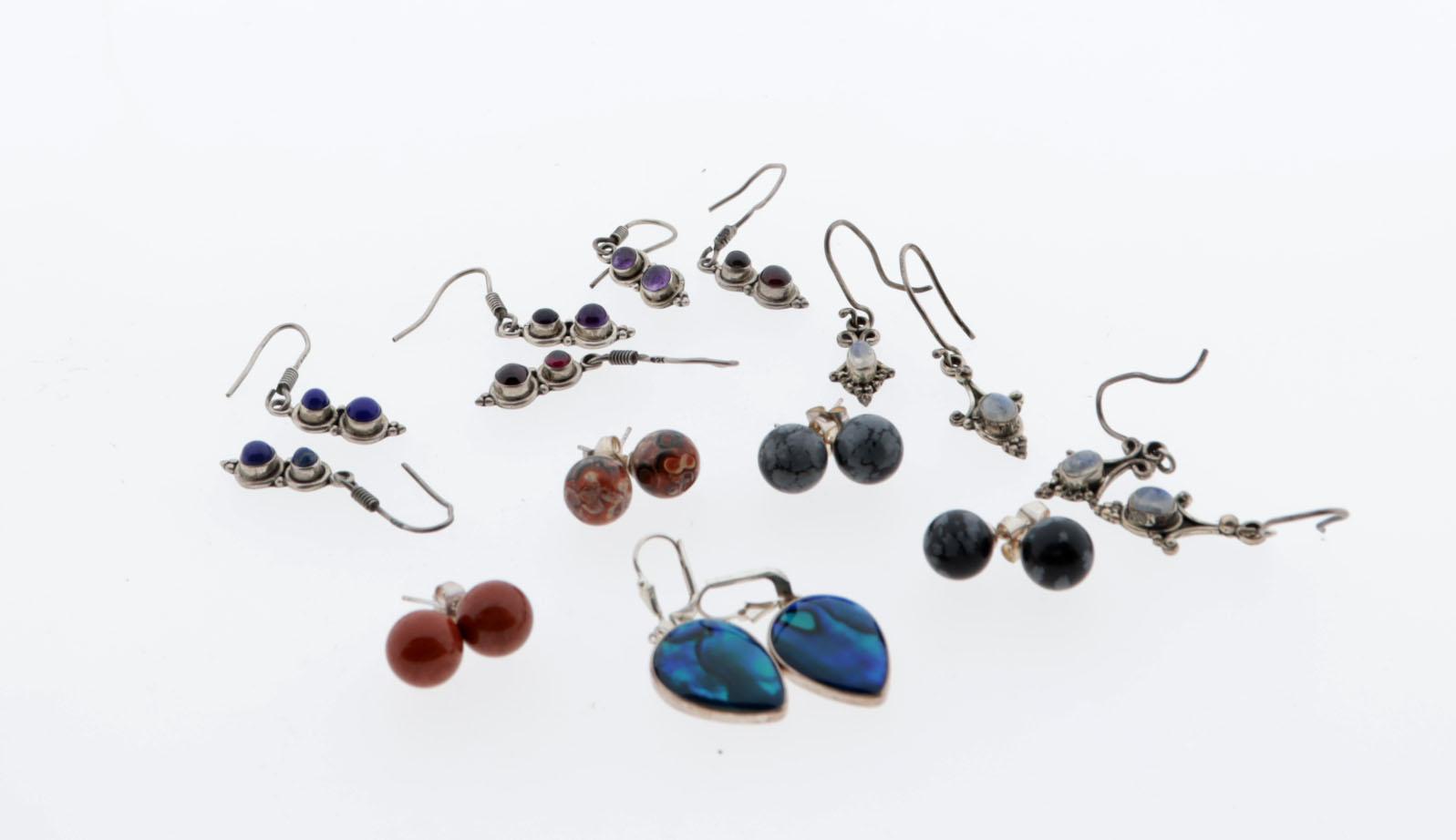 Koopje van 10 paar zilveren oorbellen stekers en hangers
