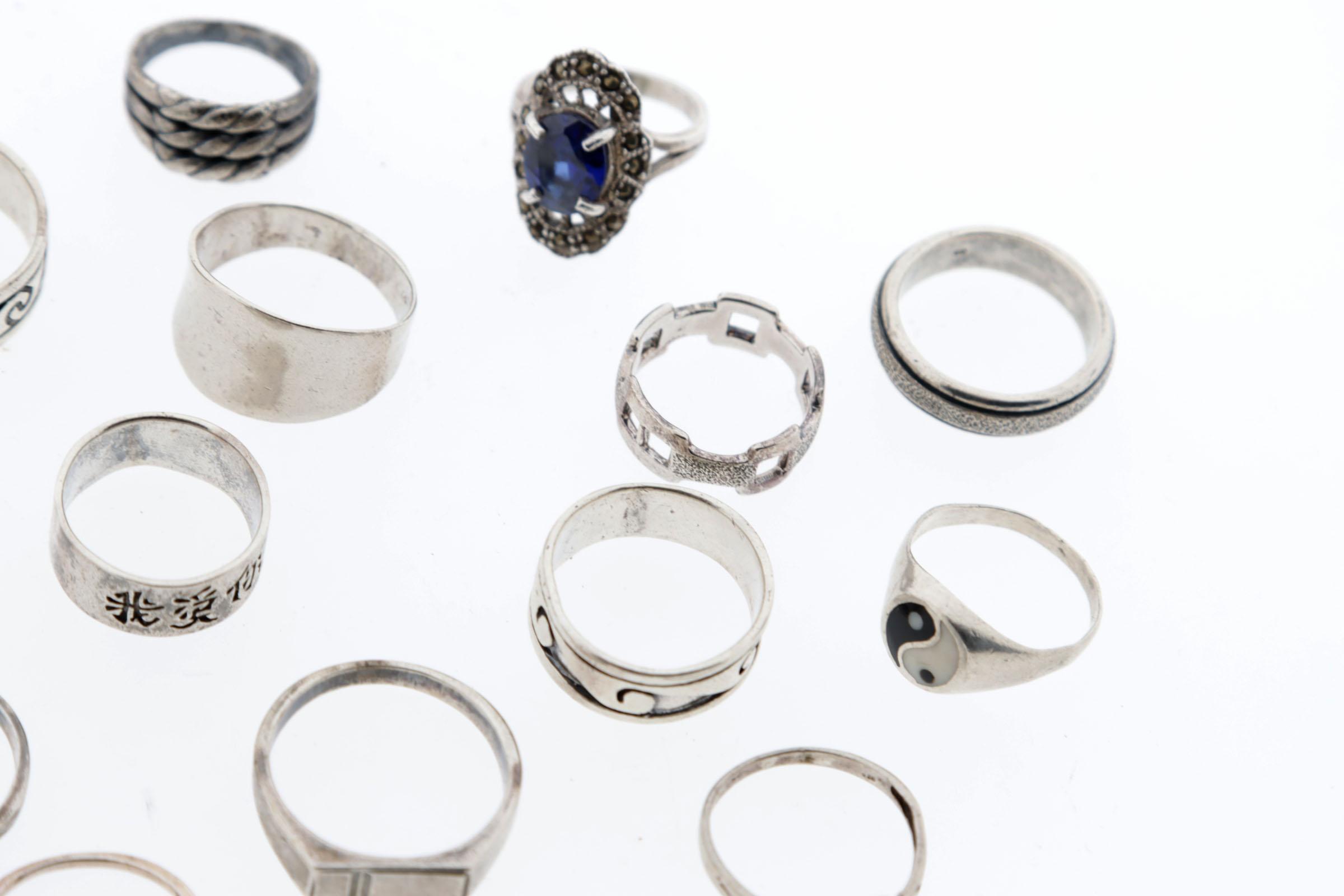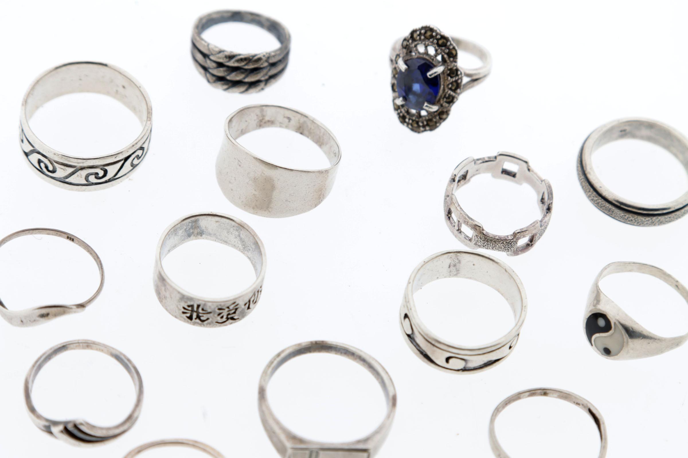 Koop diverse zilveren dames/herenringen, diverse maten, 55 gram