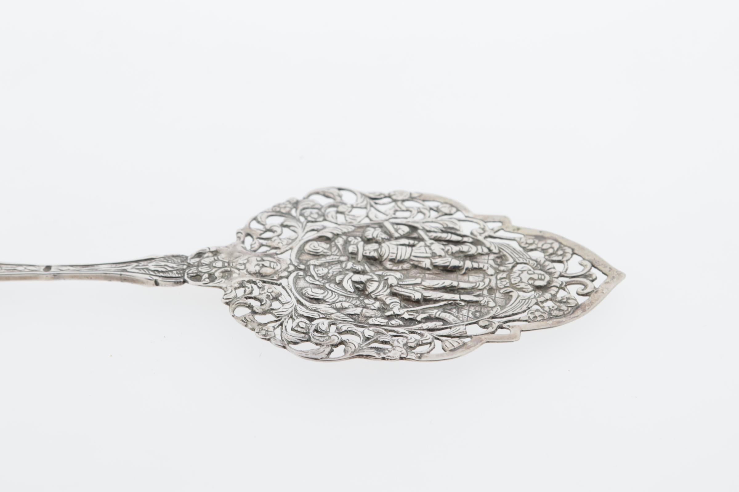 Bewerkt zilveren opdienschep met afbeelding van de Nachtwacht, 25 cm., 84 gram